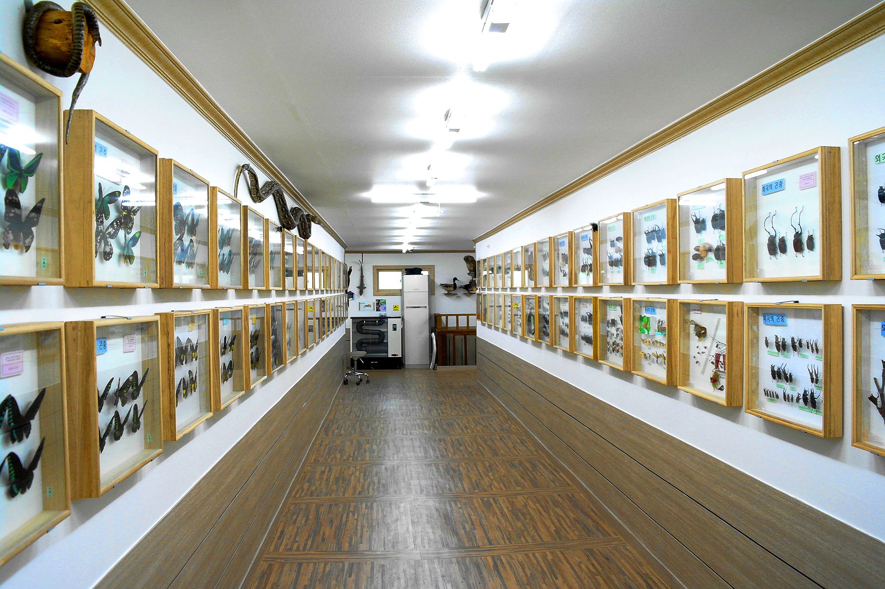 전시관은 총 2층의 규모로 1층은 화석이 2층에는 각종 곤충들이 전시돼있고