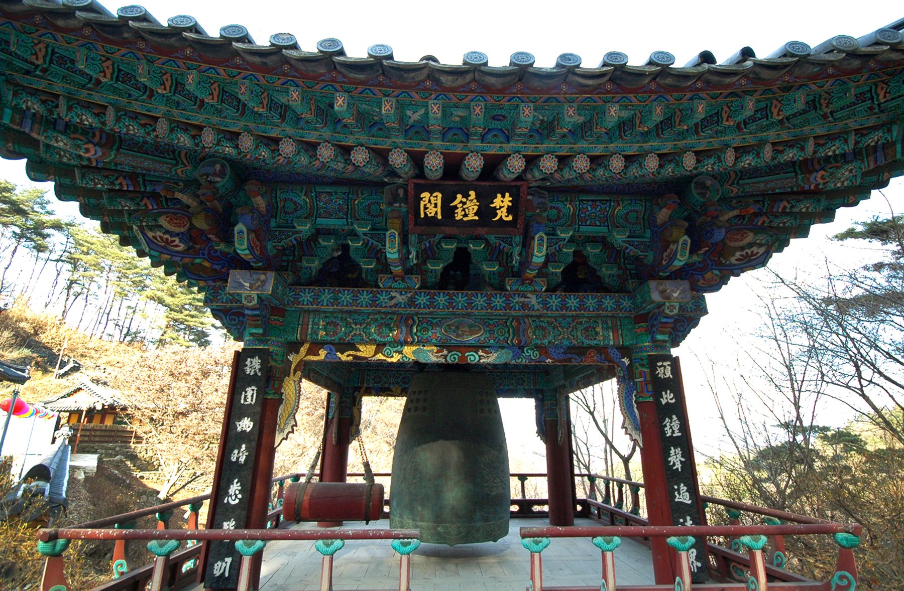 "비룡산 장안사" 현판의 범종각은 화려한 단청으로 관람객들의 시선을 끌고 있습니다.