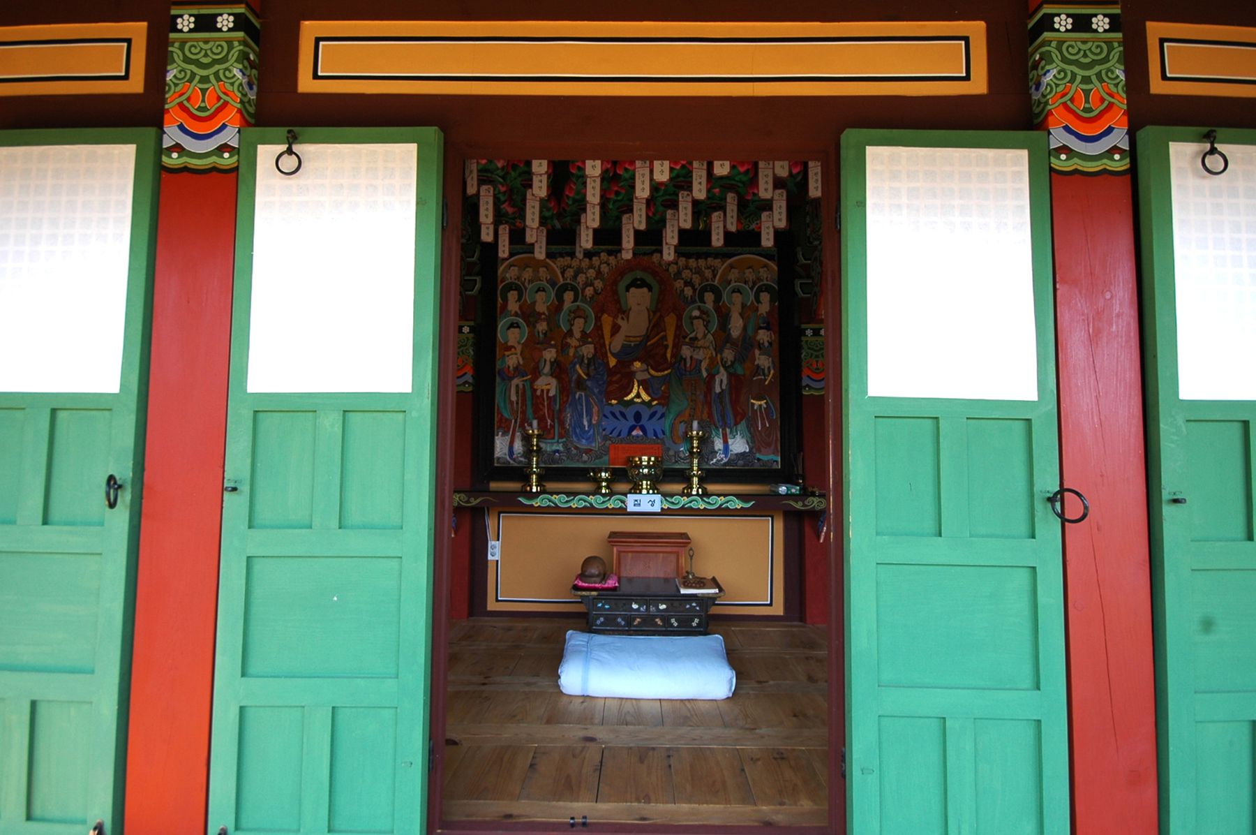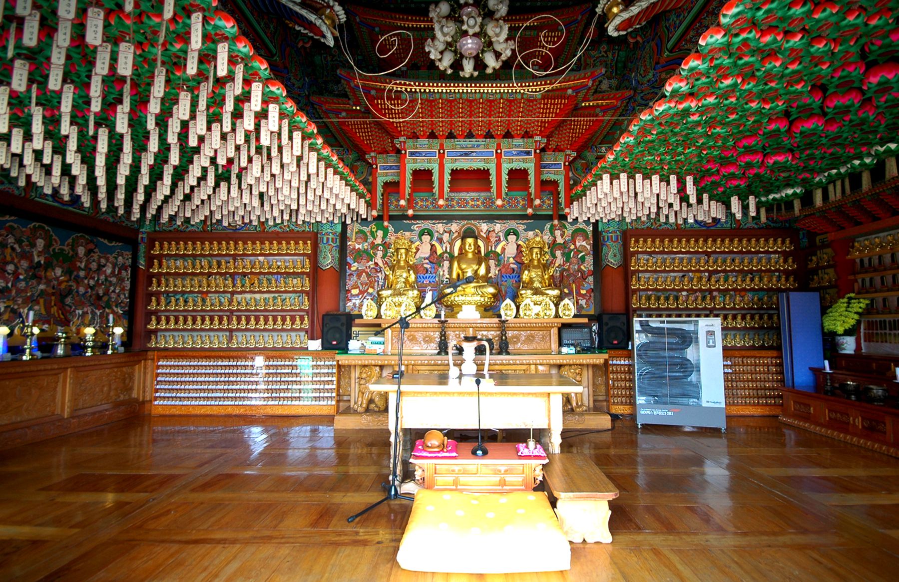 대웅전 외벽은 탱화로 장식되어 있어 다양한 볼거리를 제공합니다.