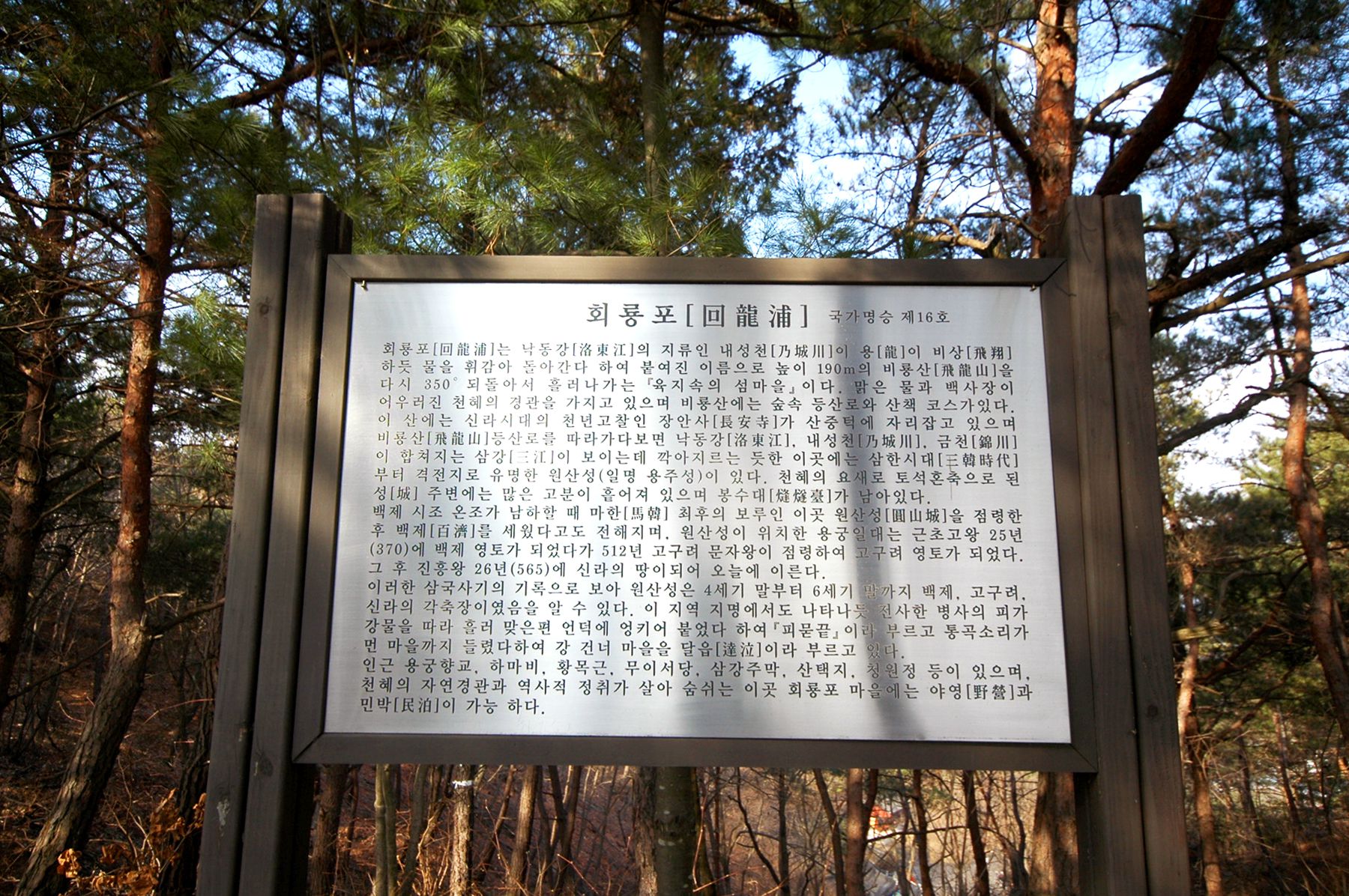 신비스러운 모습을 두 눈에 담을 수 있는 회룡포는 명승 제16호로 지정되었으며,
