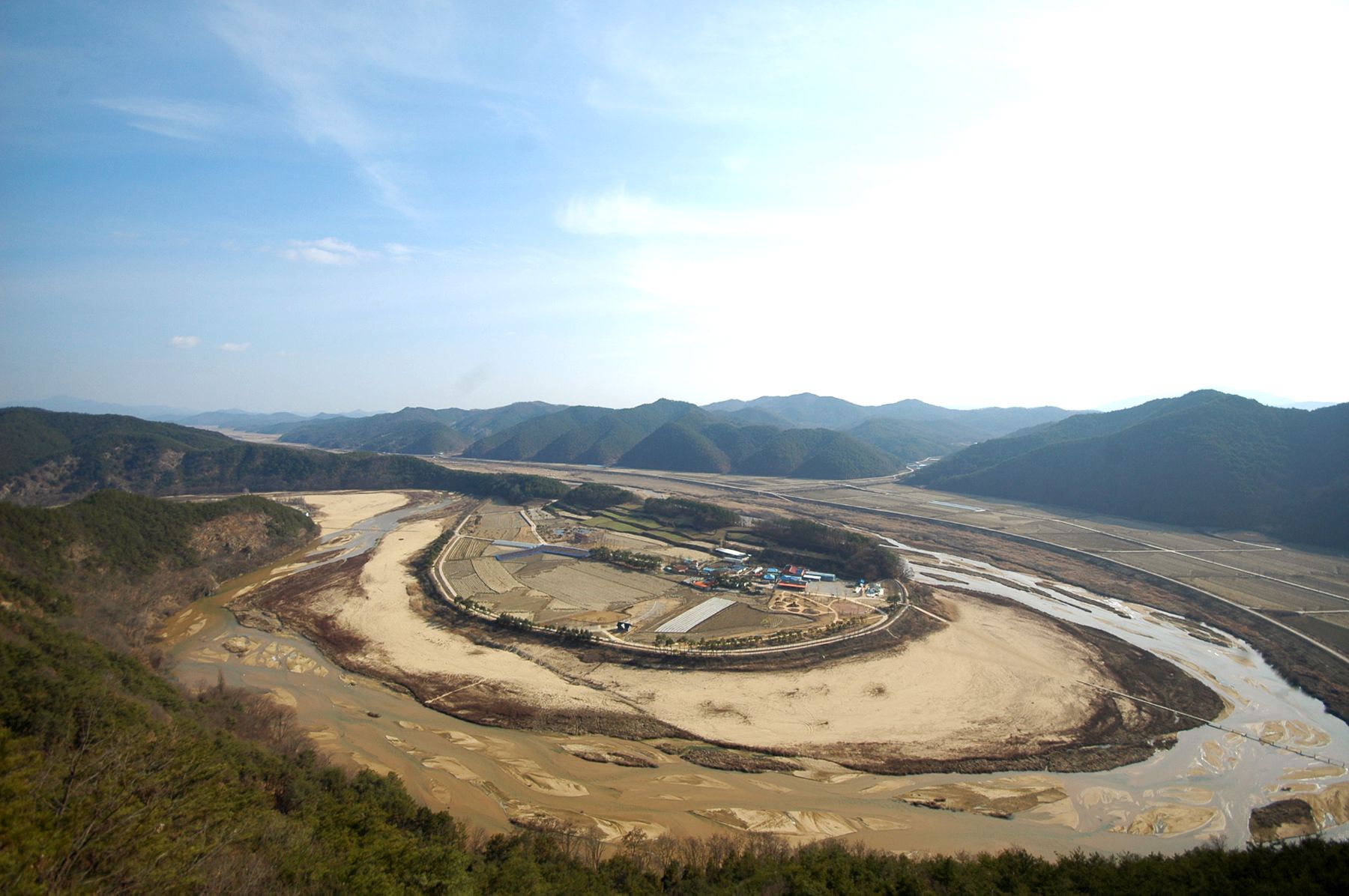 내성천 줄기가 마을 주위를 350도 휘감아 돌아나가서 산과 강의 조화를 이룬 회룡포를 한눈에 조망할 수 있습니다.