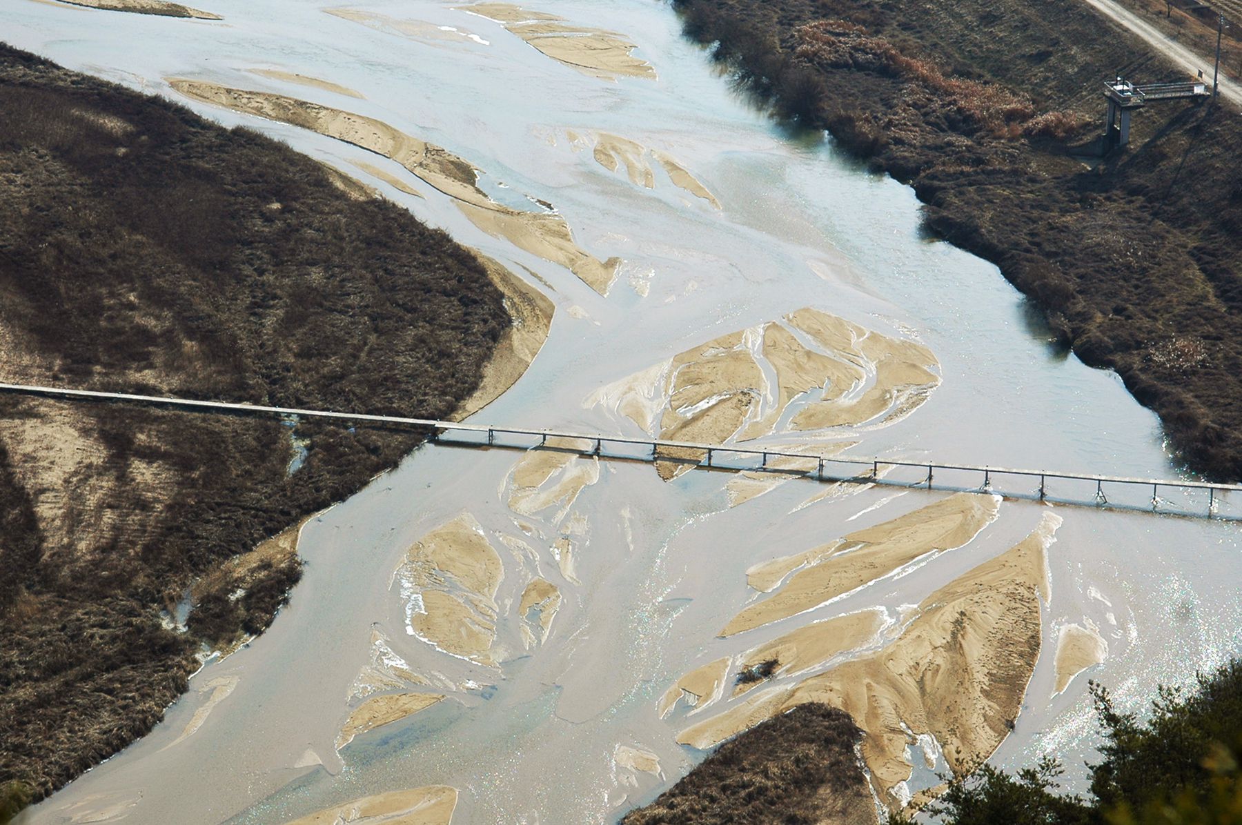 회룡포는 태백산 능선의 자락이 둘러싸고, 낙동강 지류인 내천강이 휘감아 도는 육지 속 섬마을입니다.