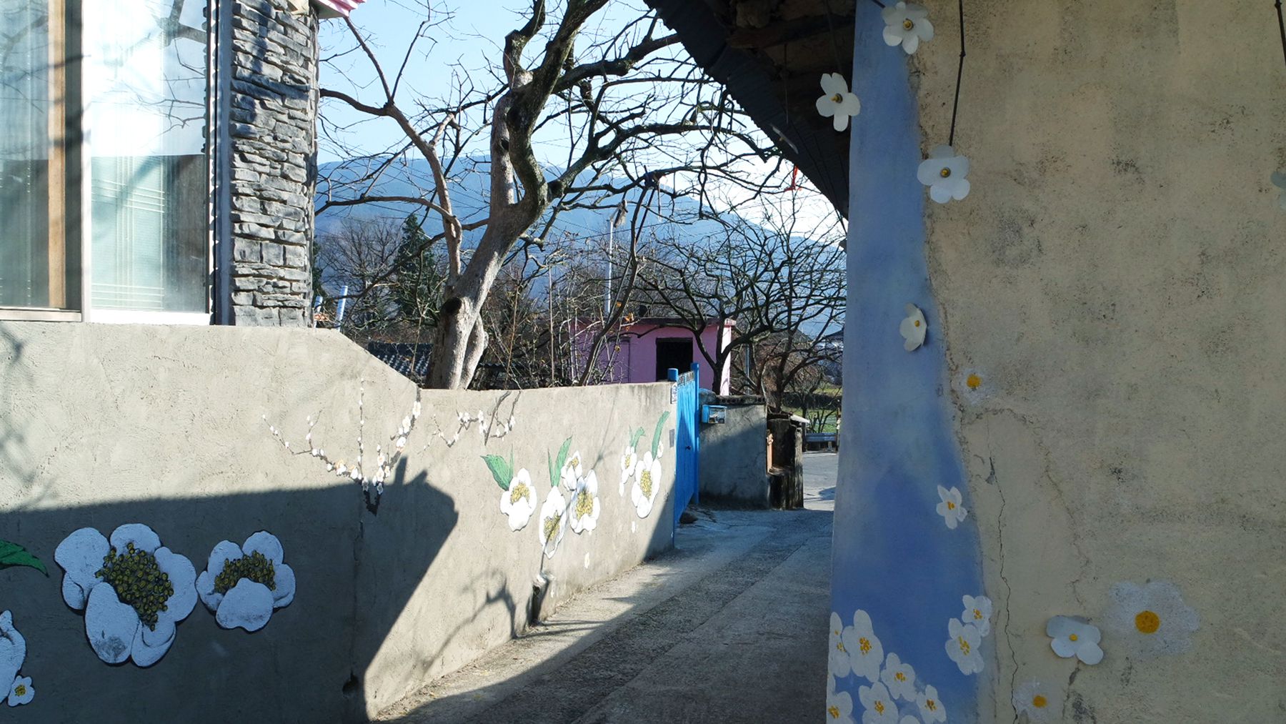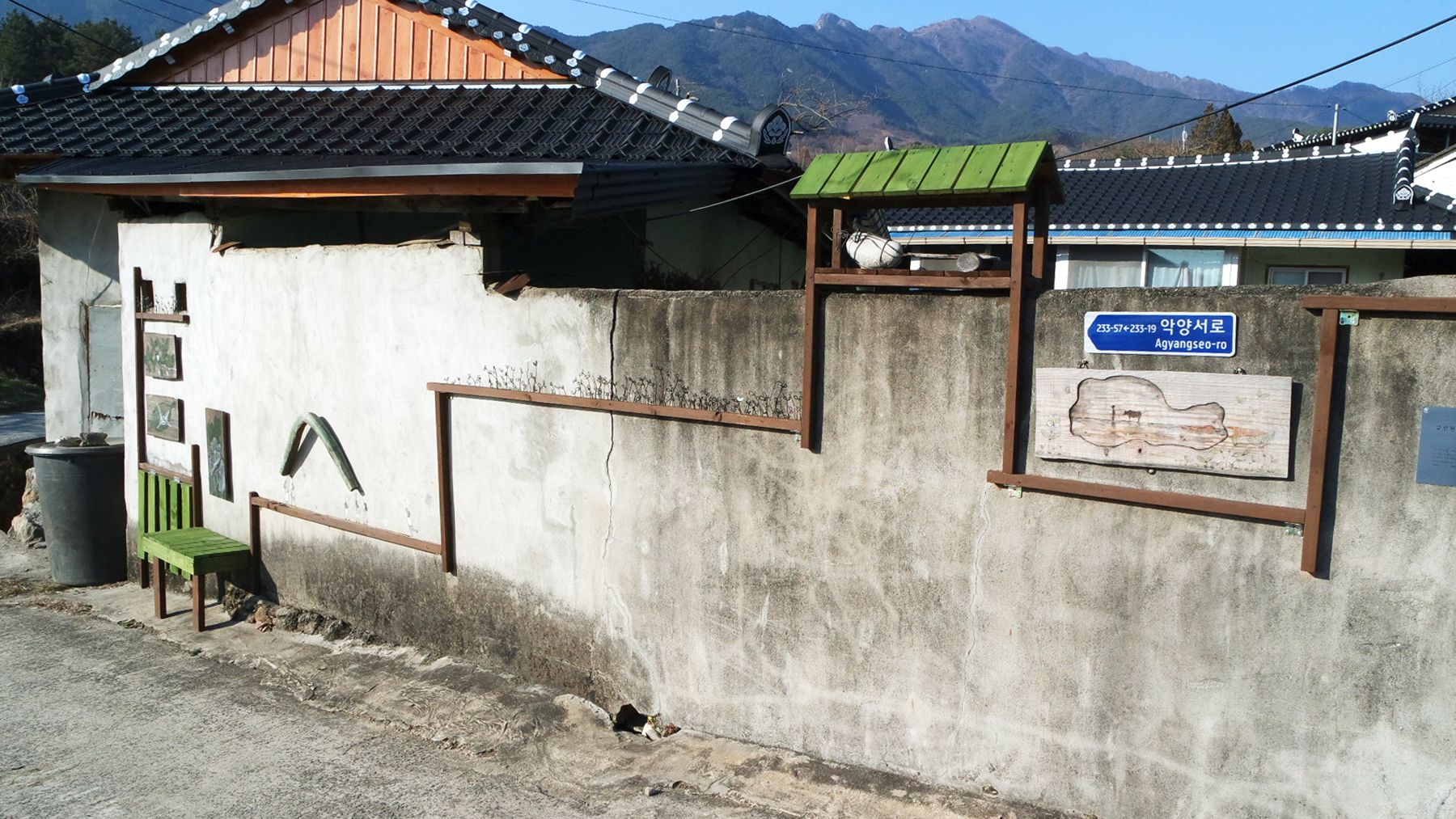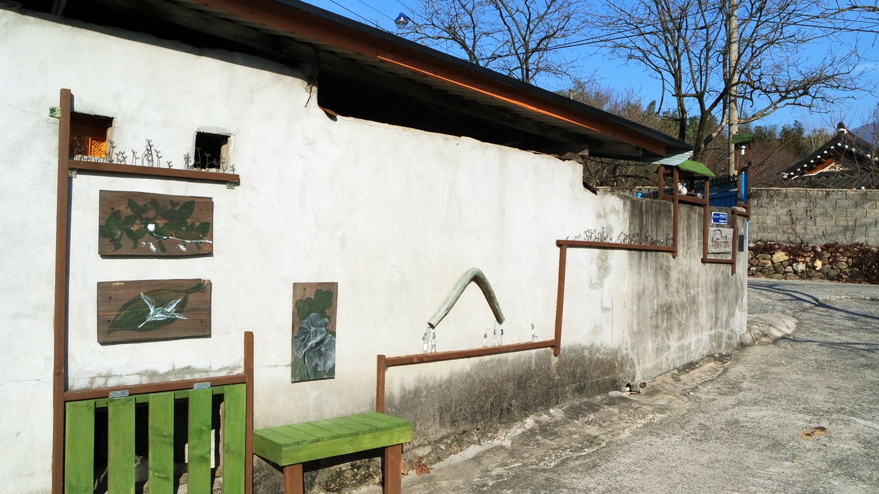 골목길 갤러리는 이장님 댁부터 둘러보시며 걸으면서 전체를 감상할 수 있습니다.
