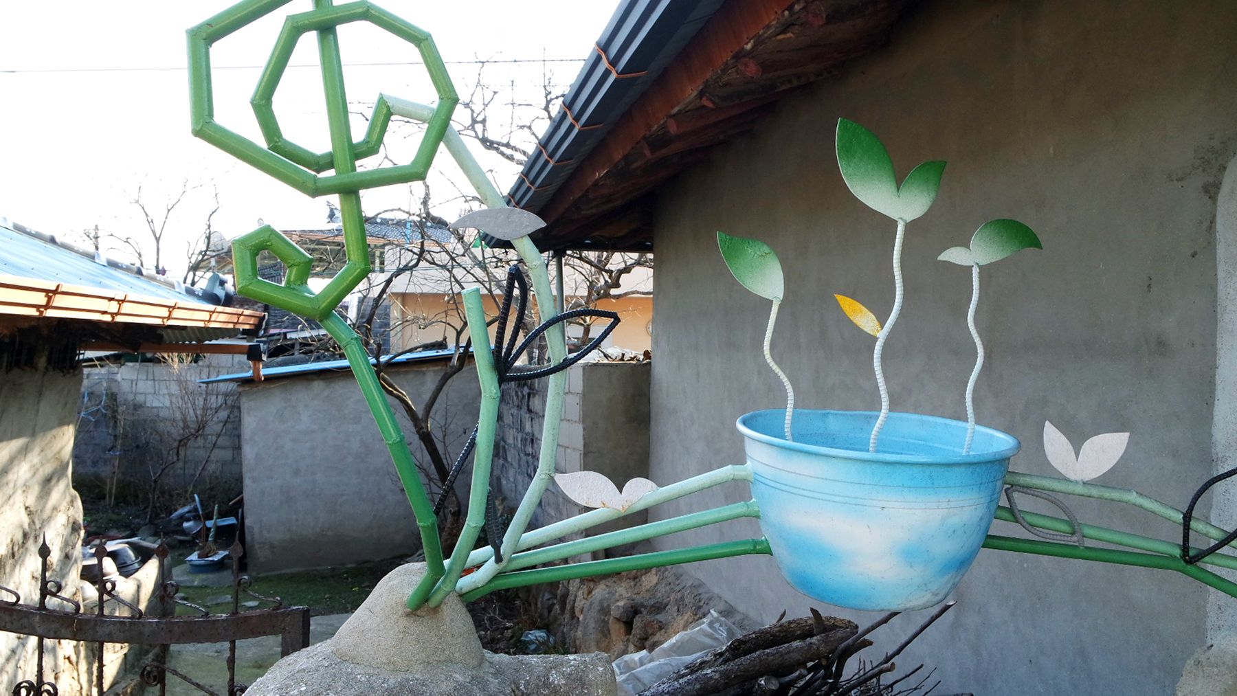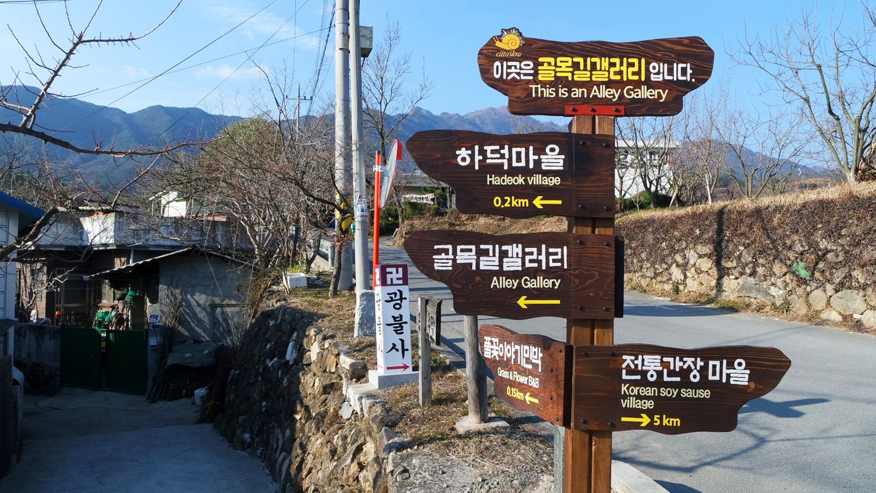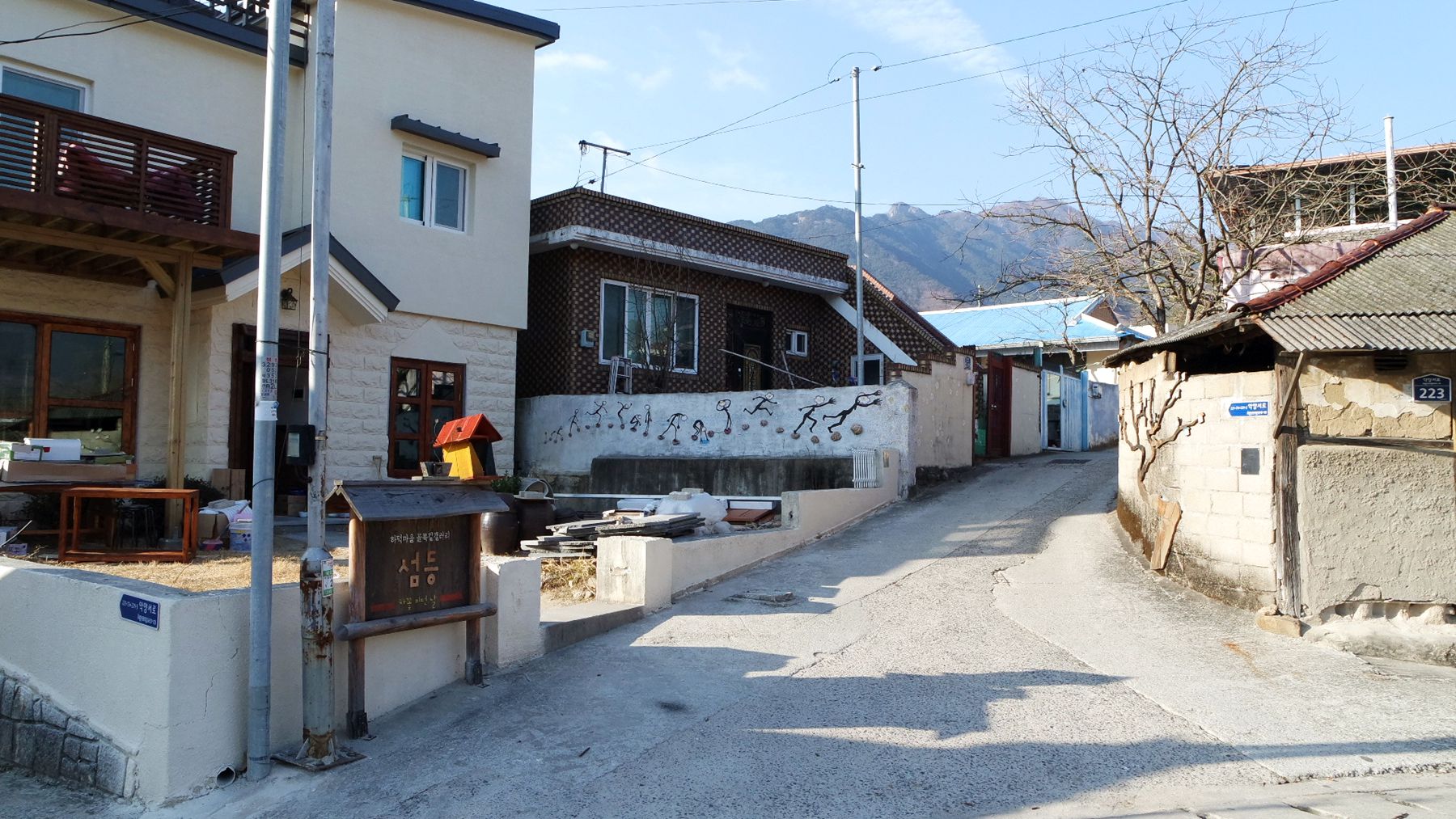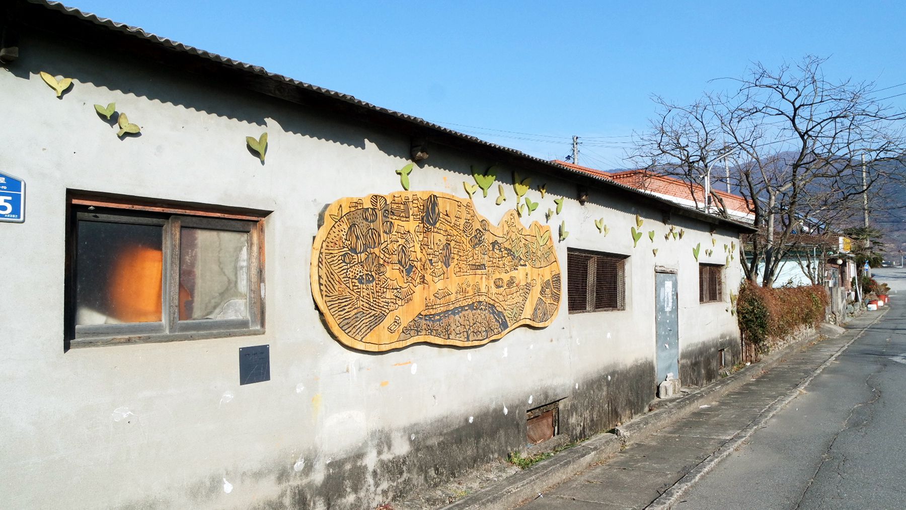 골목길 갤러리는 이장님 댁부터 둘러보시며 걸으면서 전체를 감상할 수 있습니다.