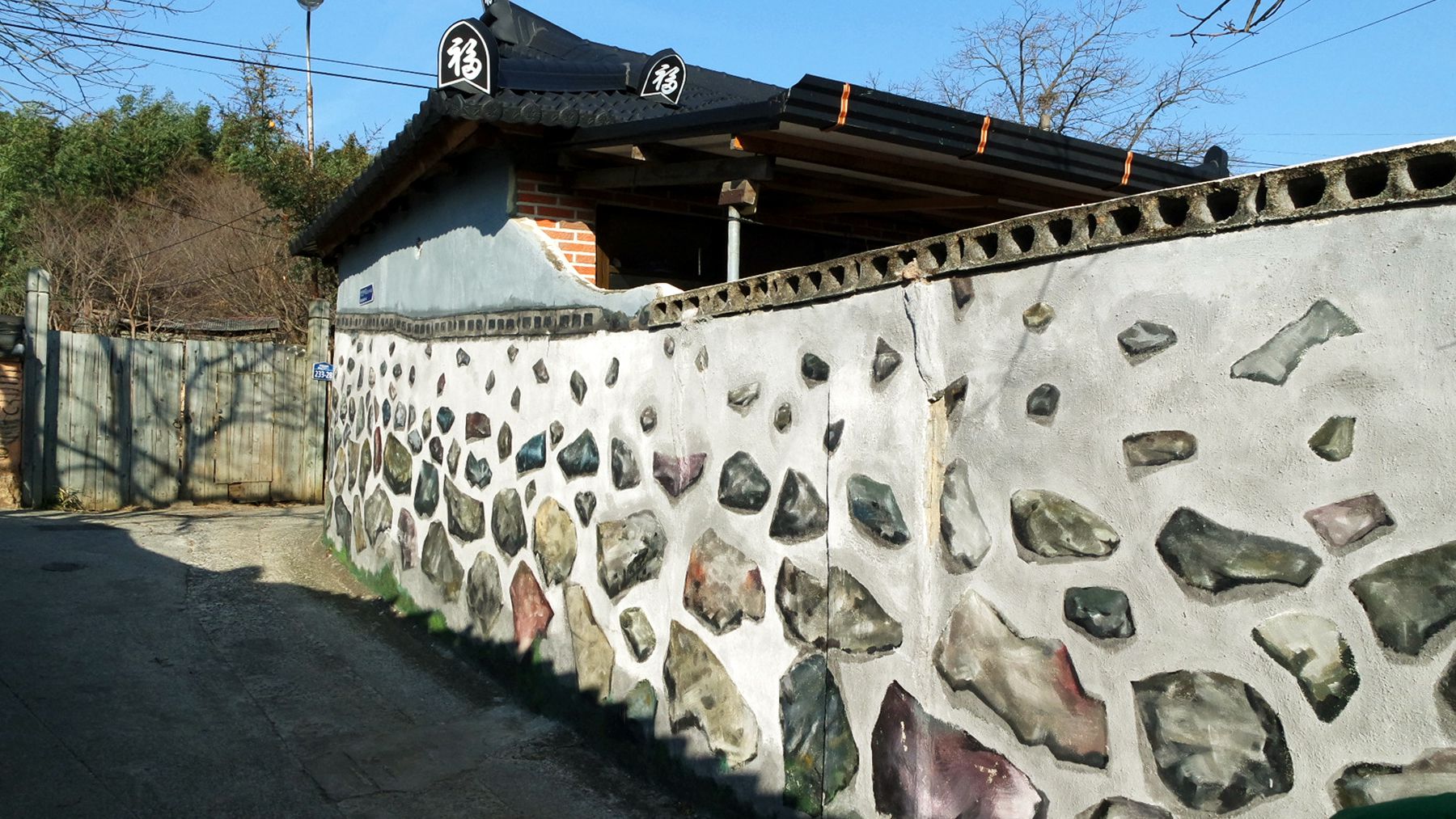 묘하게 한 번쯤 만져 보고 싶은 느낌이 드는 멋스러운 돌담길입니다.