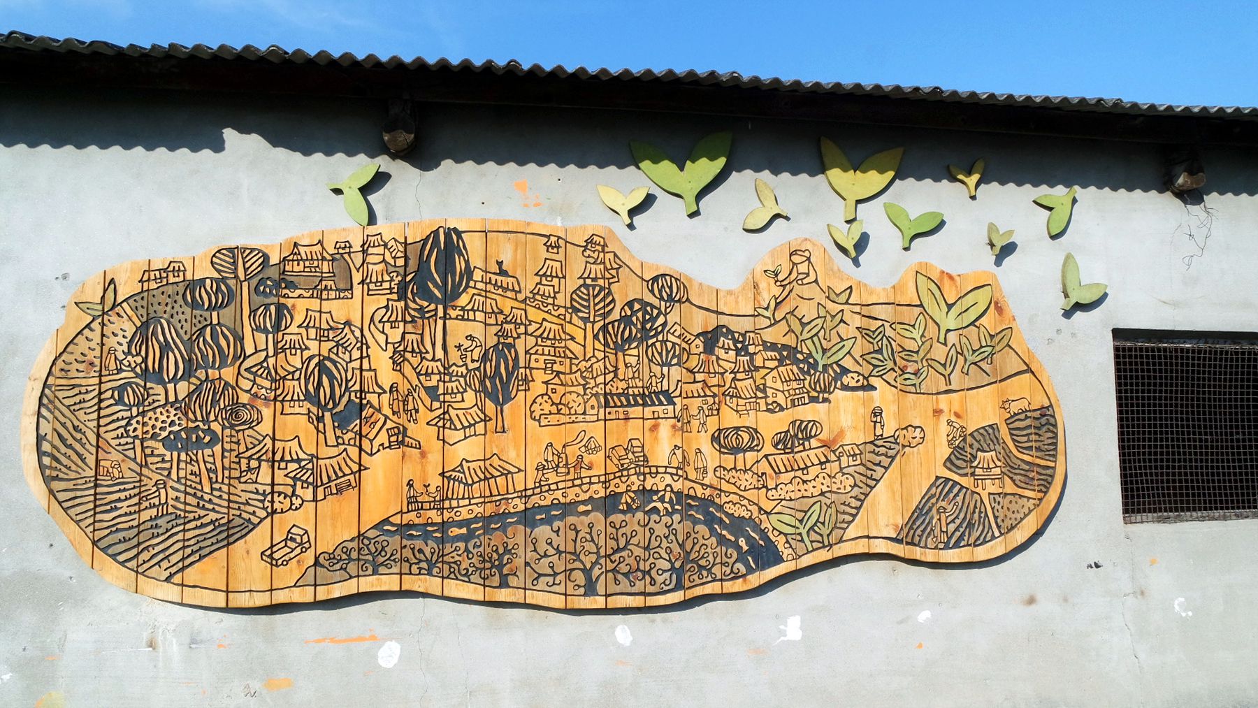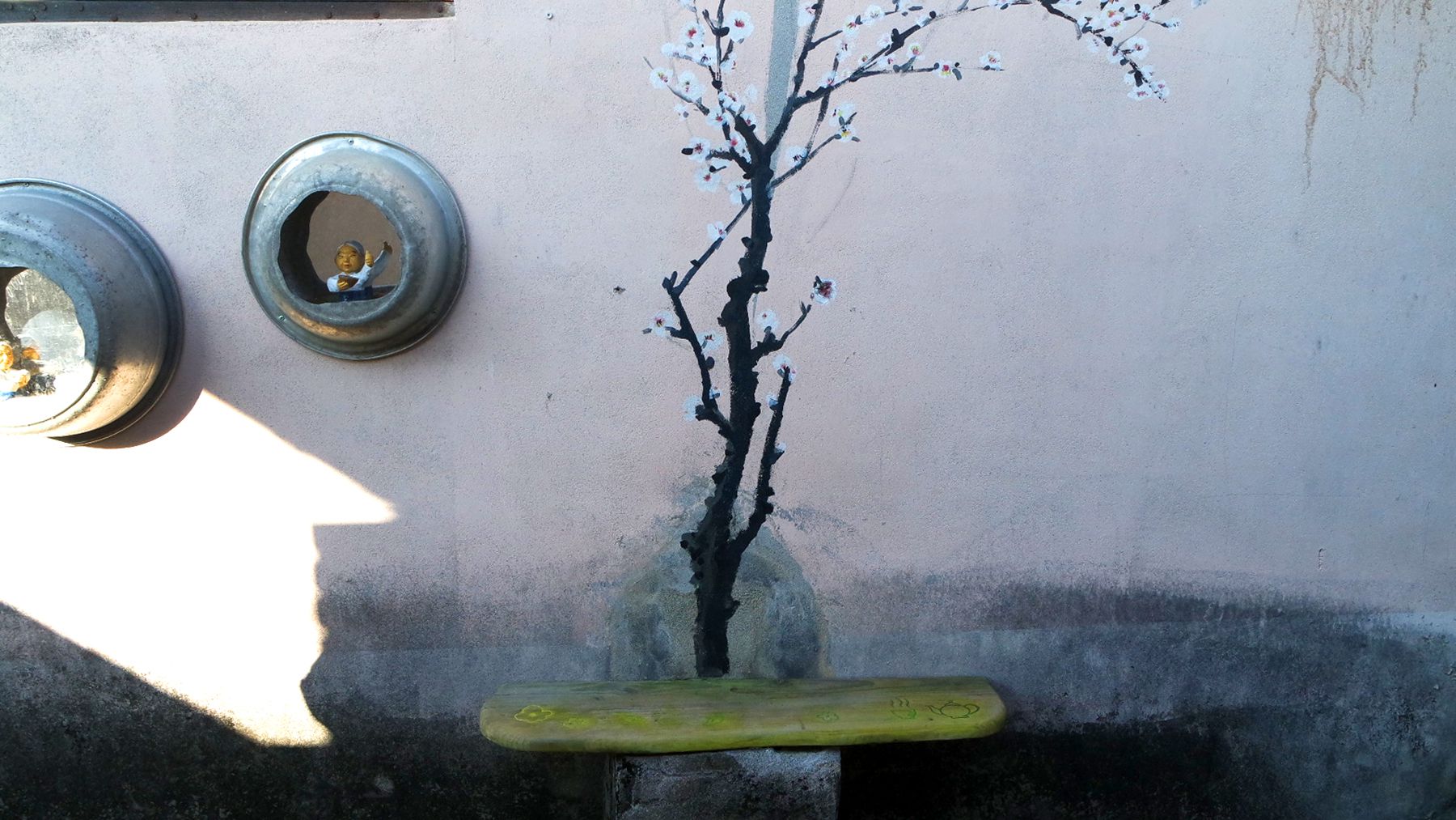 이곳이 고향인 위안부 할머니이신 고 정서운 할머니를 위로하고 애도하는 뜻이 담겨있는 그림들이 그려져 있고