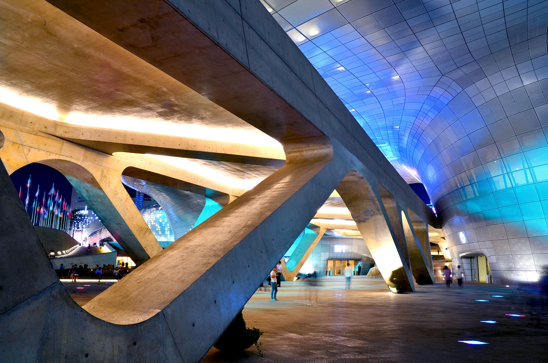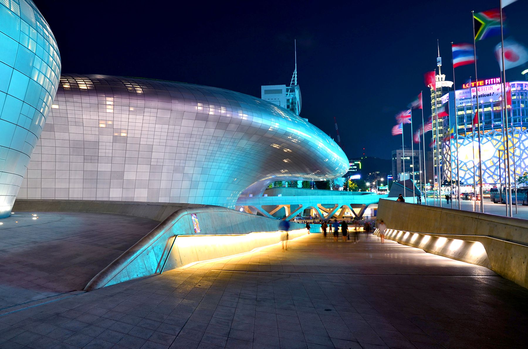동대문디자인플라자는 낮에도 사람들이 많이 붐비지만,