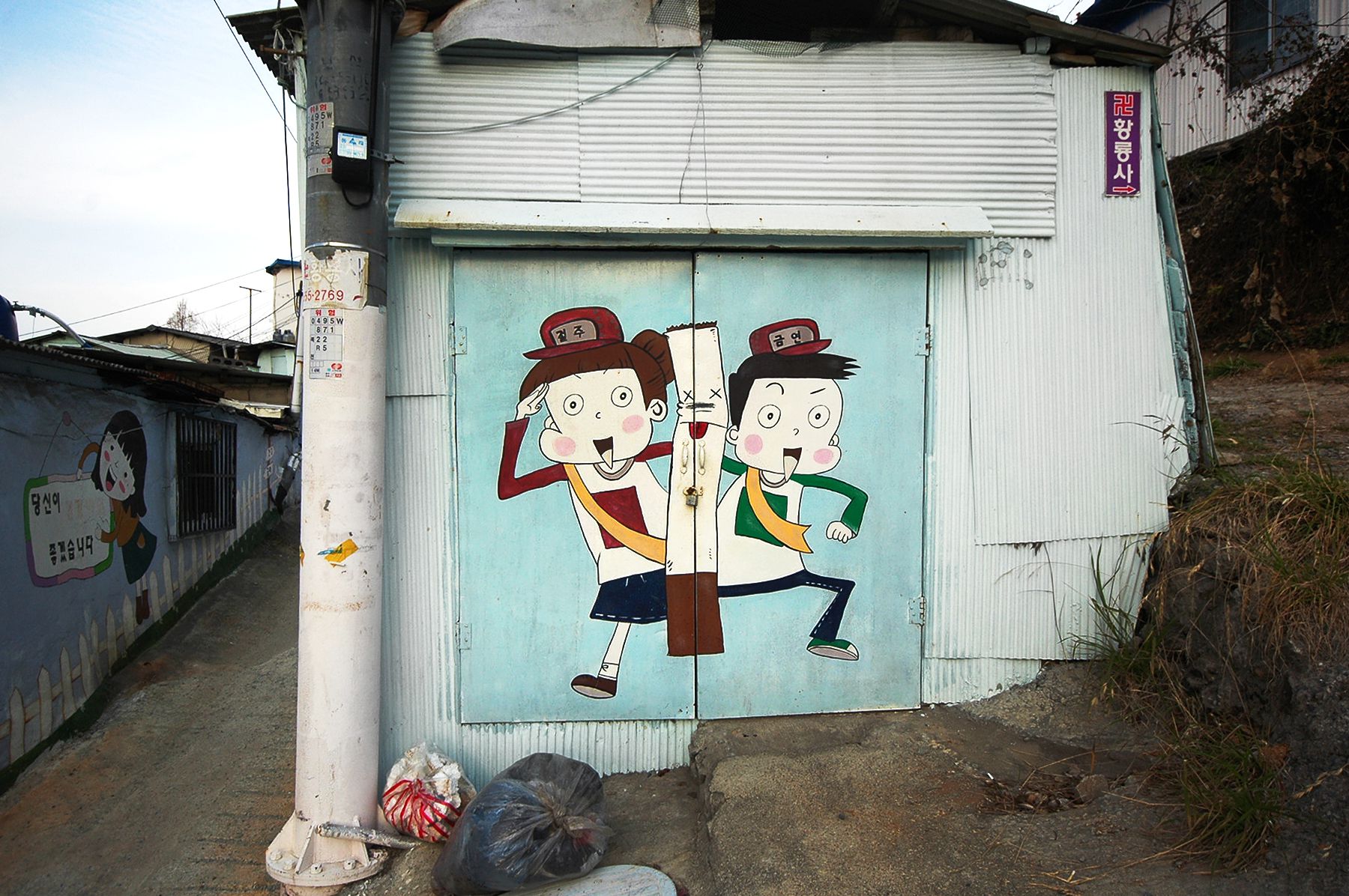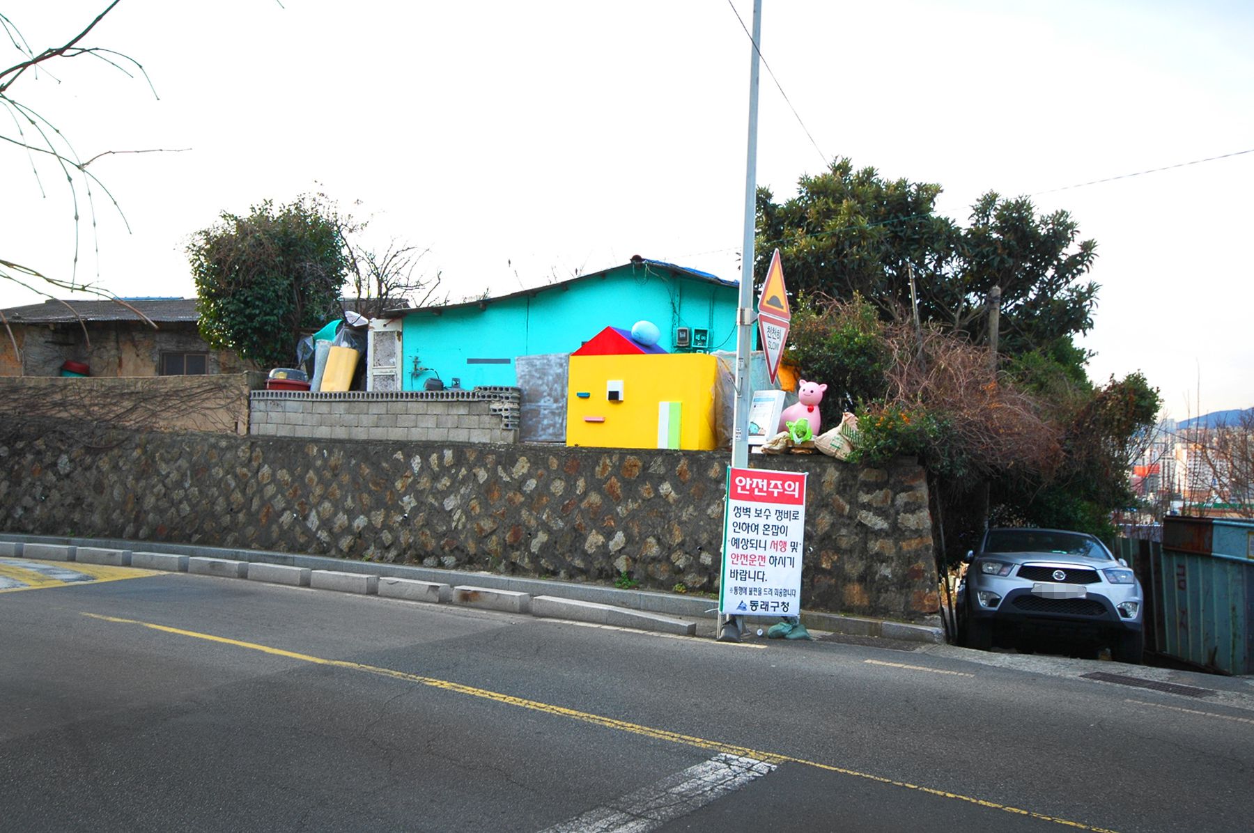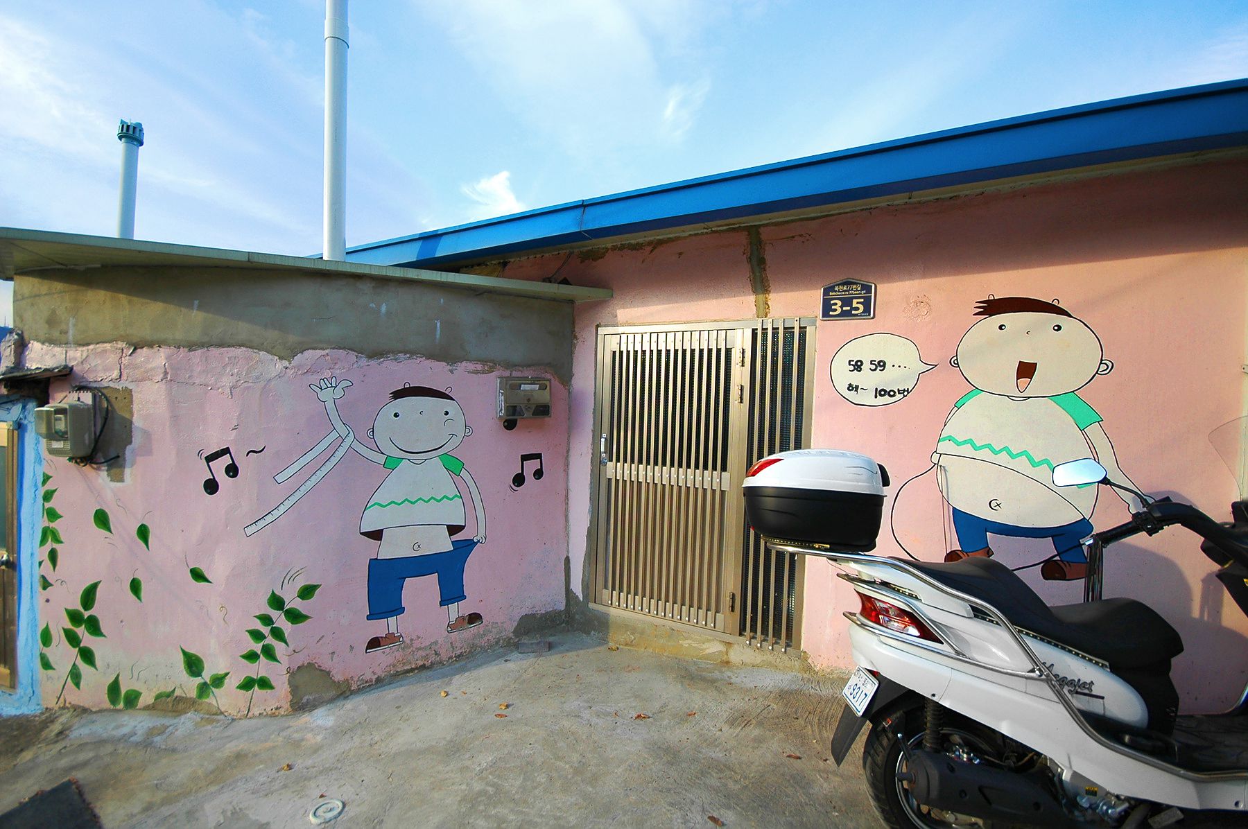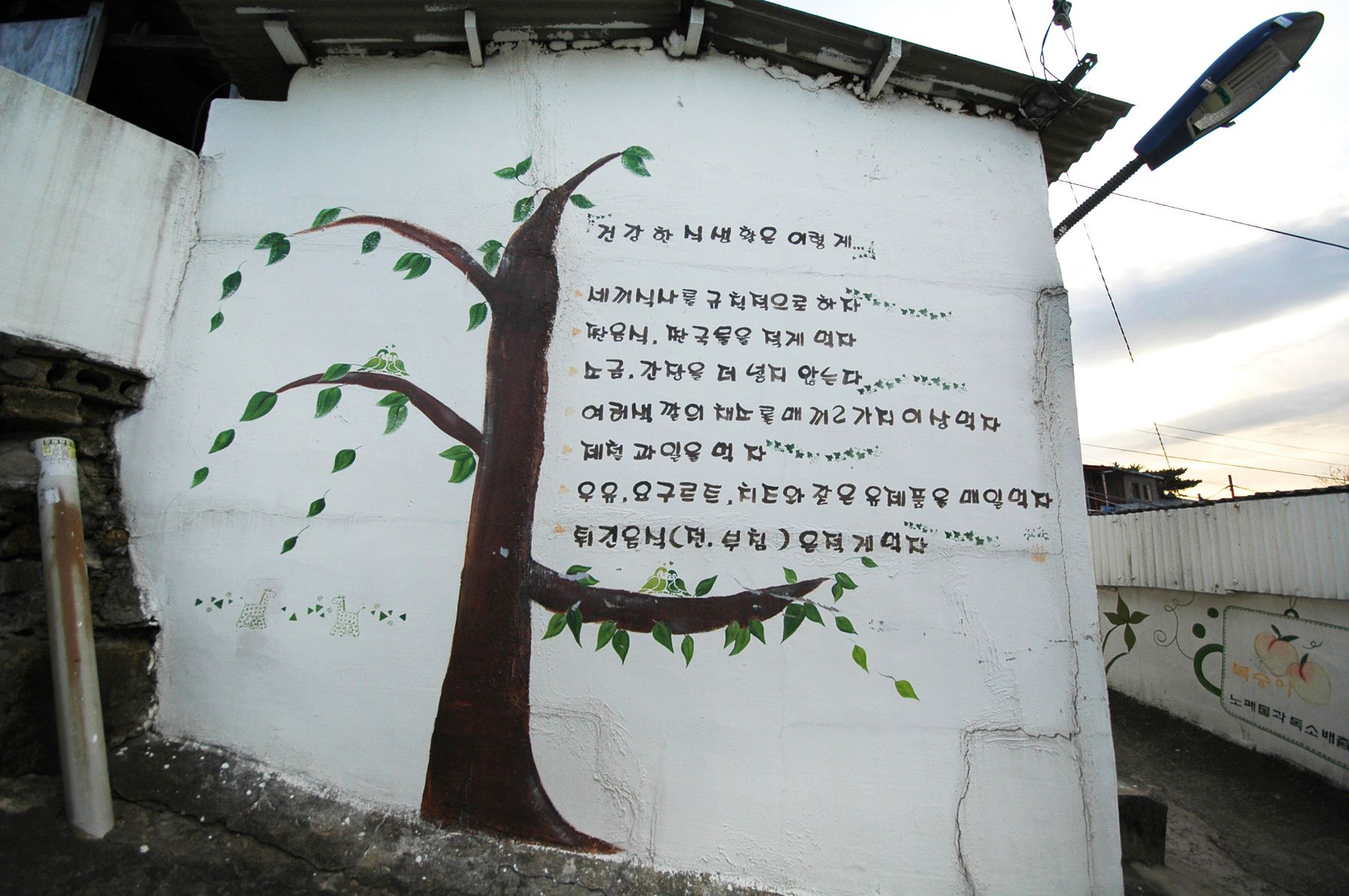 2010년 동래구 칠산동의 마을 입구과 담벼락에 건강을 주제로 벽화를 그려서