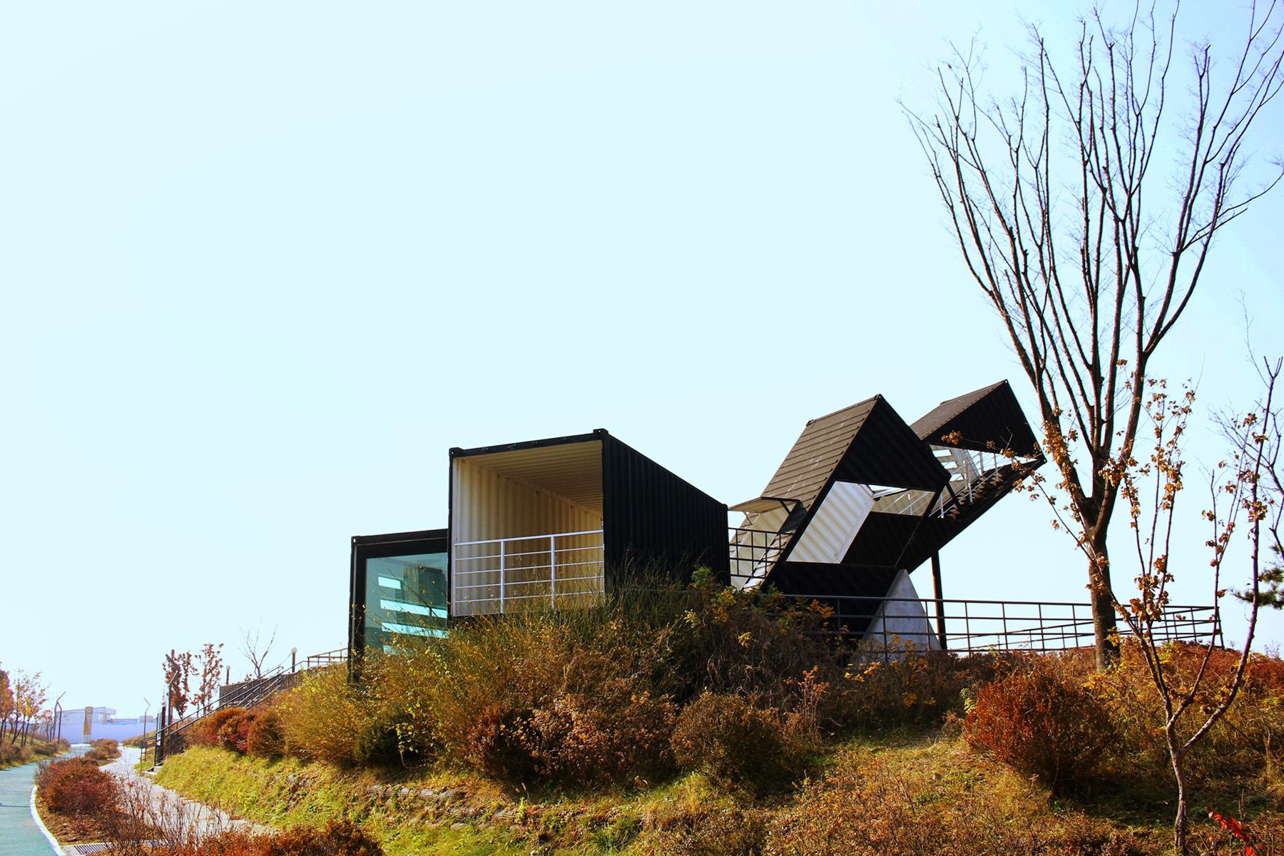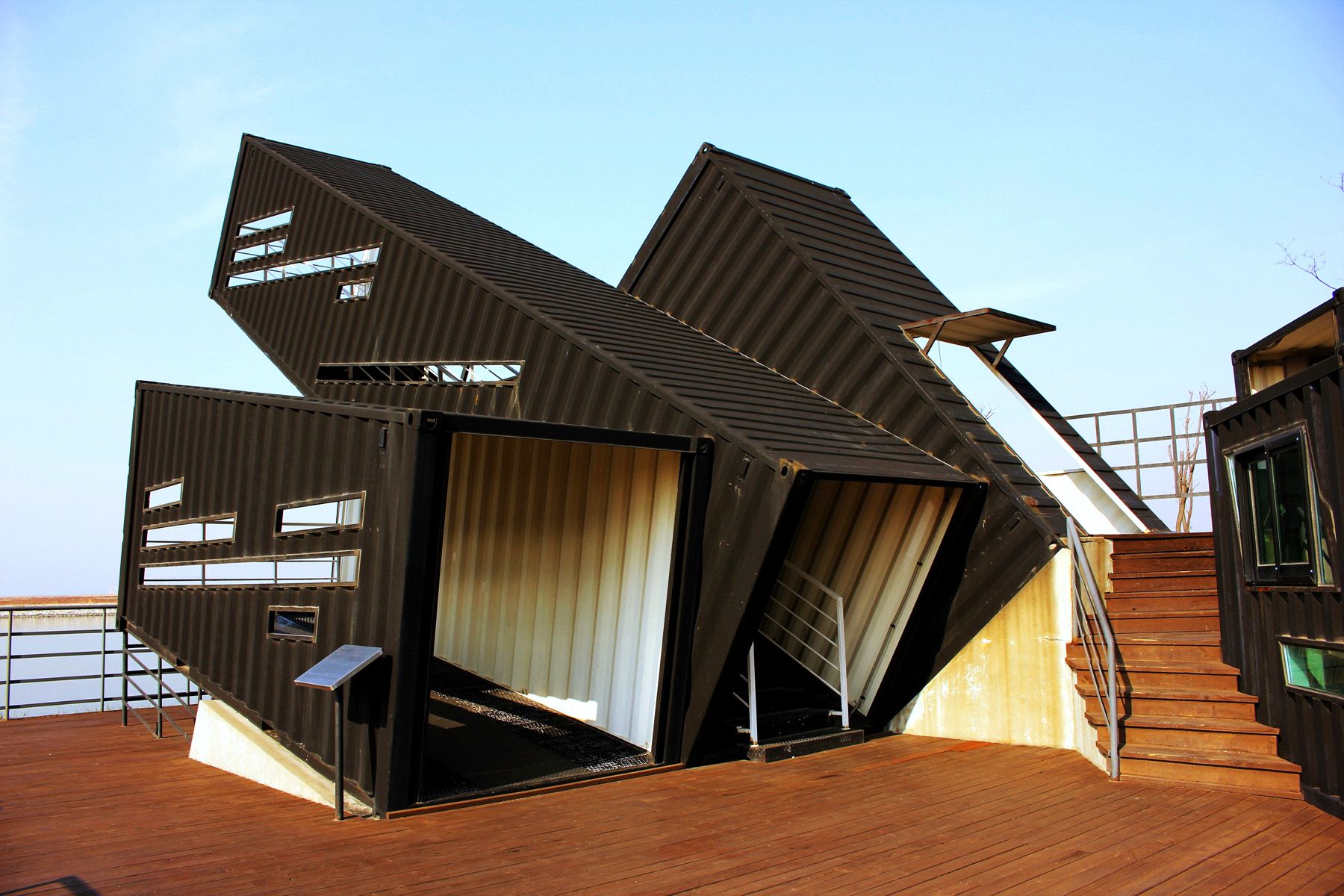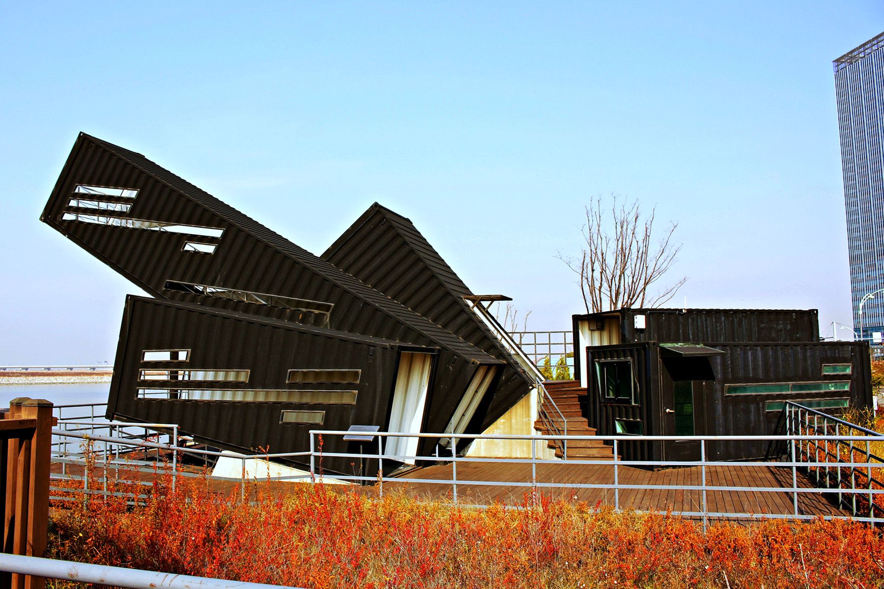 디자인 어워드에서 대상을 수상한 인천대교 전망대 오션스코프는 5개의 컨테이너로 만들어진 전망대입니다.
