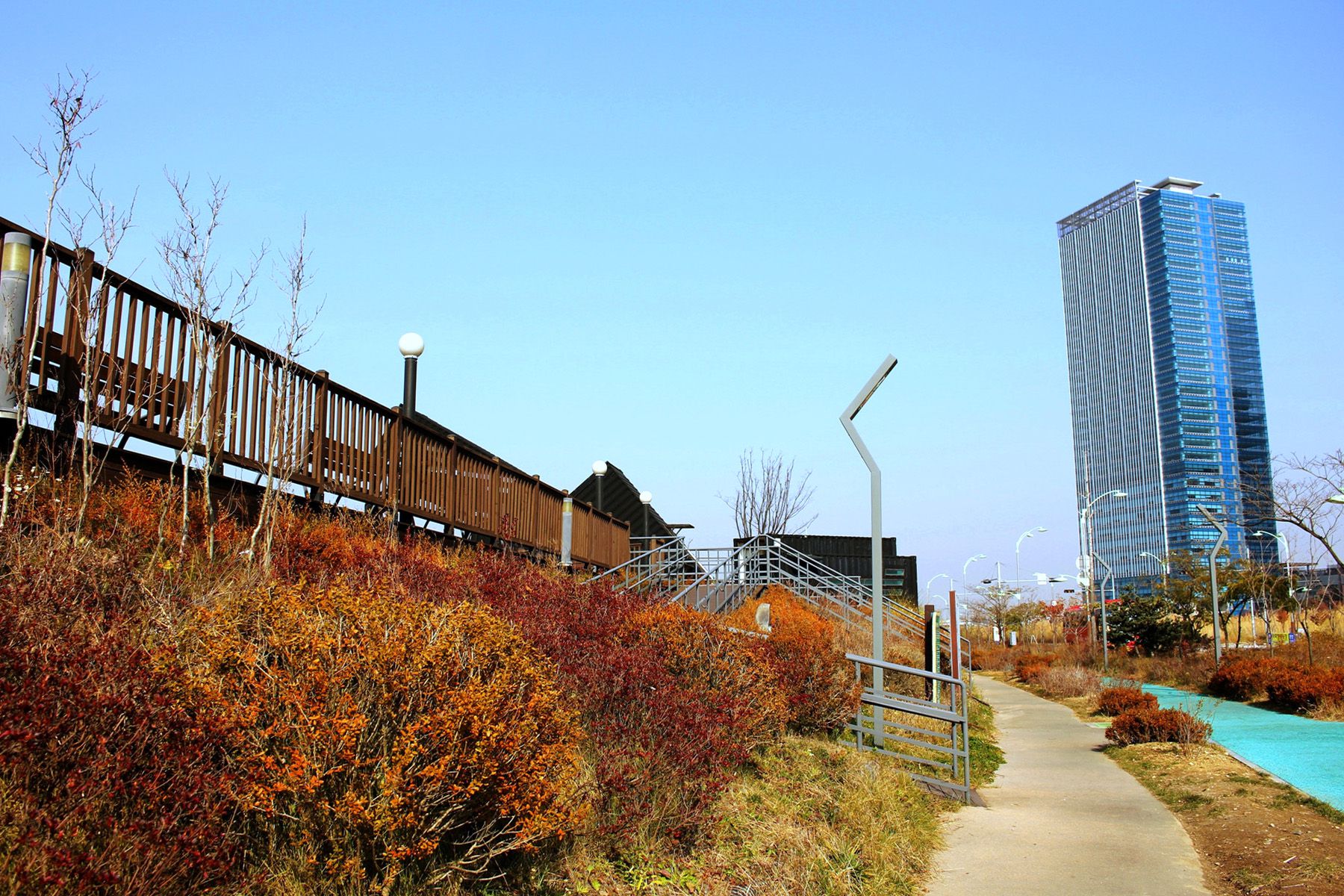 잘 조성된 산책로 따라 거닐면 독특한 외관의 인천대교 전망대 오션스코프를 만날 수 있습니다.