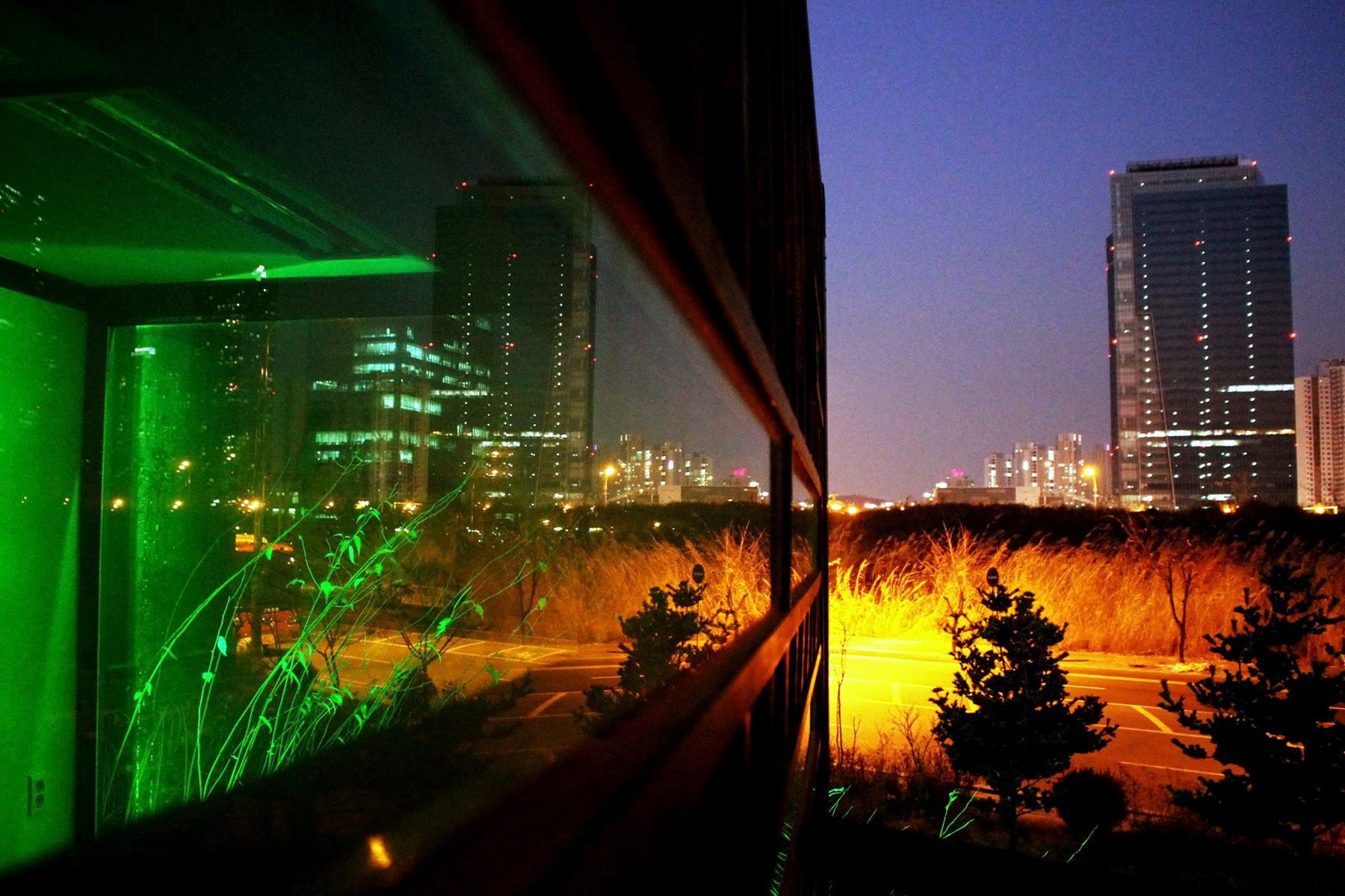 서해바다에 어둠이 내리면 인천대교 전망대 오션스코프에도 알록달록 조명들이 불을 밝힙니다.
