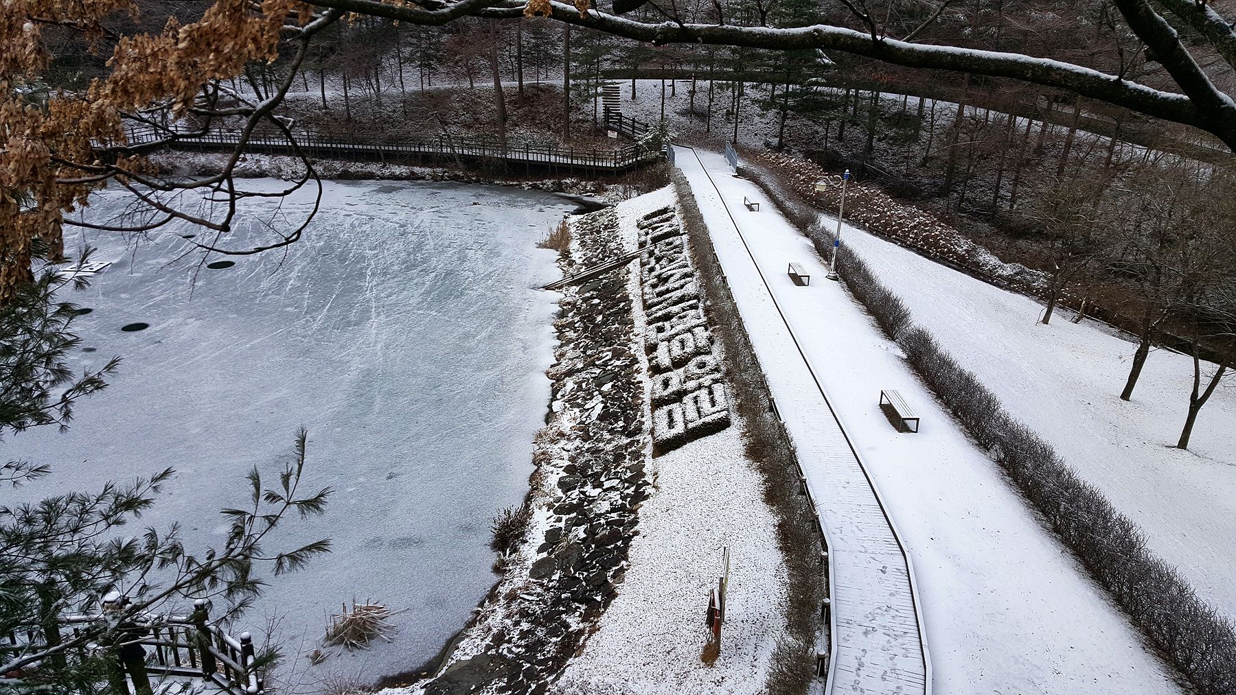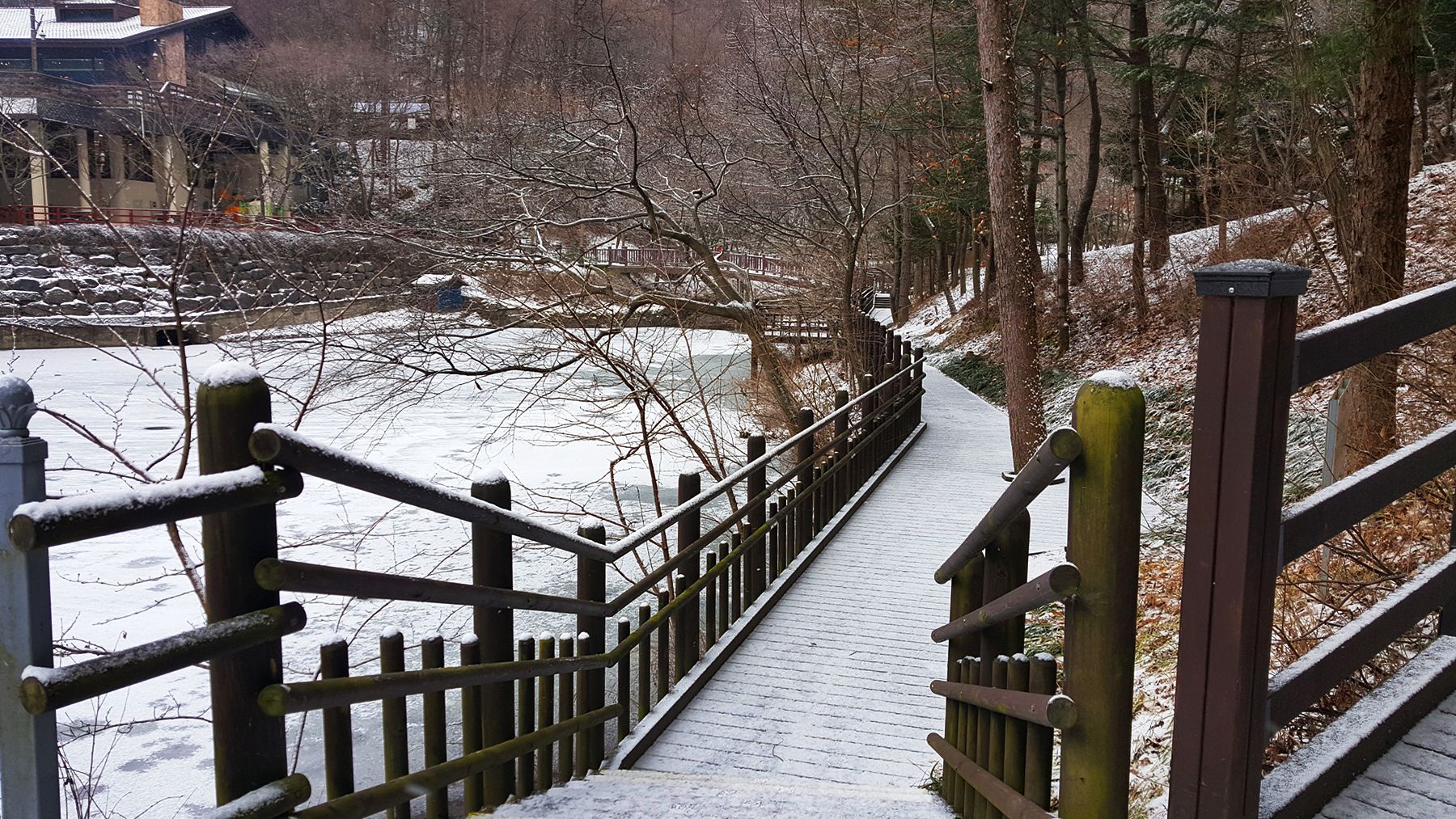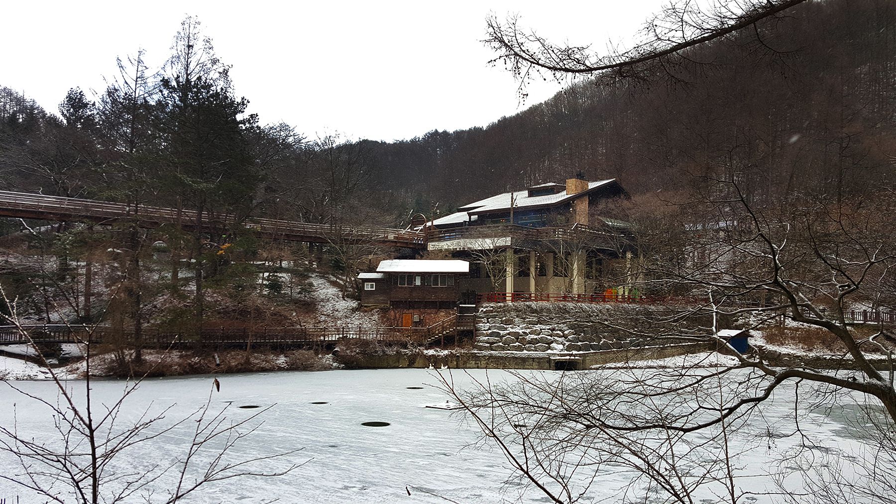 수변의 생태를 알아보고 체험해 보기 좋은 휴양림 내의 저수지는 사계절 내내