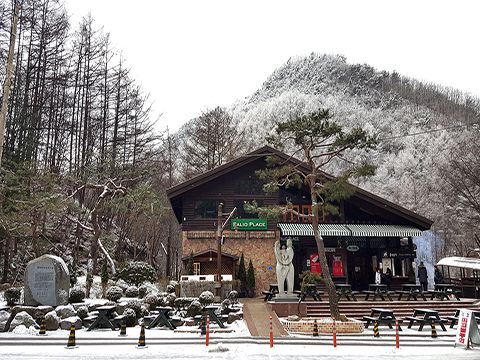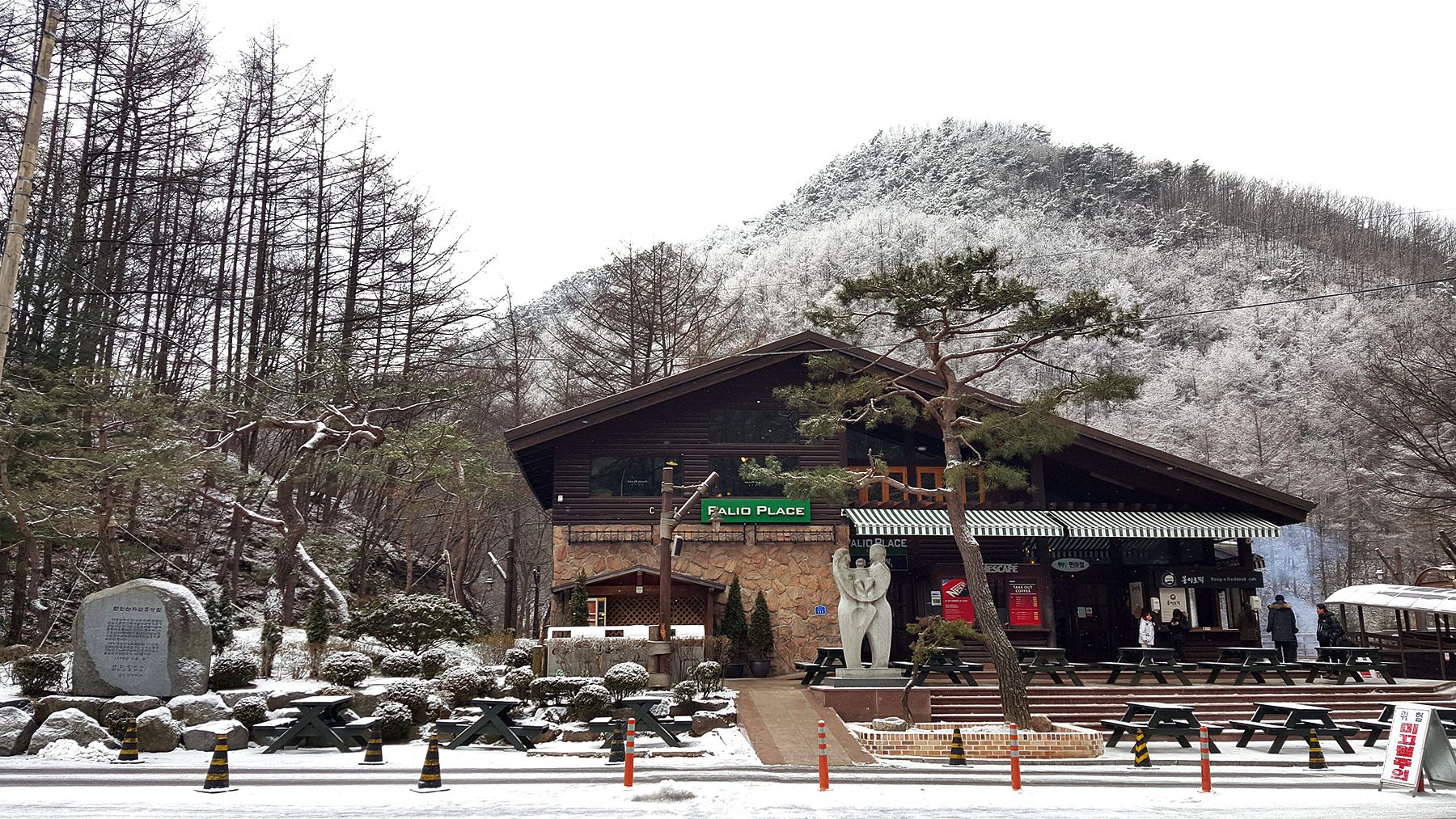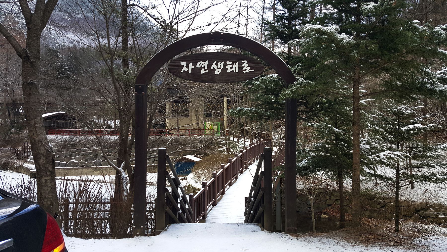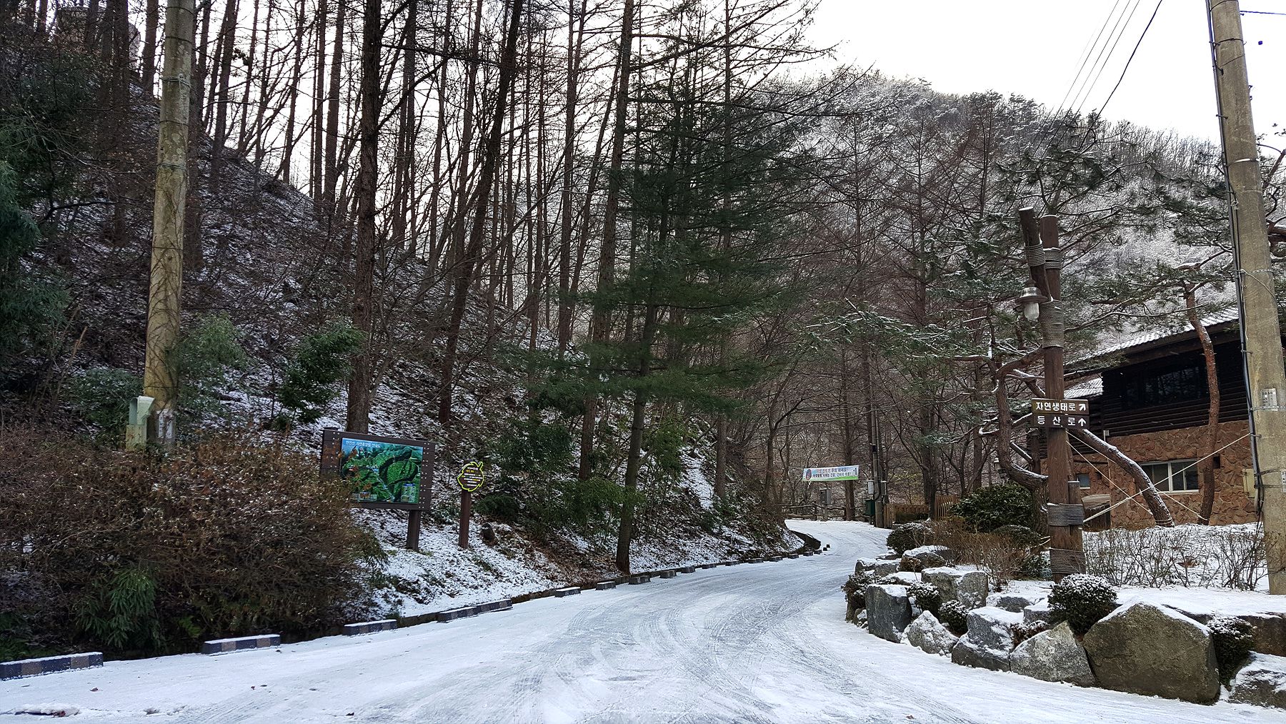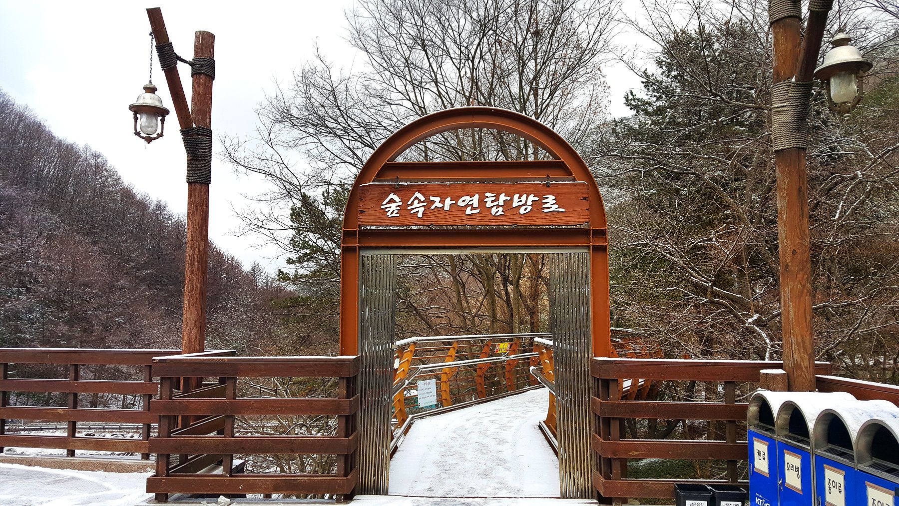 널찍한 주차장과 휴게시설로 꾸며진 휴양림의 입구는 다양한 먹거리와 볼거리를 즐길 수 있도록