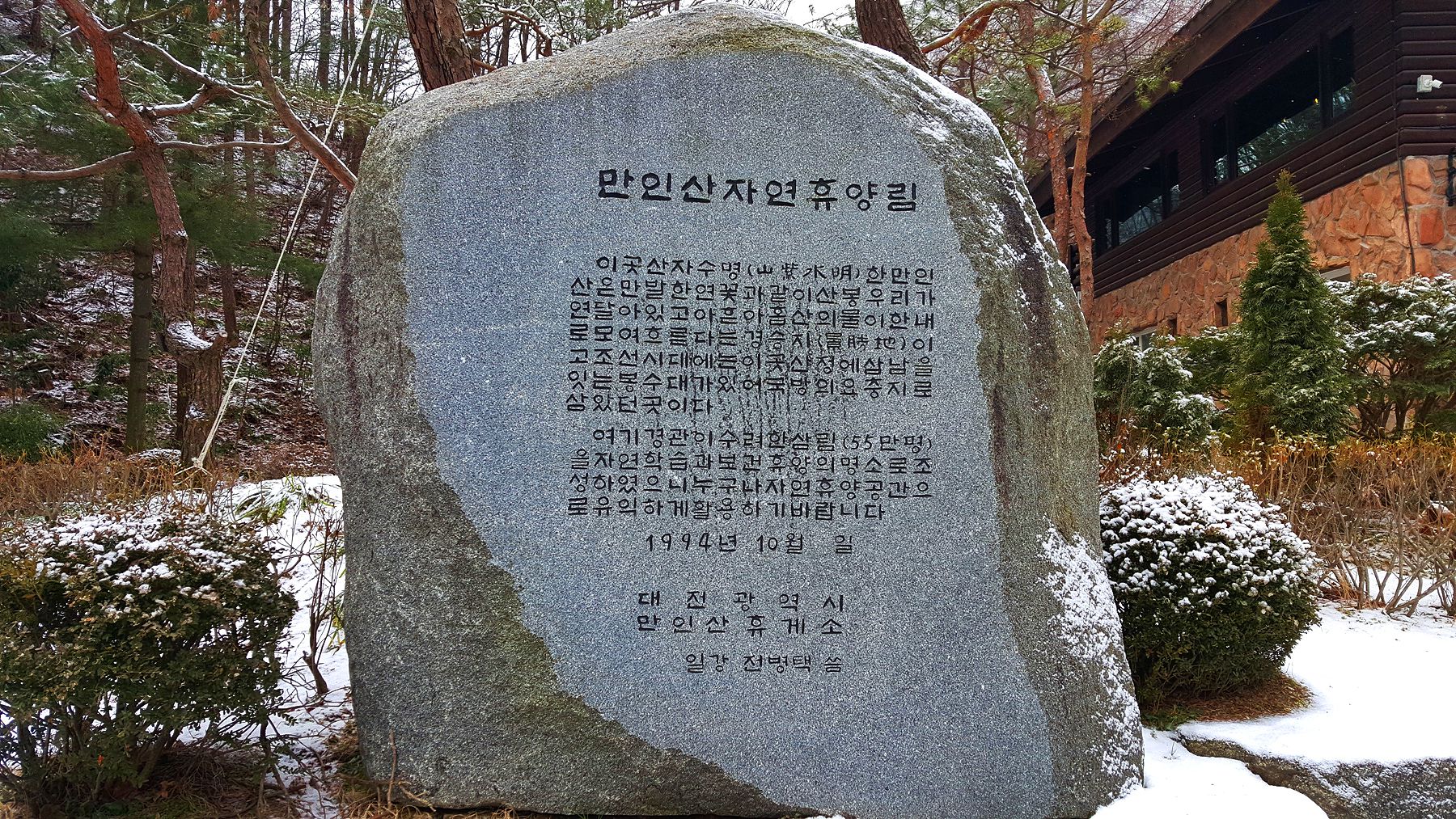 대전광역시 동구 하소동에 위치한 만인산 자연휴양림은 맑고 아름다운 계곡들과 다양한 초목이 어우러져