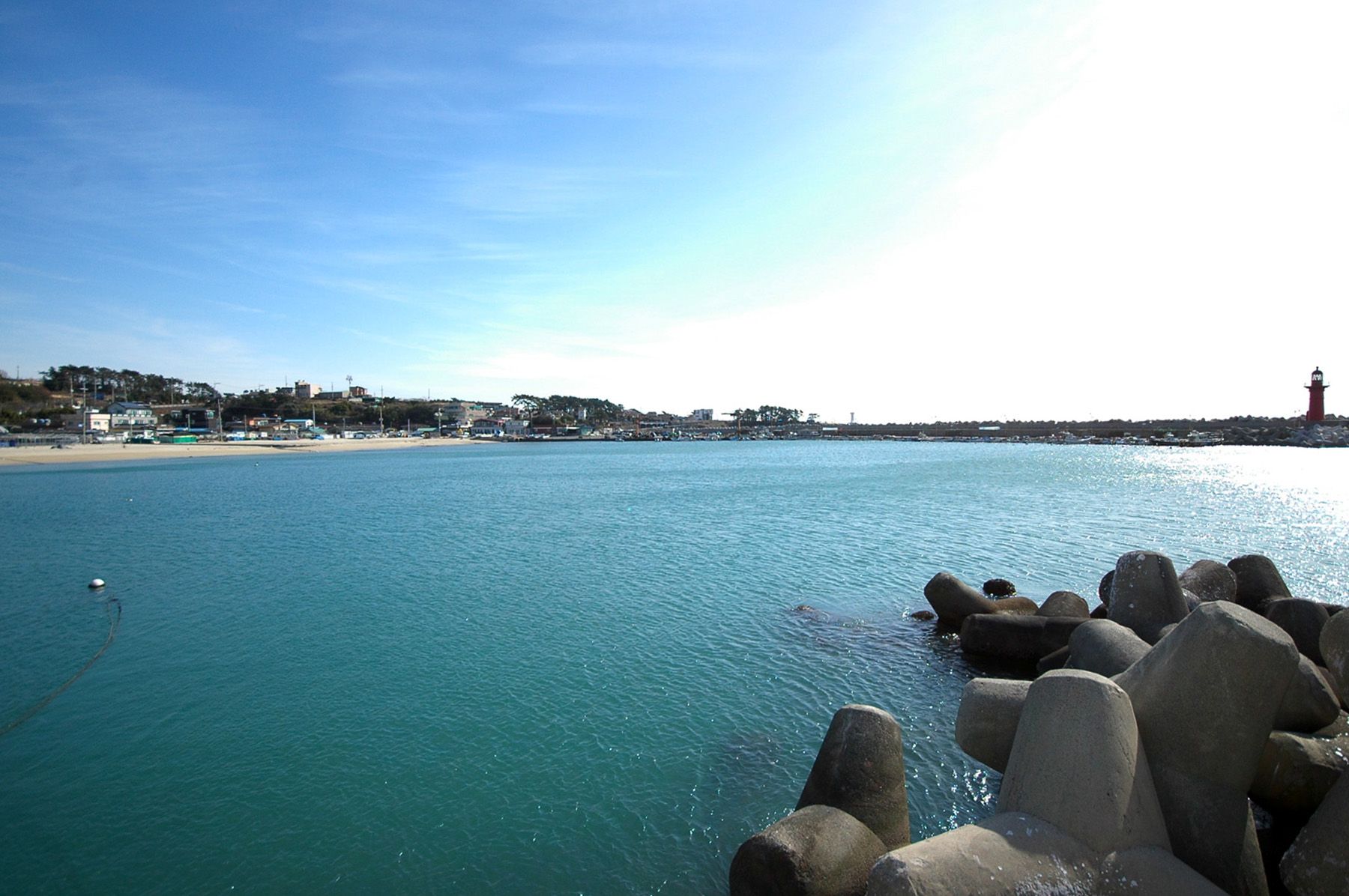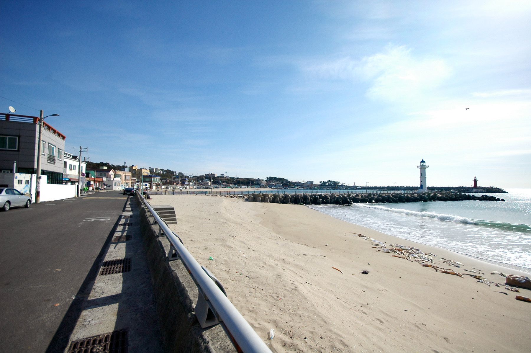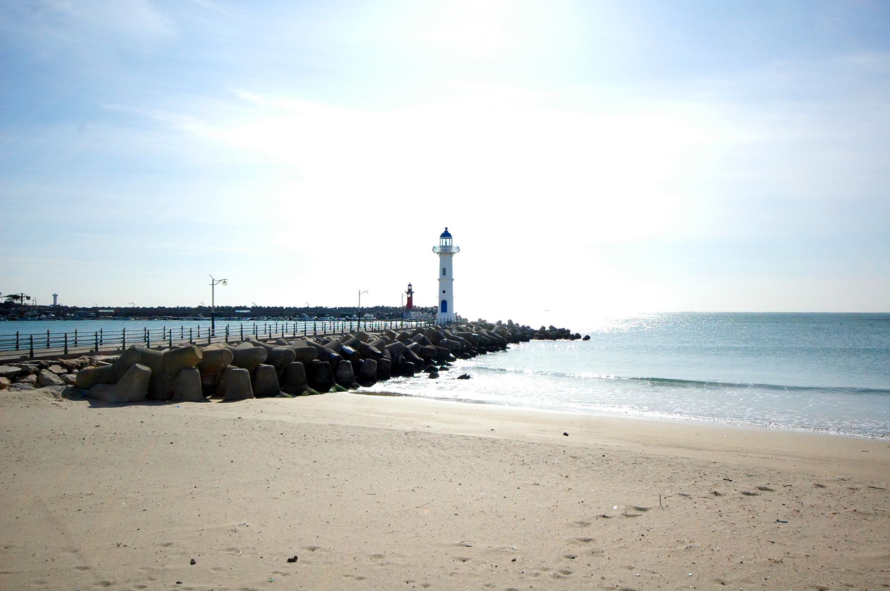방파제가 두 곳에서 해변 안을 감싸듯이 건설되어 있는데요. 빨간 등대가 있는 곳이 좀 더 오래전에 조성된 방파제로 보입니다.