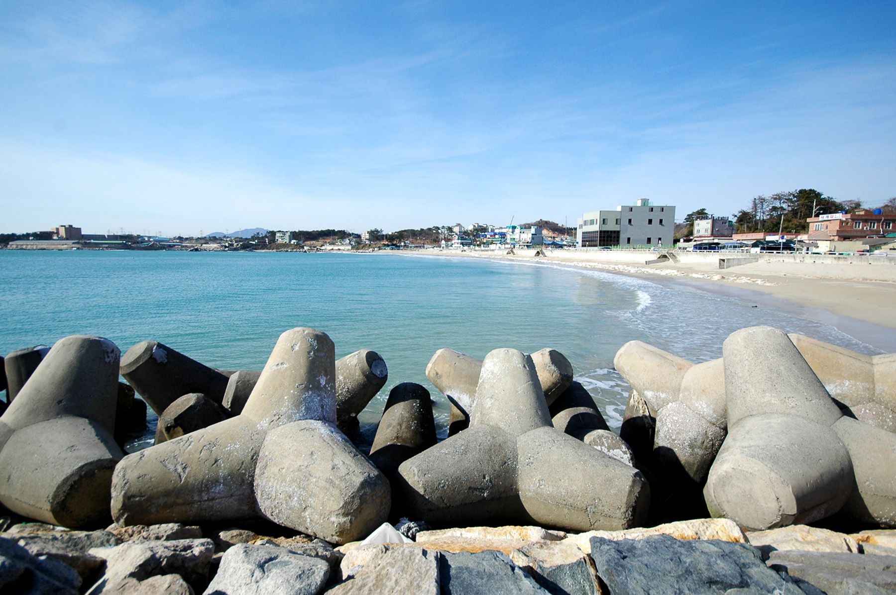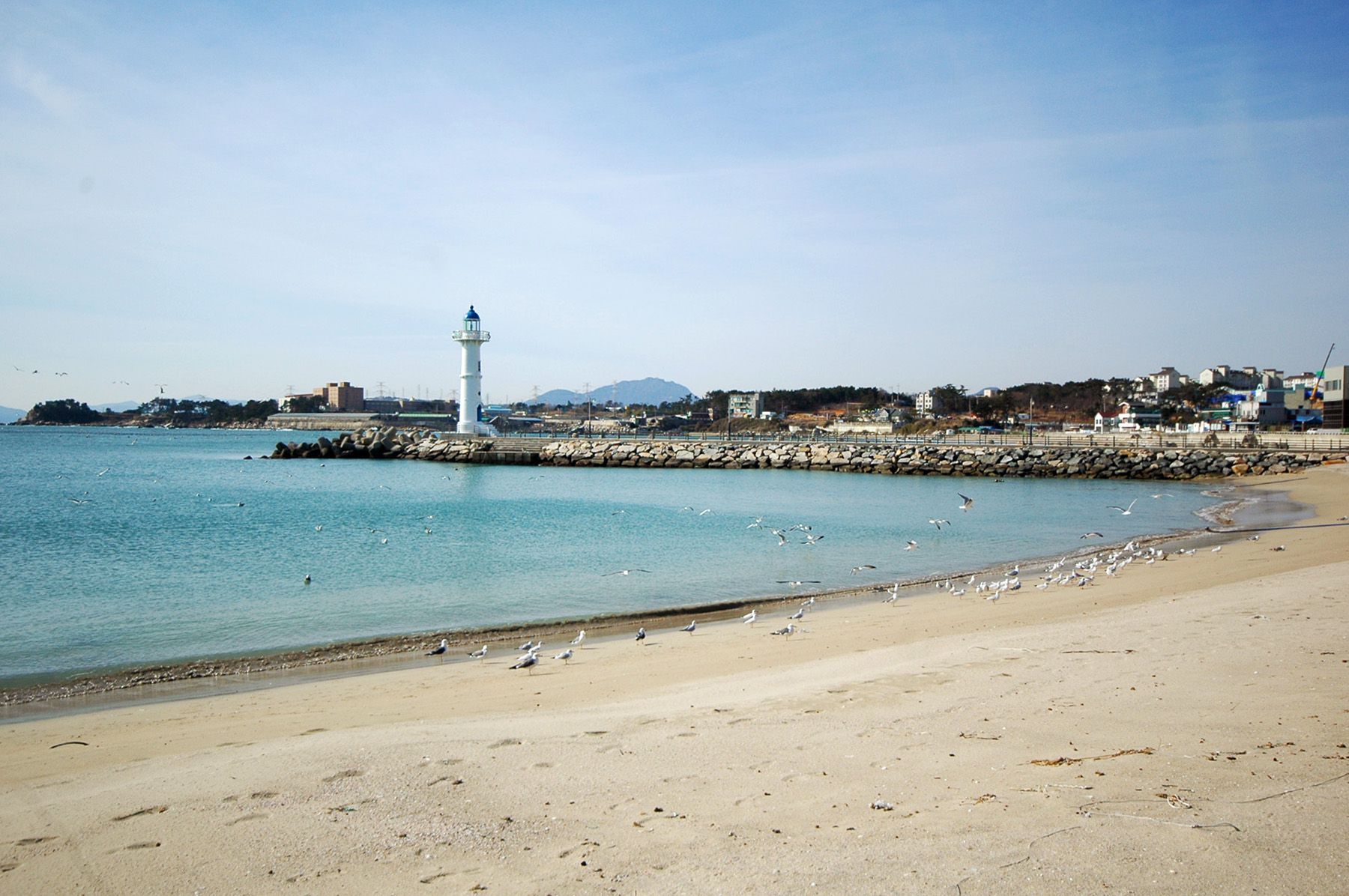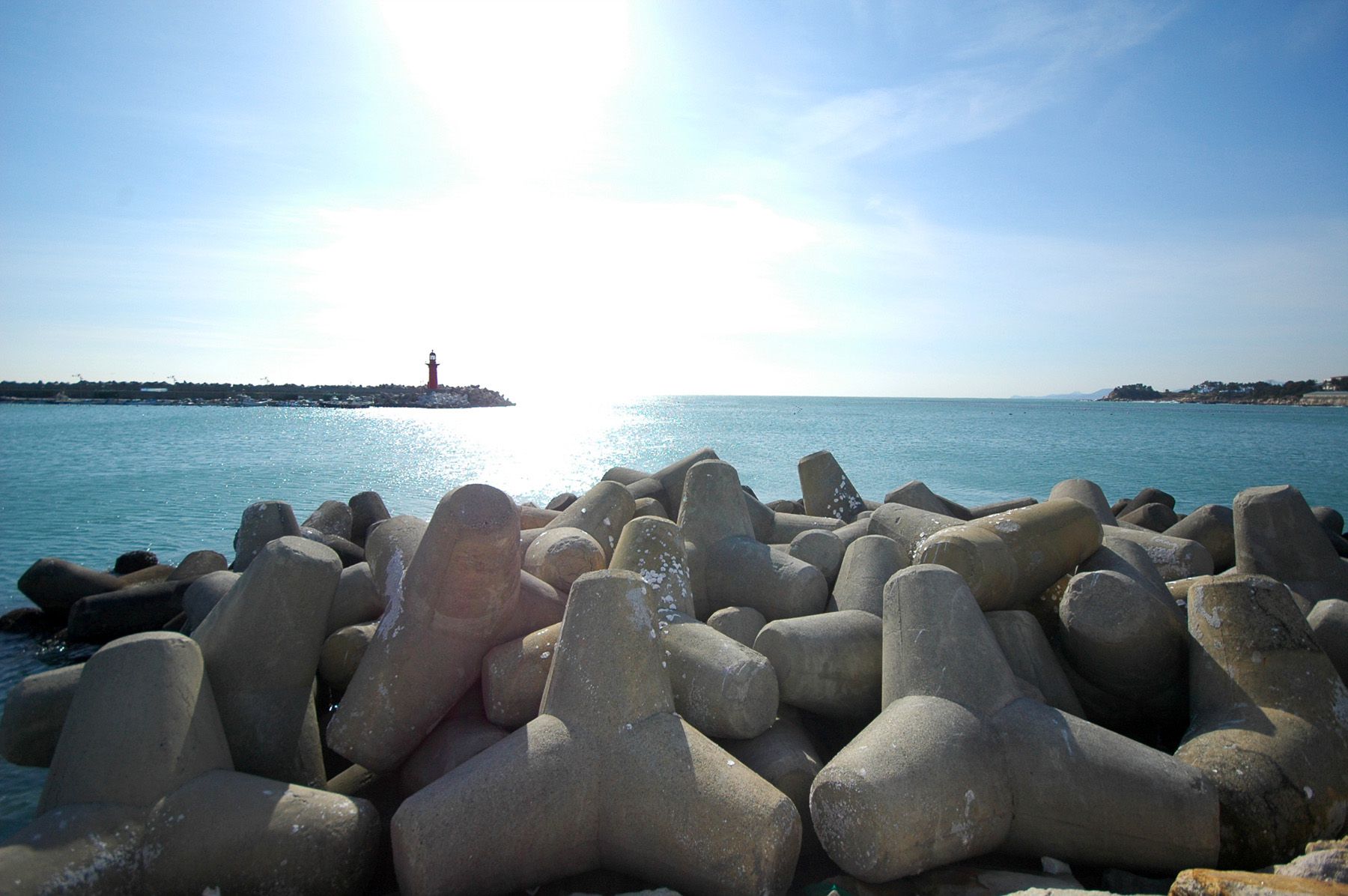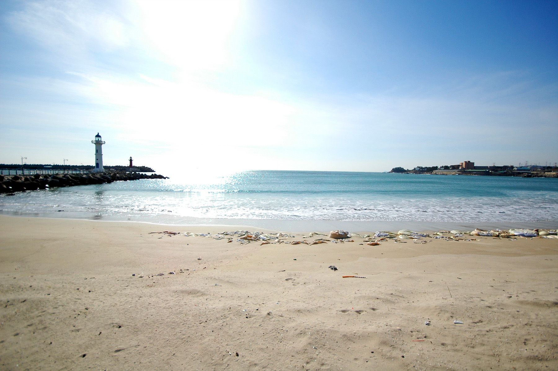 방파제가 두 곳에서 해변 안을 감싸듯이 건설되어 있는데요. 빨간 등대가 있는 곳이 좀 더 오래전에 조성된 방파제로 보입니다.