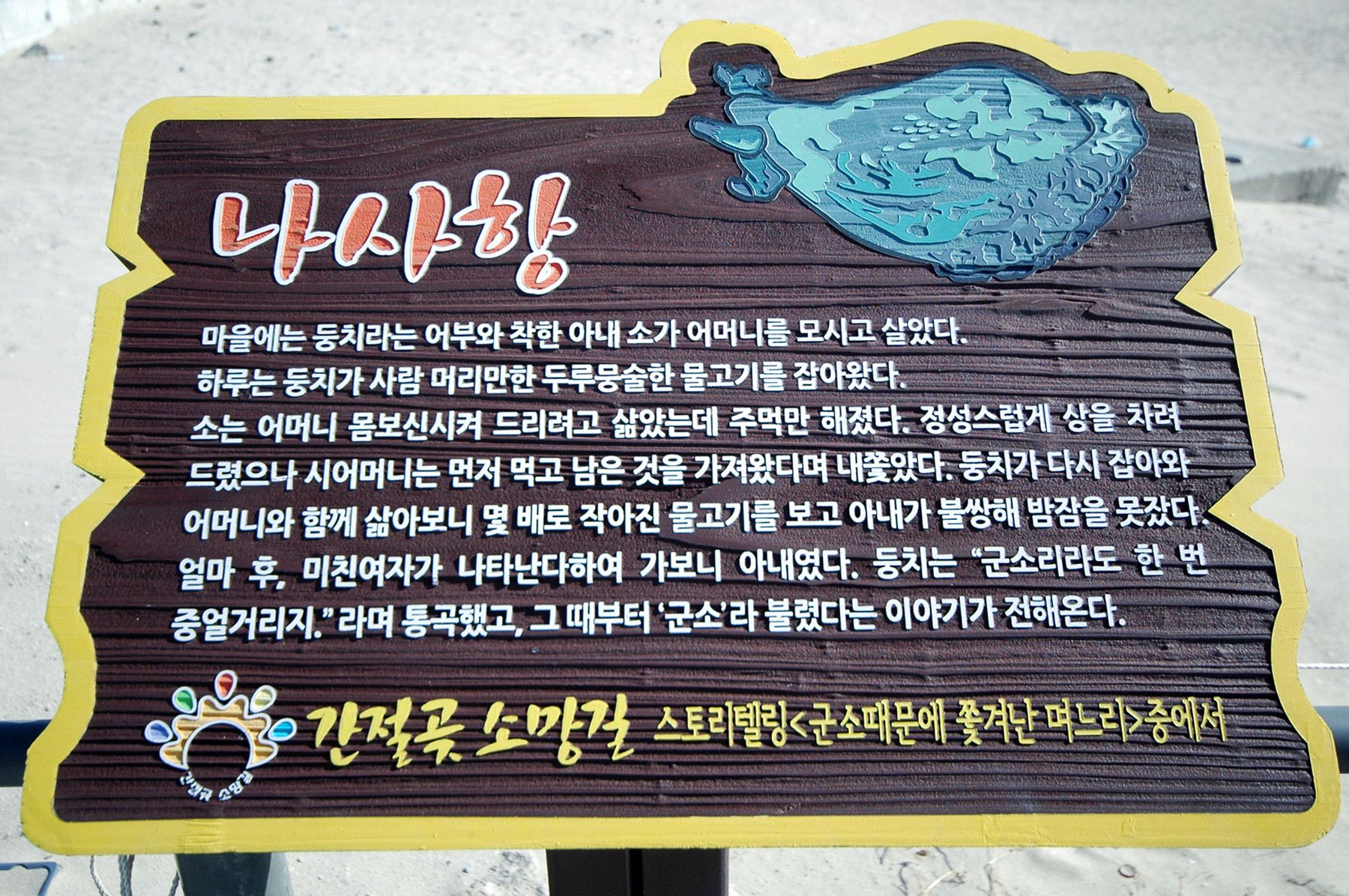 체에 거른듯한 모래(羅沙)라는 뜻에서 지금의 나사(羅士)라는 지명이 유래했을 거라고 추측되는 곳으로