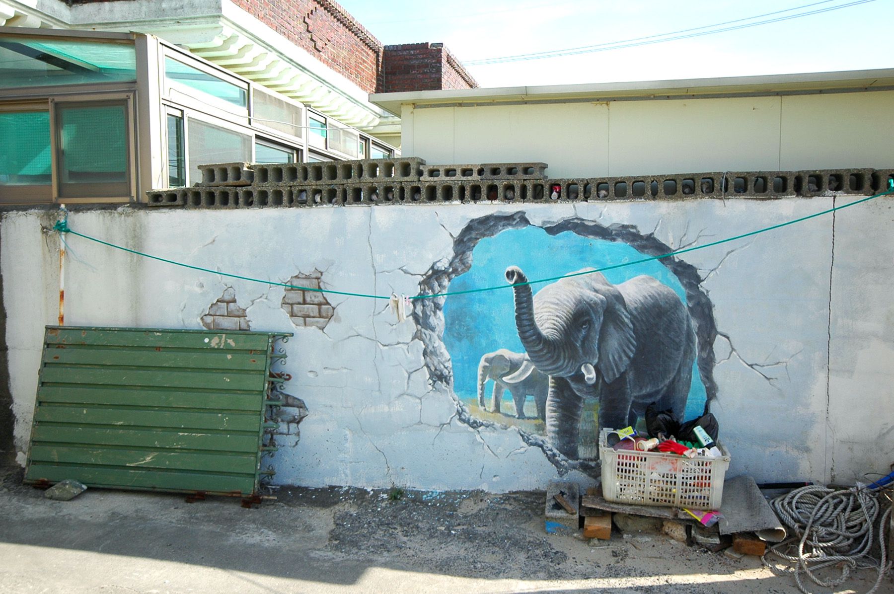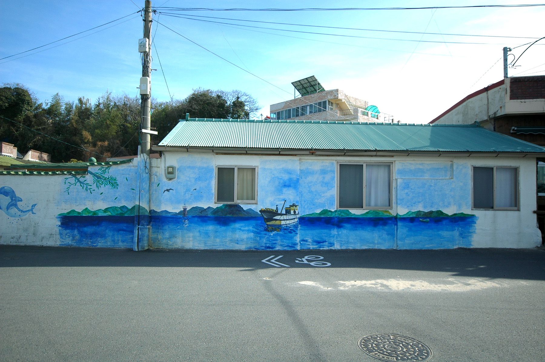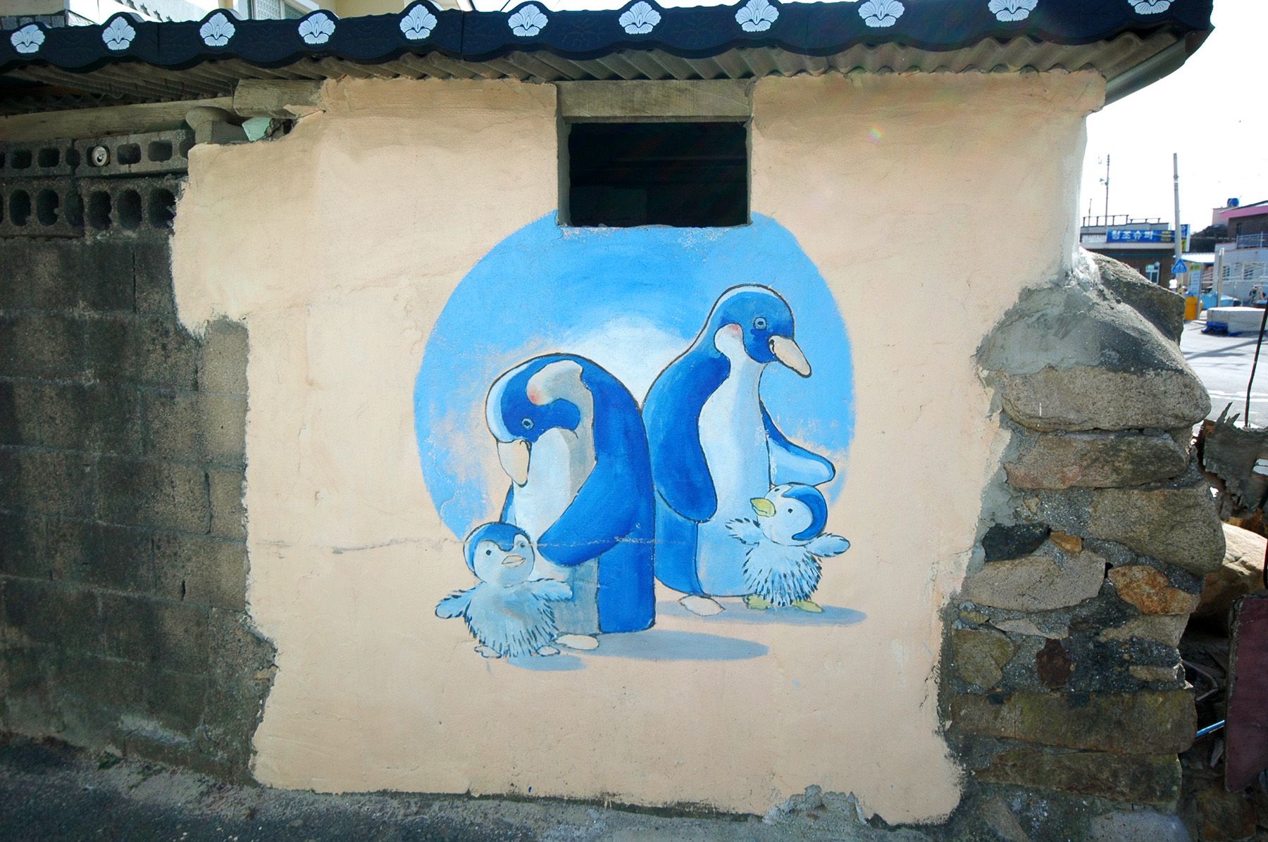 주변 풍경과 어우러진 벽화 작품들이 오래된 가옥들과 마을에 생기를 줍니다.