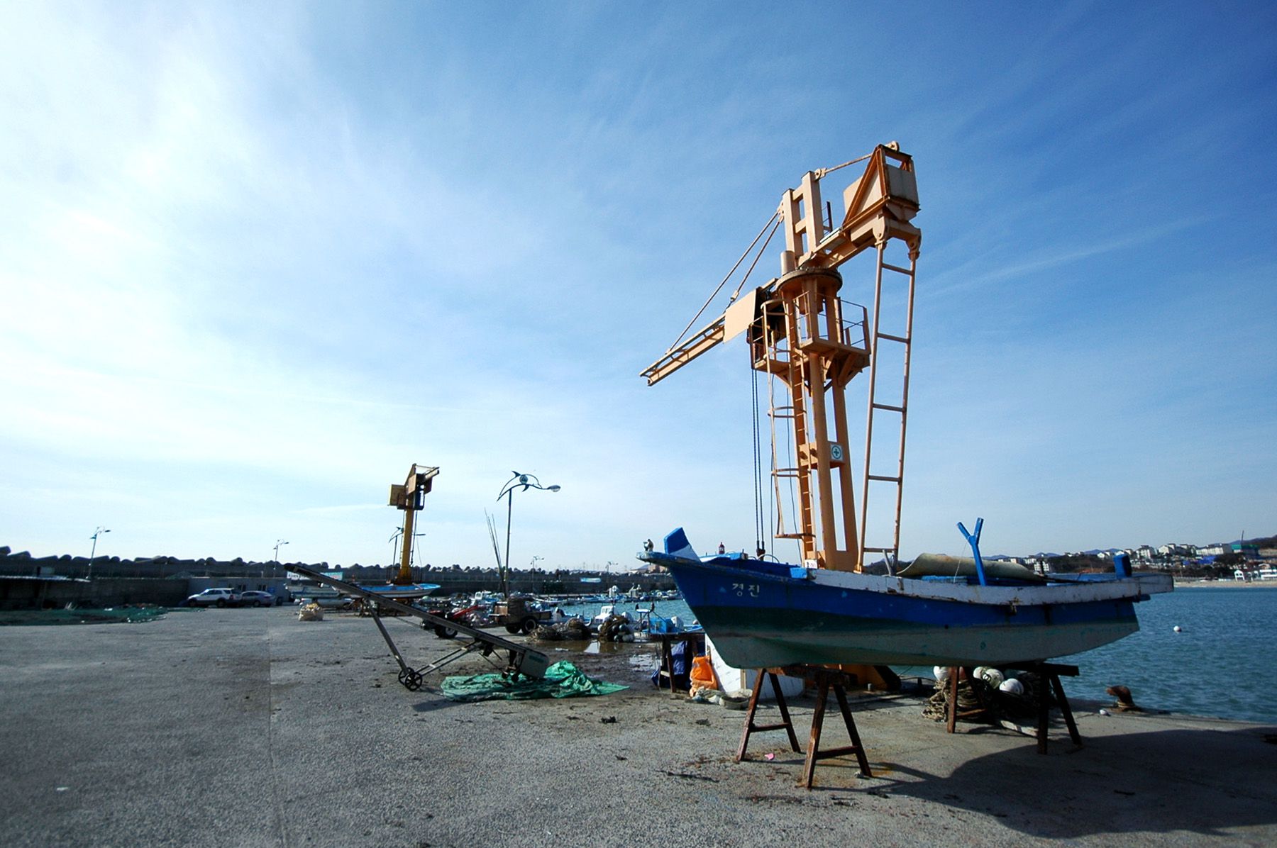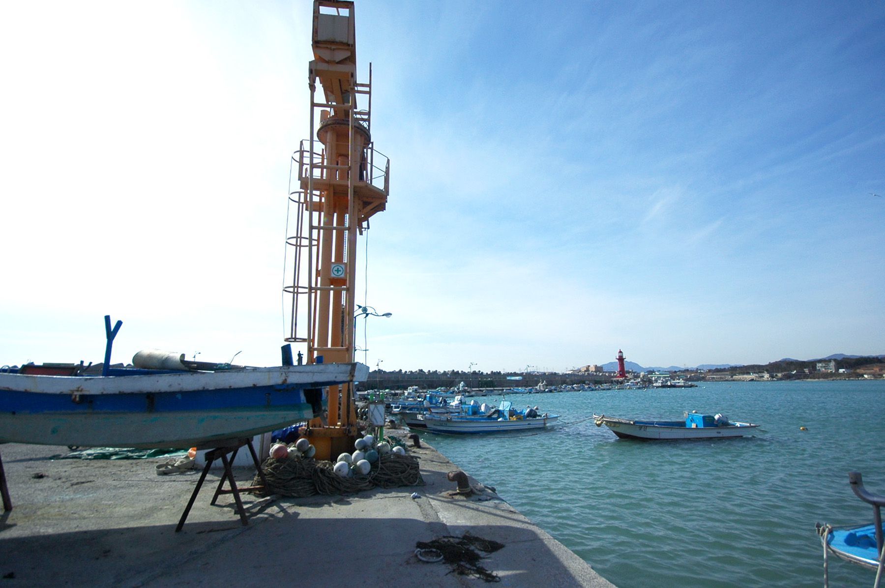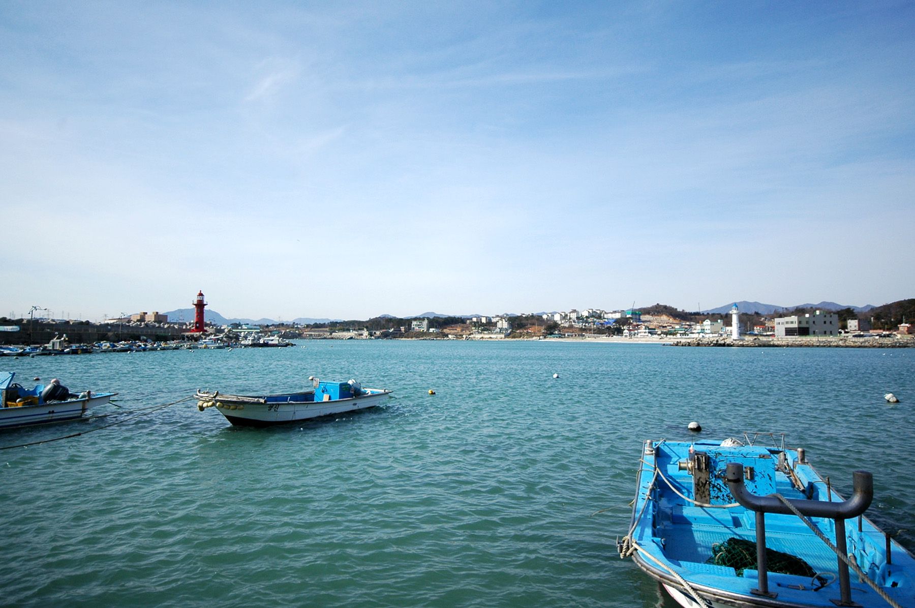 한 쪽 항구에는 고깃배들이 십여 척 눈에 띕니다.