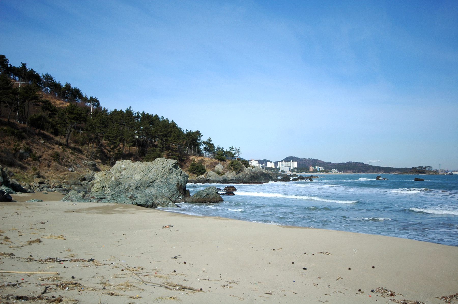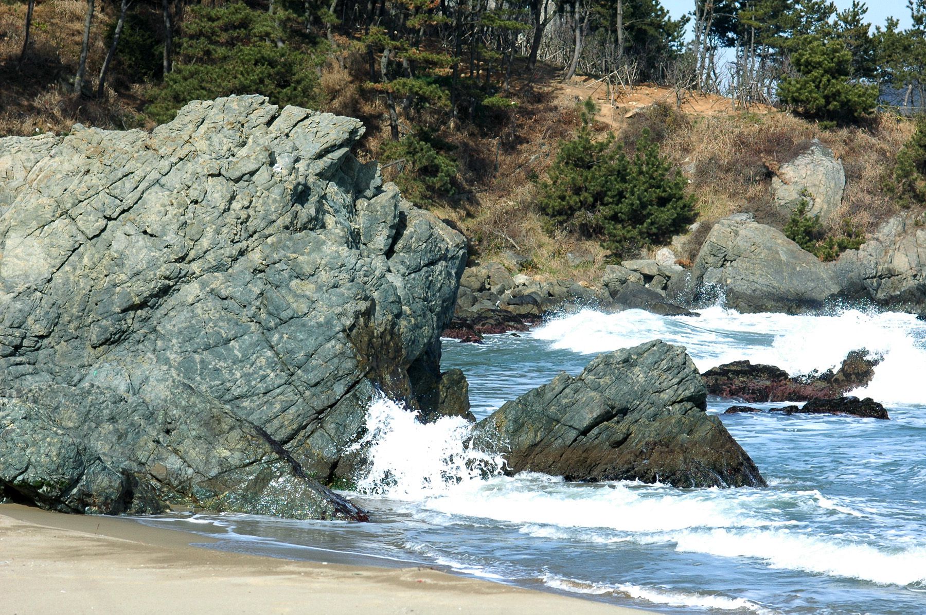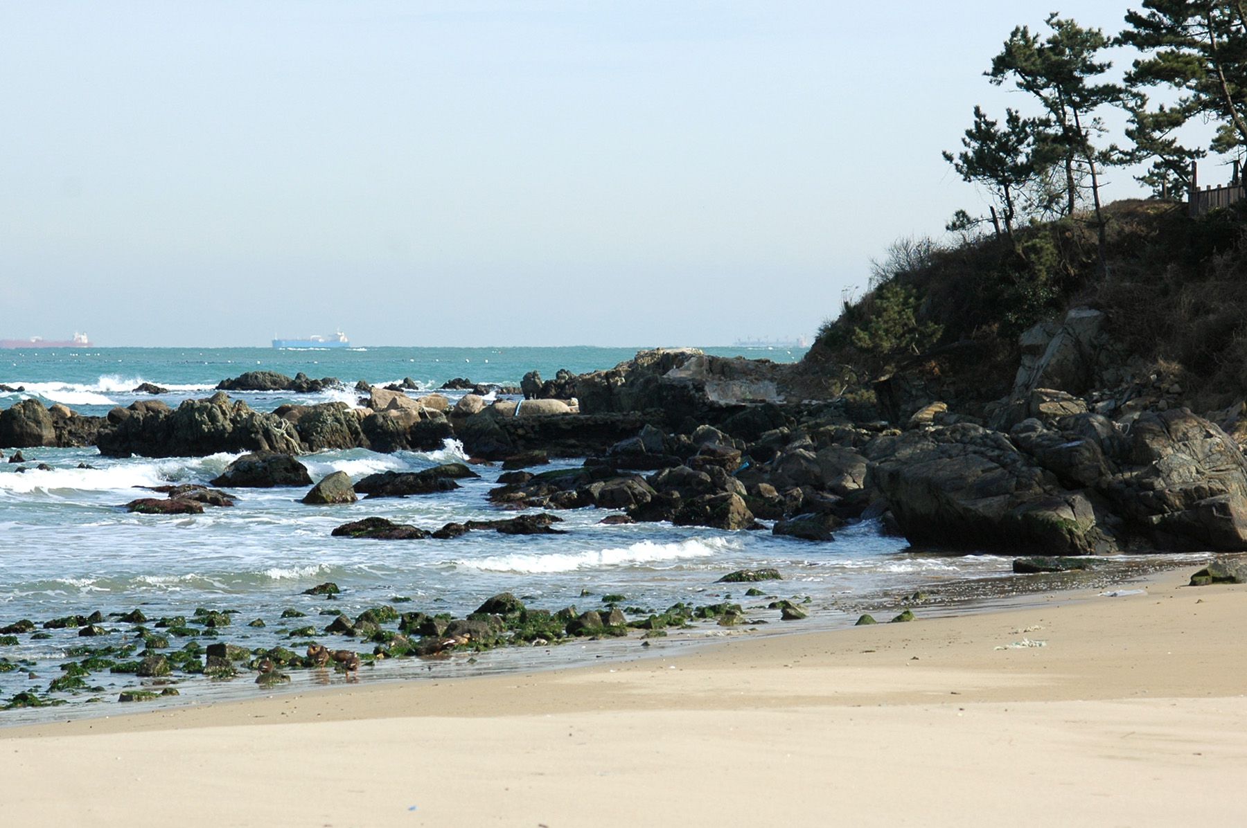 해수욕장 사이에 바위가 많아 멋스러운 자연 풍광을 연출합니다.