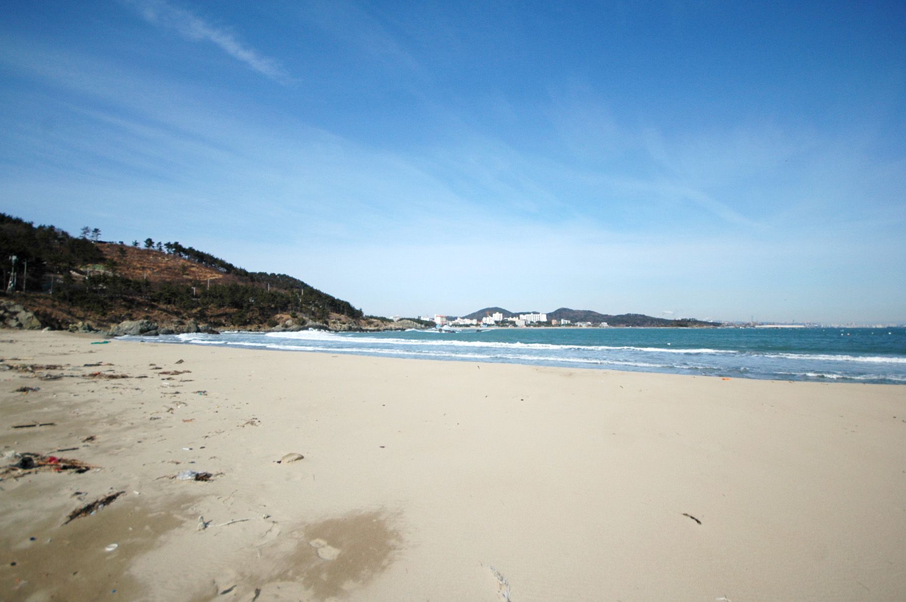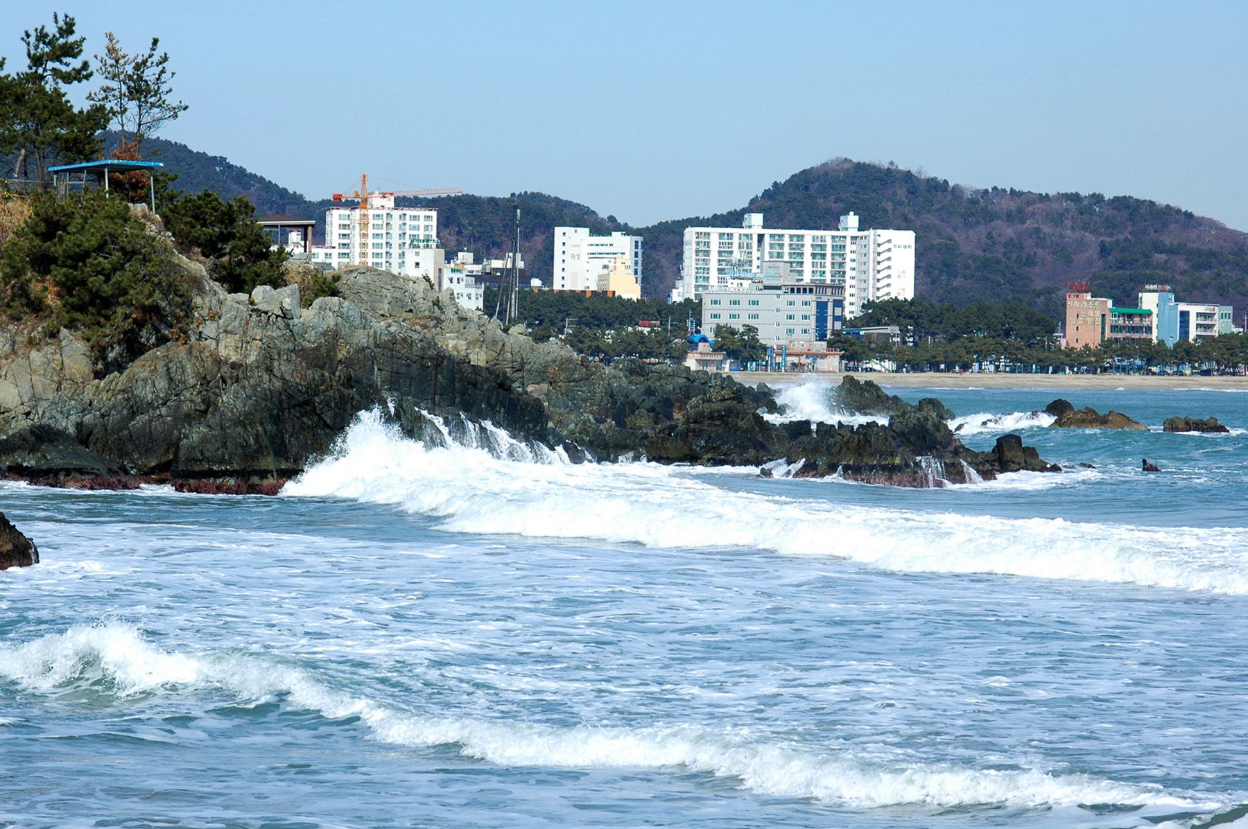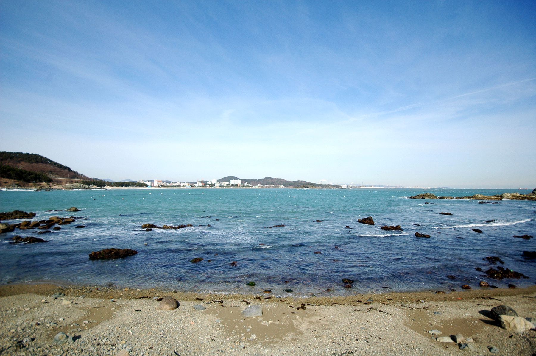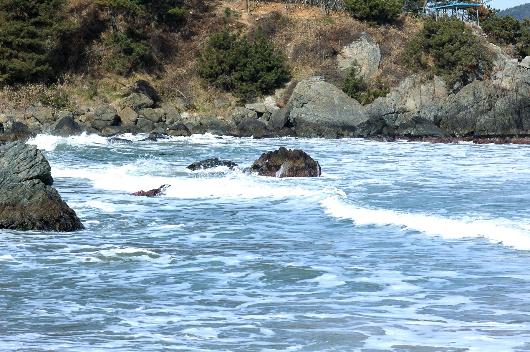 해수욕장 사이에 바위가 많아 멋스러운 자연 풍광을 연출합니다.