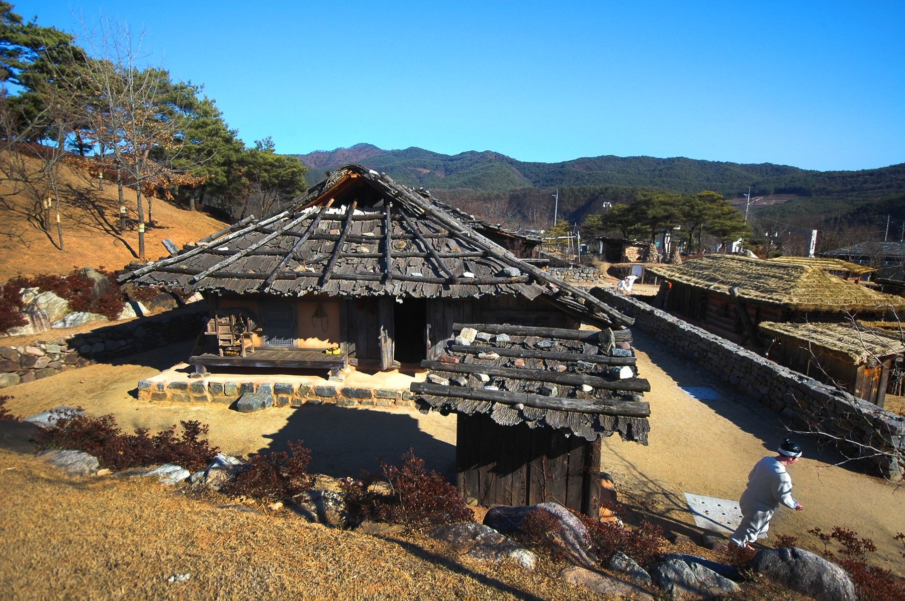 굴피집 외에 통나무를 쌓아 만든 투방집, 판자로 벽을 만들어 너와를 올린 너와집도 있는데요,