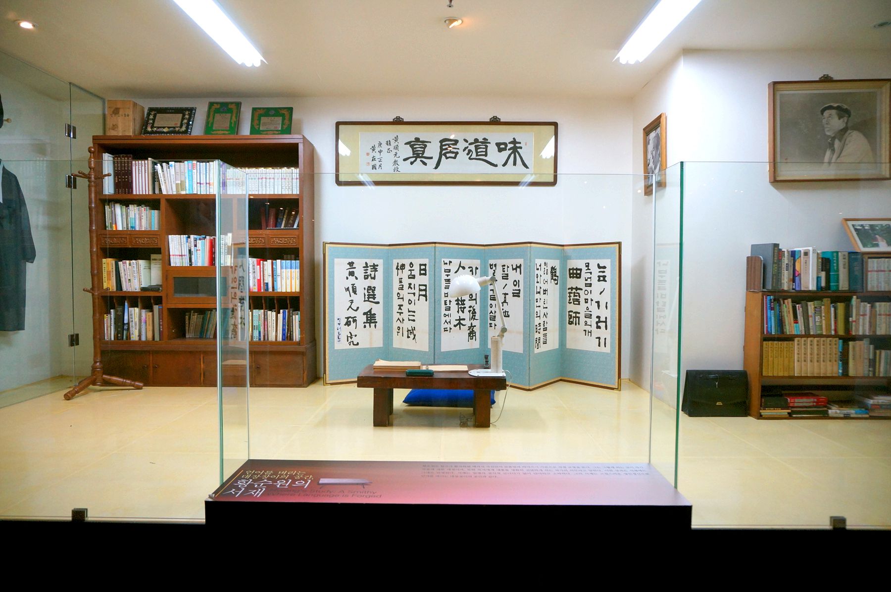 문학관 2층은 전시관 진입부의 상징홀 종합 인포메이션인 '황순원 홀', 집필공간과 소장품, 유품전시공간인