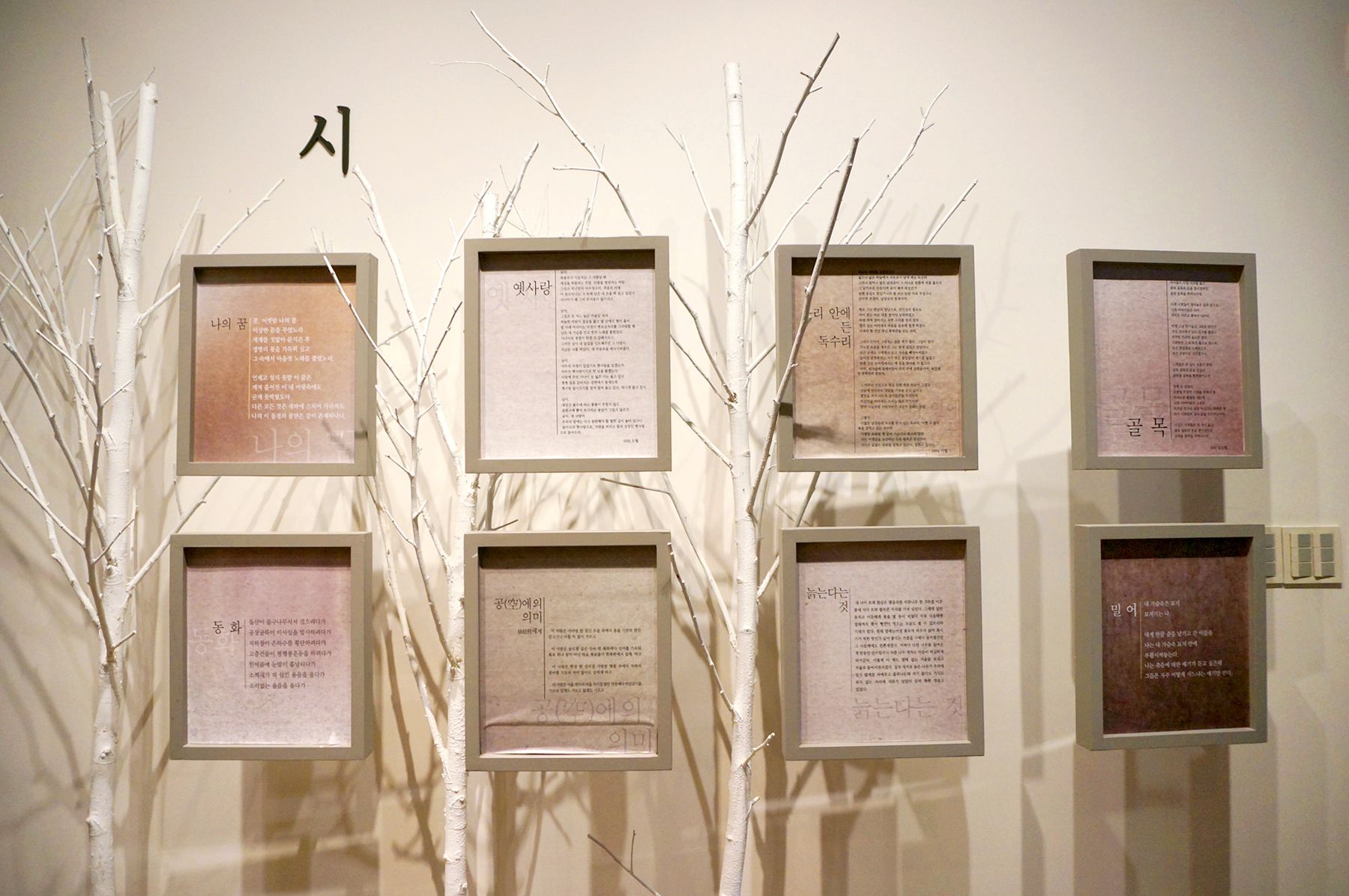 제1전시실, 제2전시실, 중앙홀, 문학카페, 작품 속으로, 야외카 페로 실속있게 짜여 있습니다.