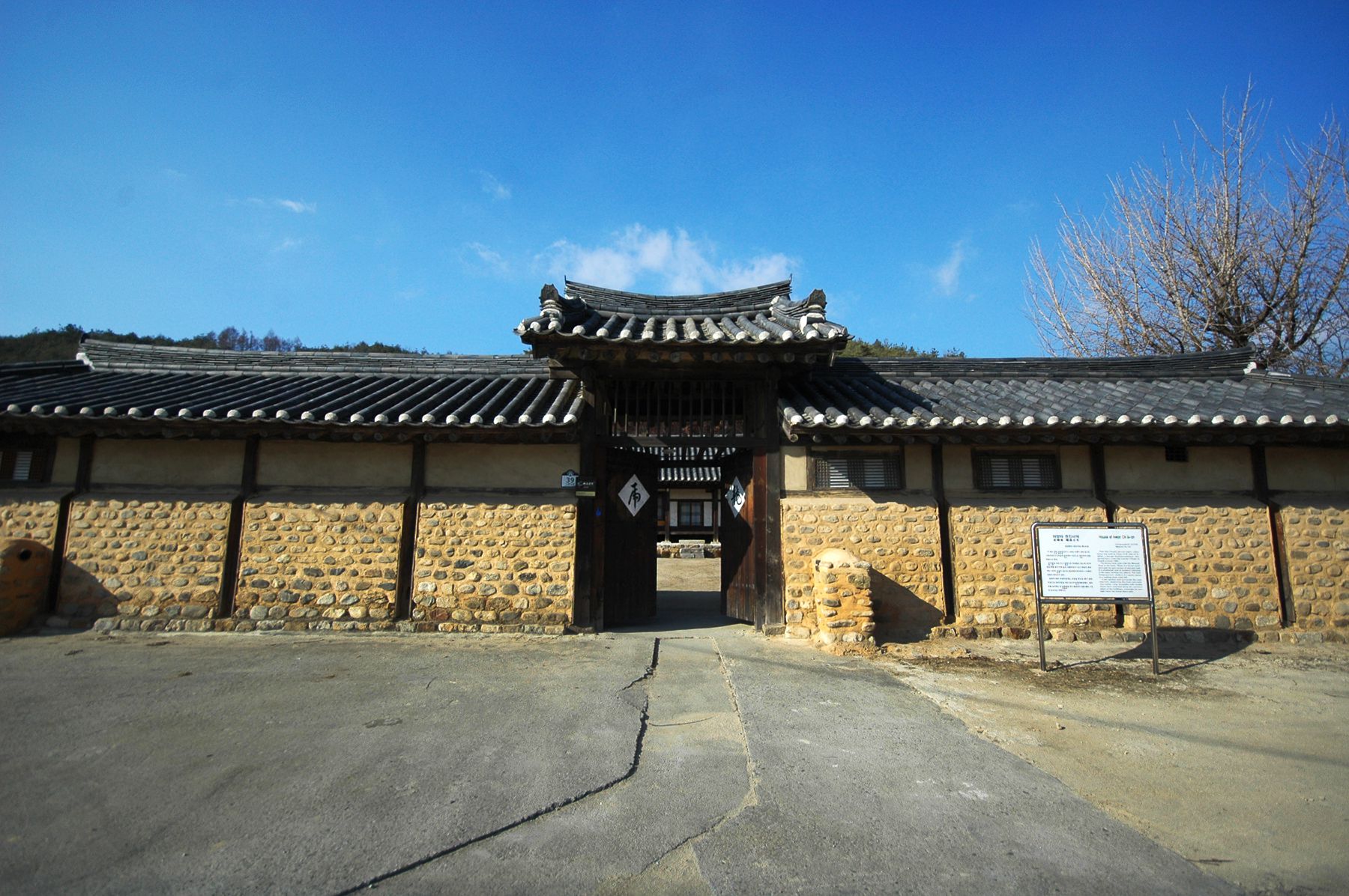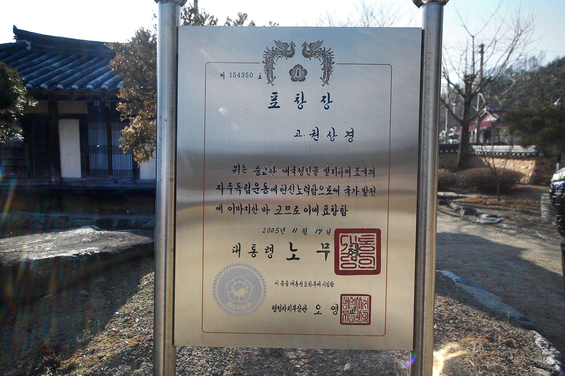 전 노무현 대통령께서 내리신 표창장과 함께 고풍스러운 모습으로 꾸며진 가옥의 입구는