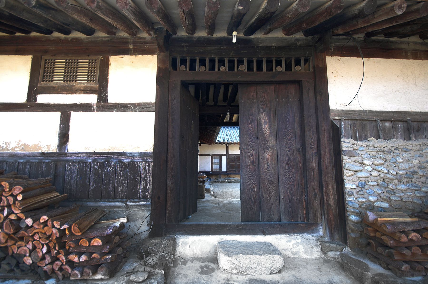 웅장한 규모의 사랑채가 자리하고 있는데 건축물의 주 재료인 고목들이 오랜 시간이 흘렀음을 짐작하게 해주면서