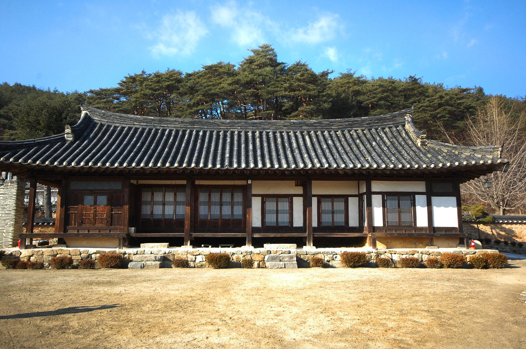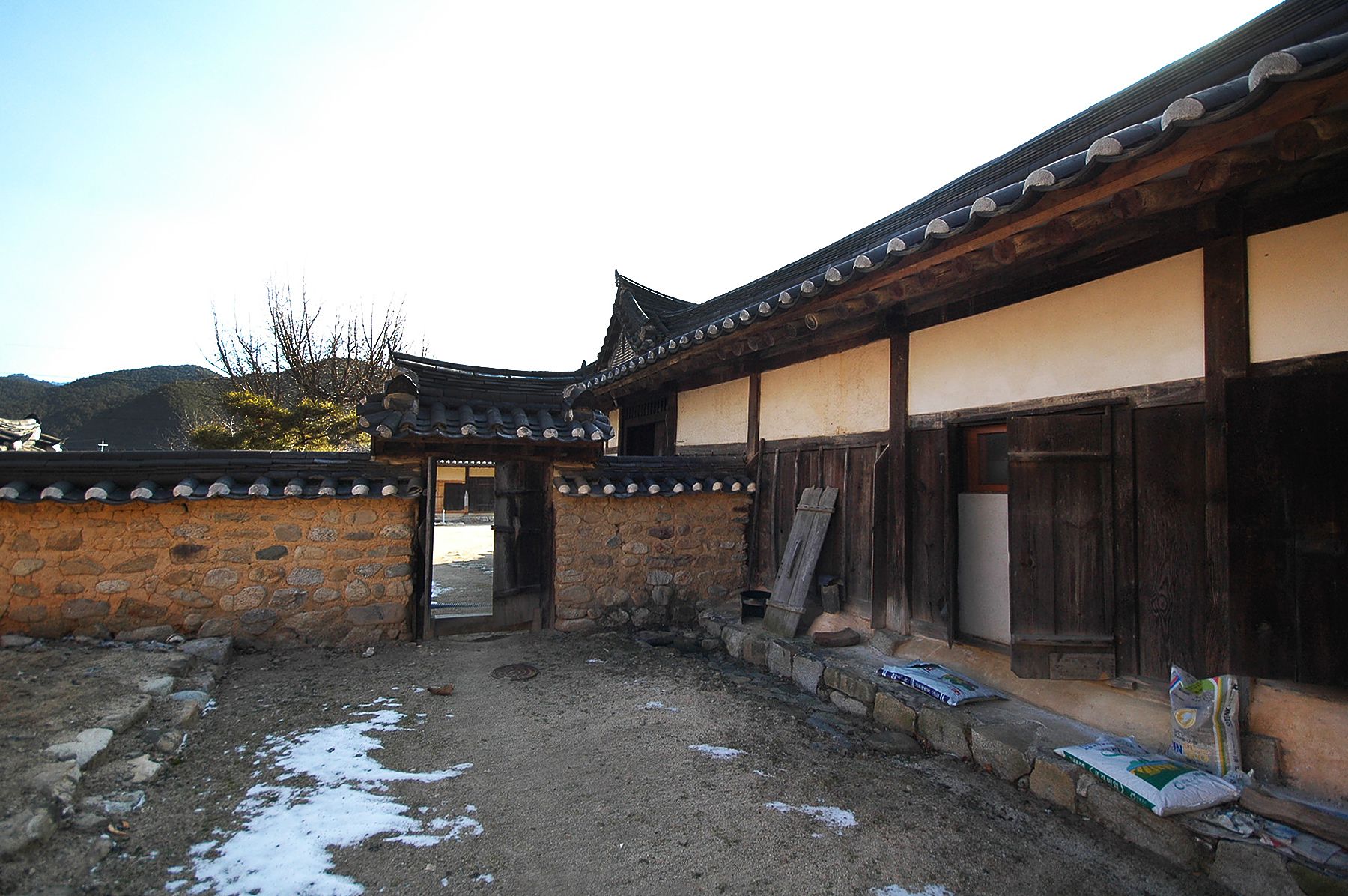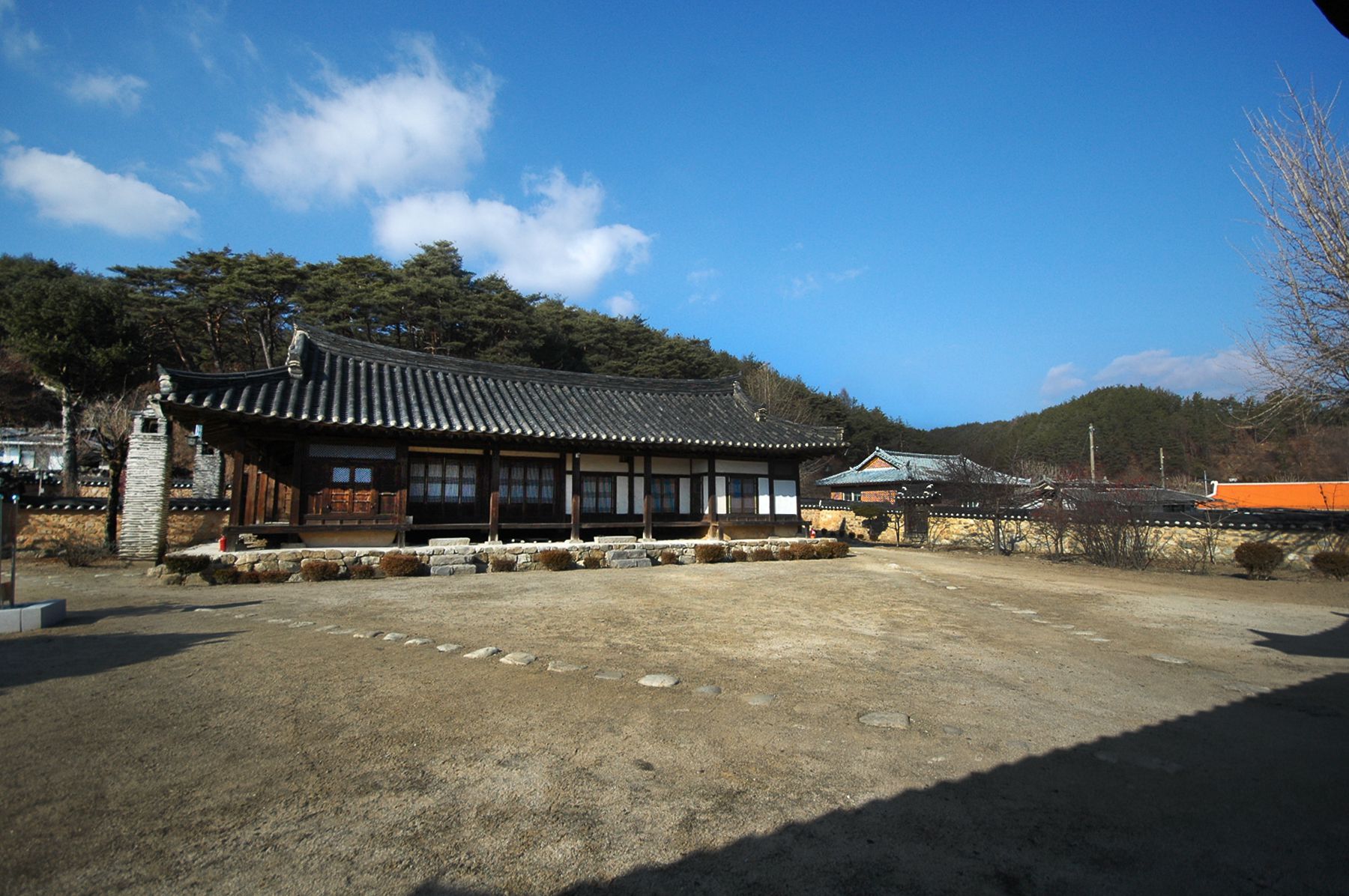 사랑채의 한편에는 3칸의 서당이 배치되어 있고 그 옆쪽으로는 안채로 통하는 문과 흙담이 조성되어 있어