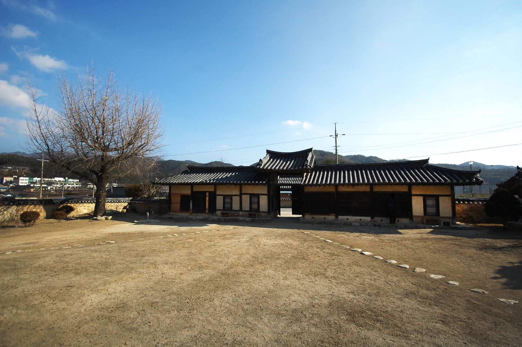 만석봉을 뒤로 한 동향집으로 출입구인 솟을대문을 들어서면 아담한 동산을 뒷배경으로 한