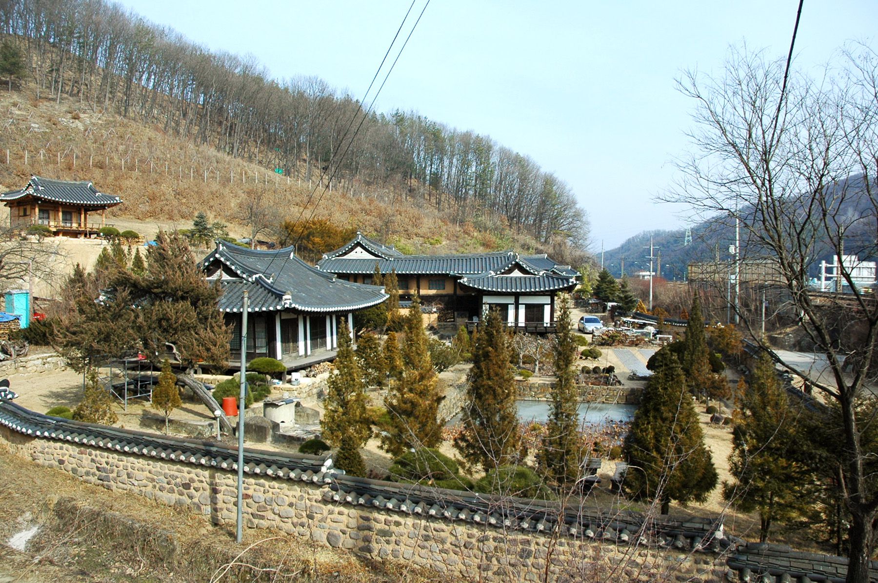 안채는 정면 8칸, 측면 6칸으로 높은 자연석 축대 위에 세워졌으며, 이 고택은 숲이 우거진 야산과