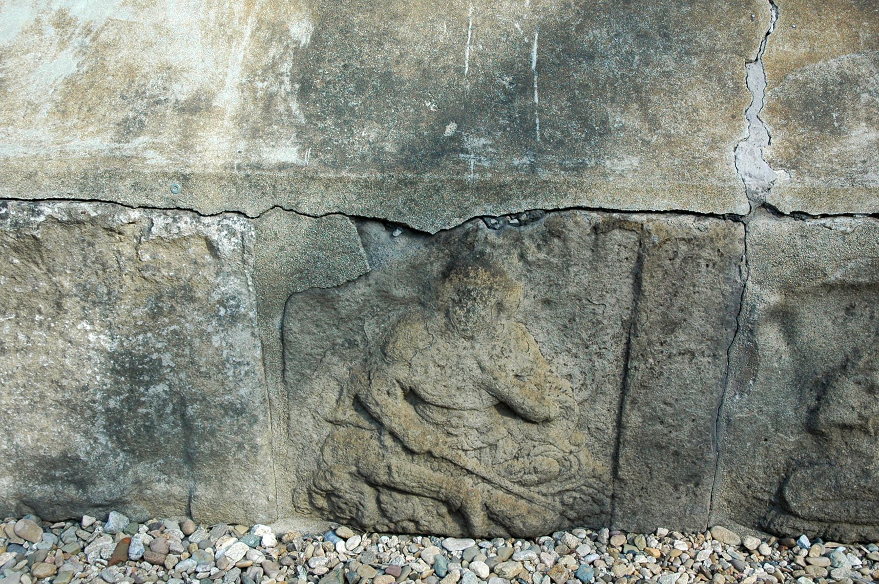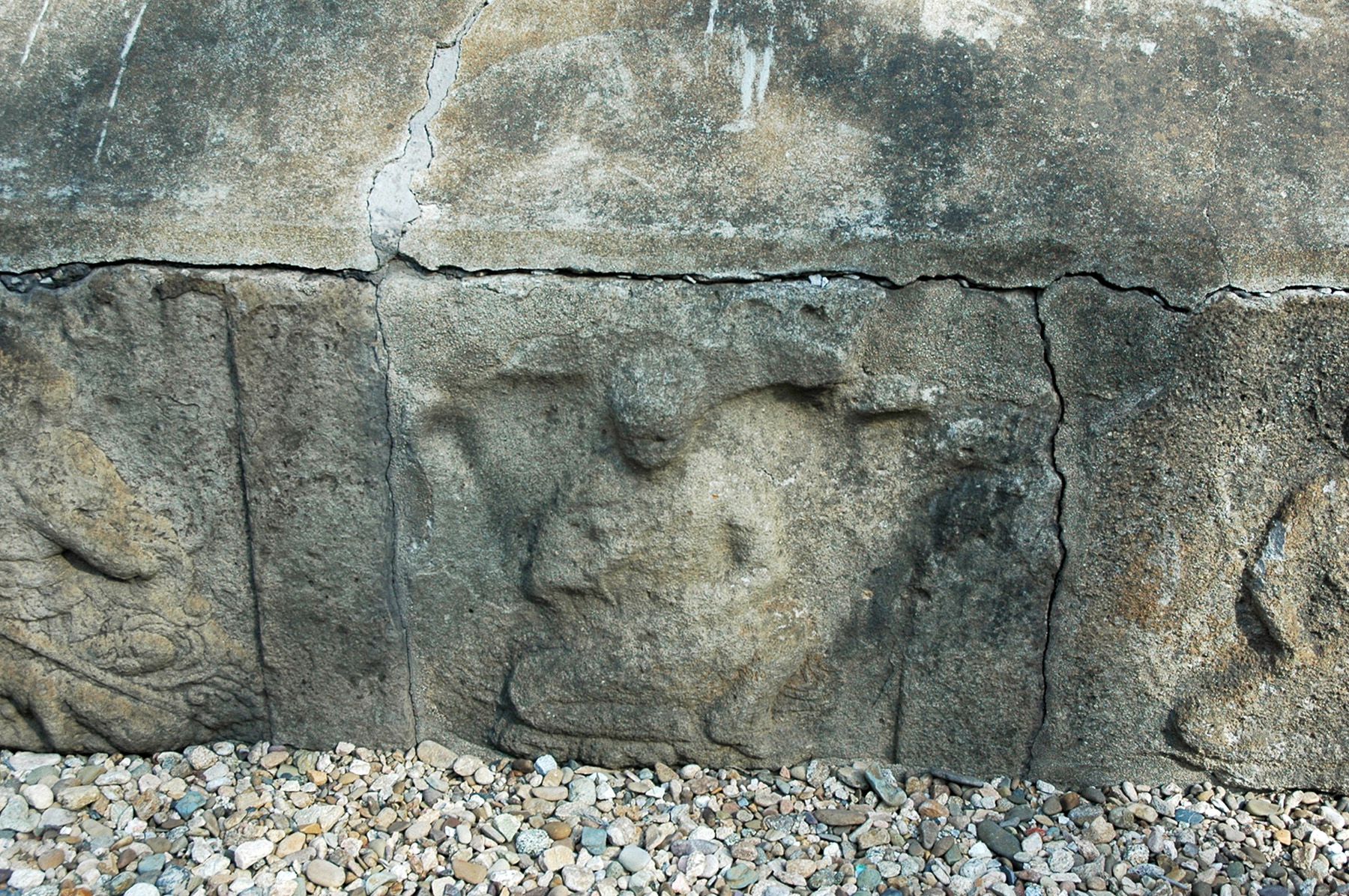 기단부에는 네모꼴로 팔부 중상과 사천왕상을 돋을새김 한 판석이 축조되어 있으나