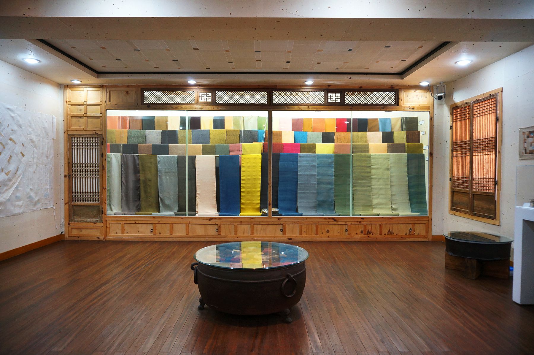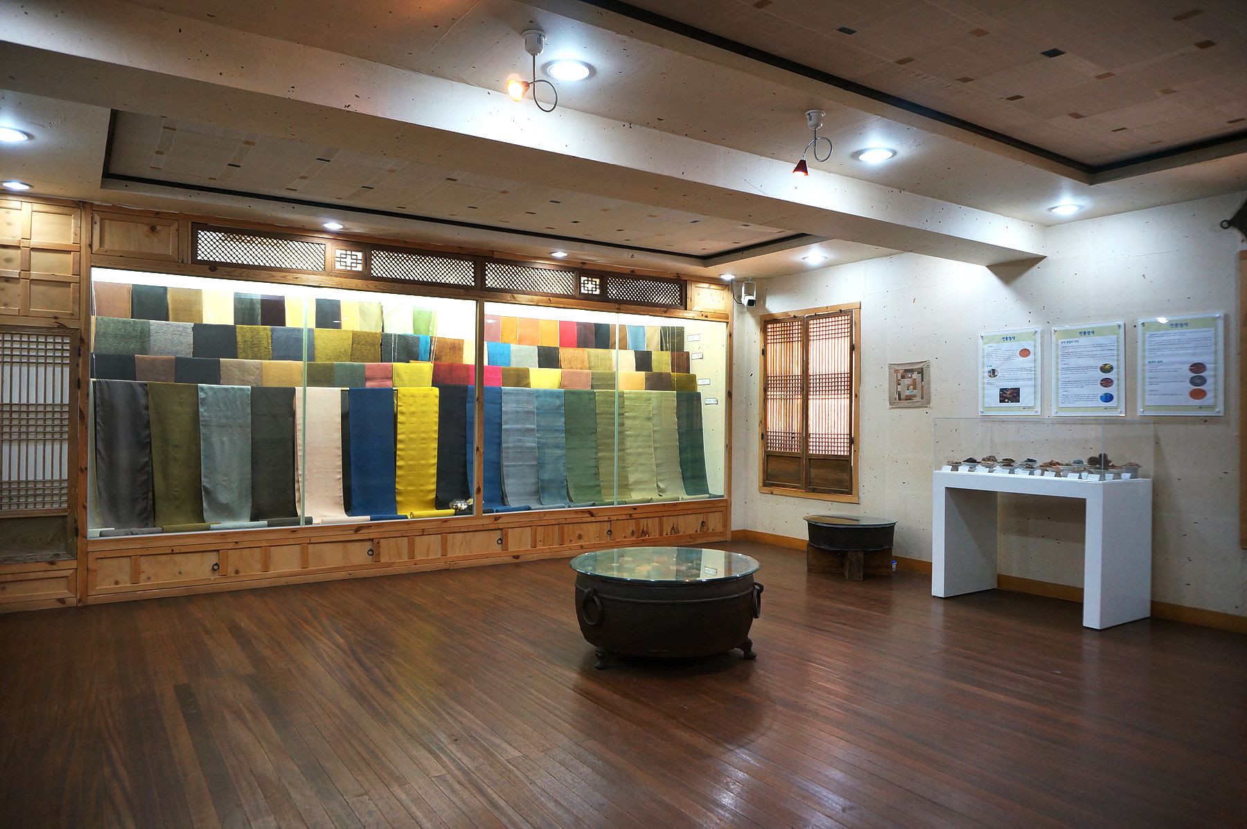 천연염색 전시실에서는 곱게 물들인 아름다운 천을 만나볼 수 있습니다.