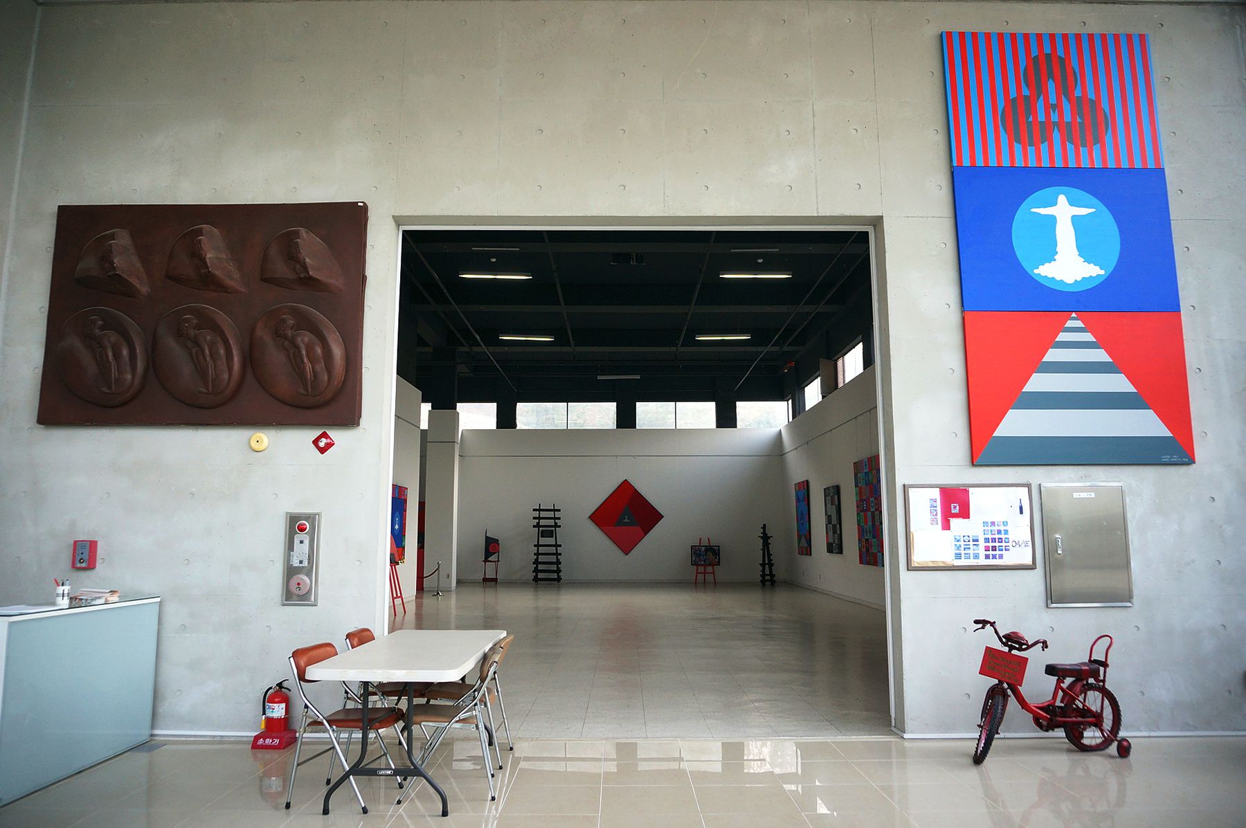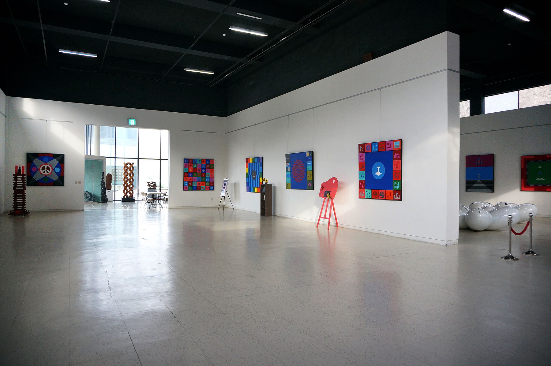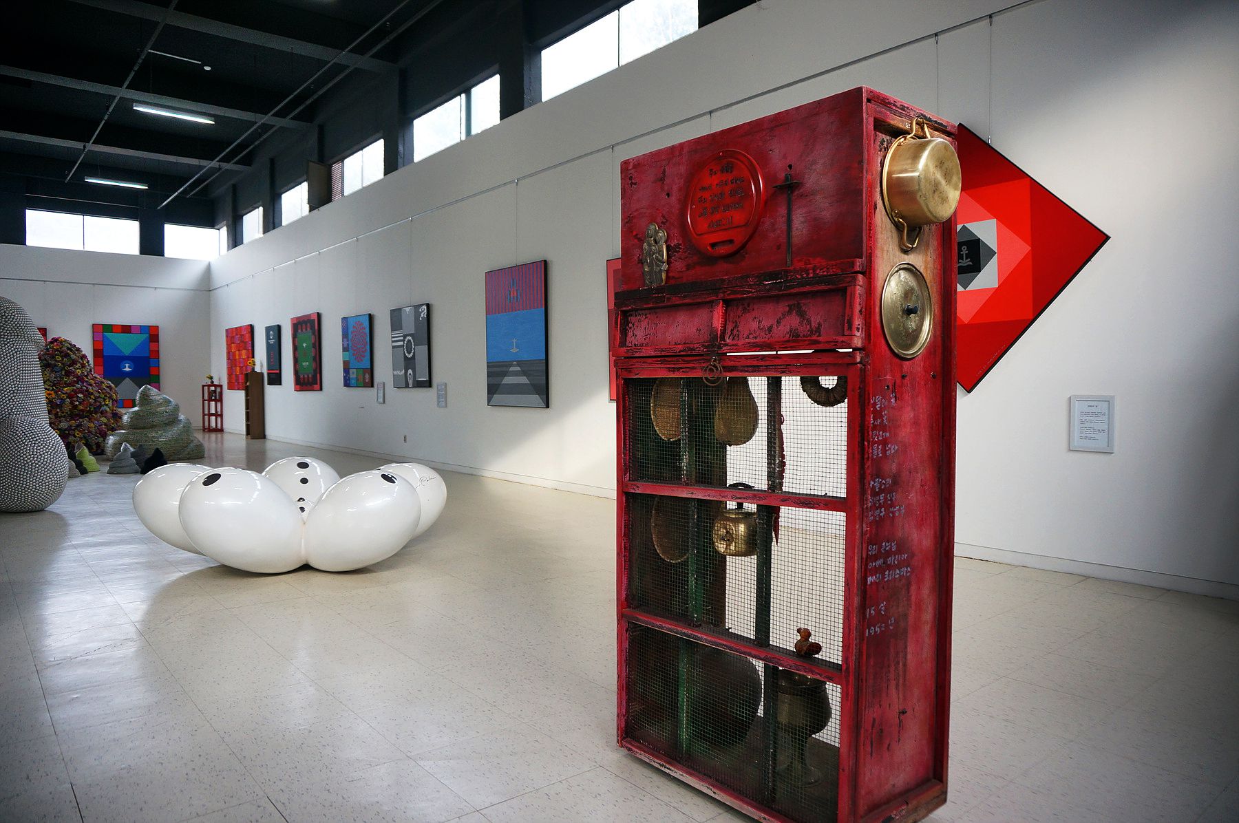 C 아트 뮤지엄 전시실로 가는 곳 모두 조각과 설치미술작품들이 놓여 있어