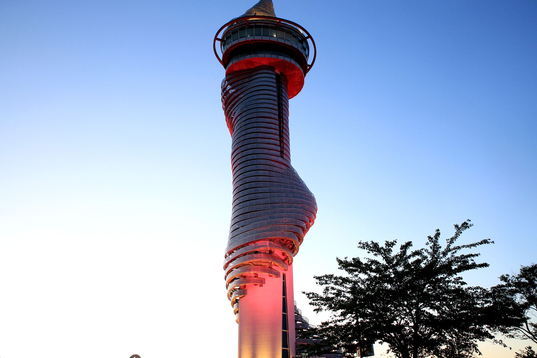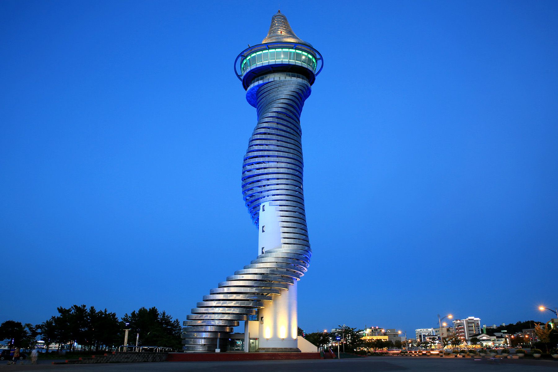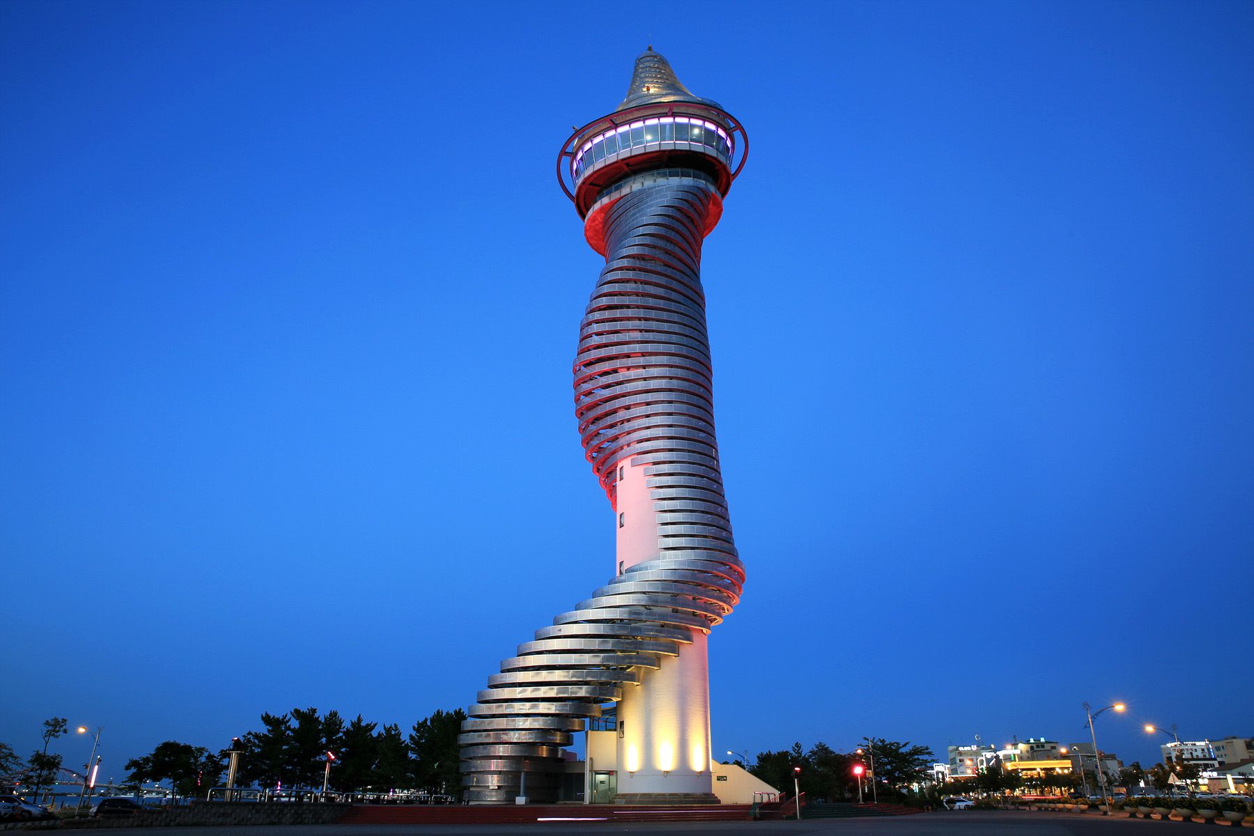 속초 엑스포타워는 수직으로 상승하는 역동적인 형태로 강원도의 미래를 상징하고 있는데요,
