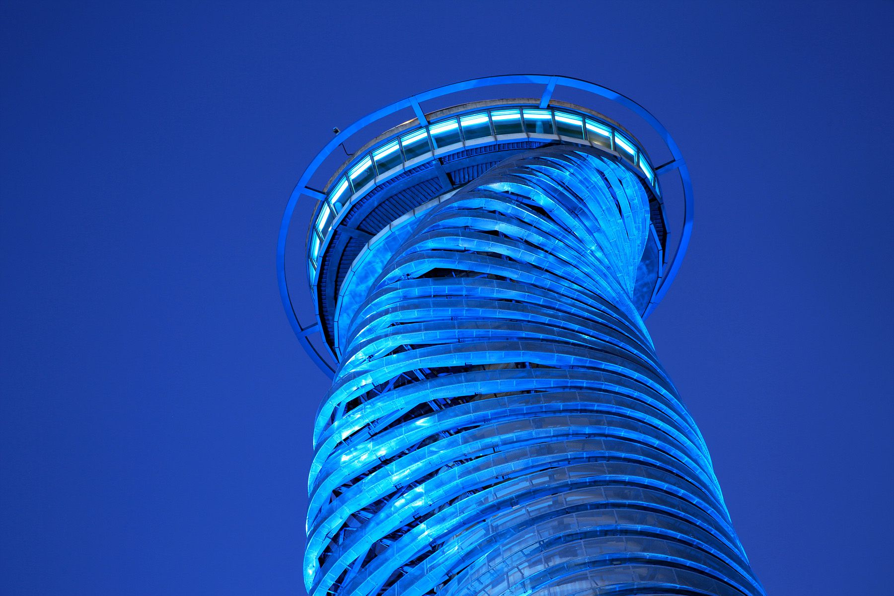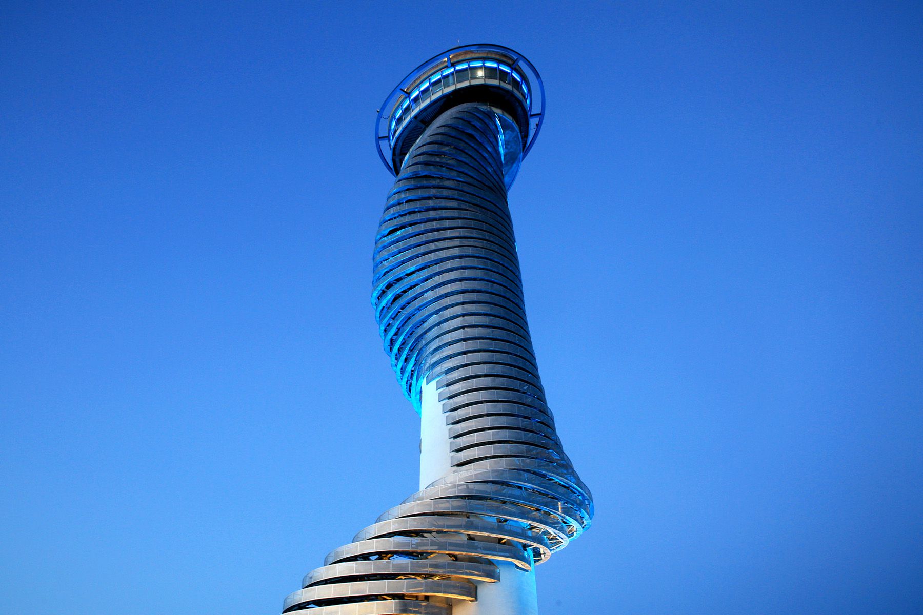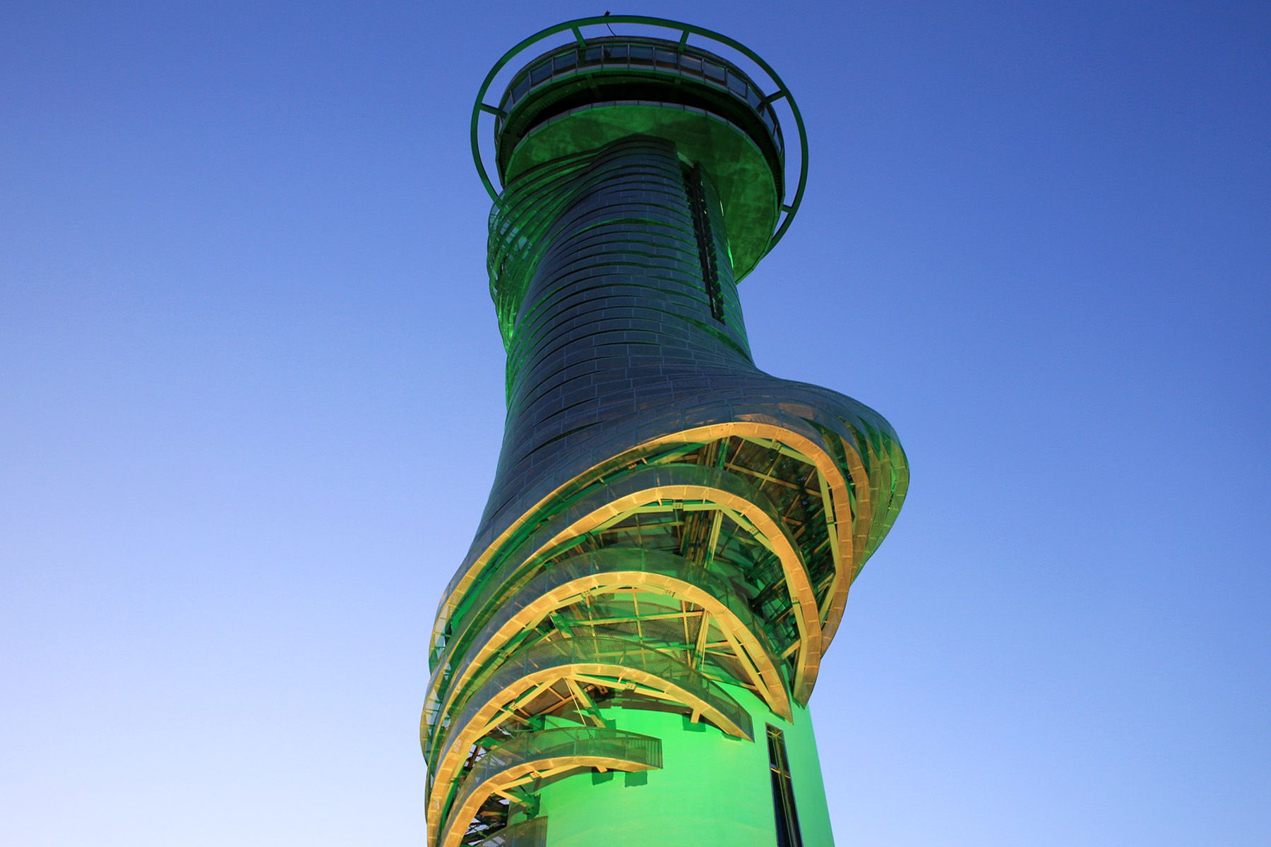속초 엑스포타워는 수직으로 상승하는 역동적인 형태로 강원도의 미래를 상징하고 있는데요,