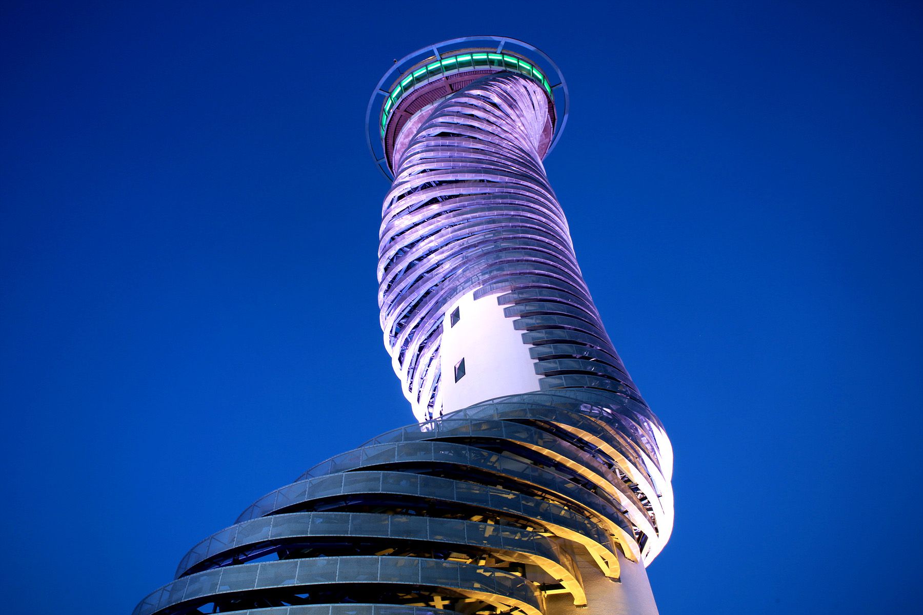 독특한 외관으로 아름다운 빛을 내뿜는 속초 엑스포타워!