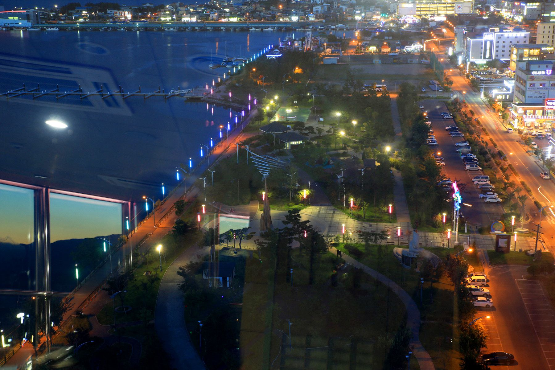 속초 엑스포타워에 어둠이 찾아오면, 형형색색의 조명이 장관을 이루는데요,