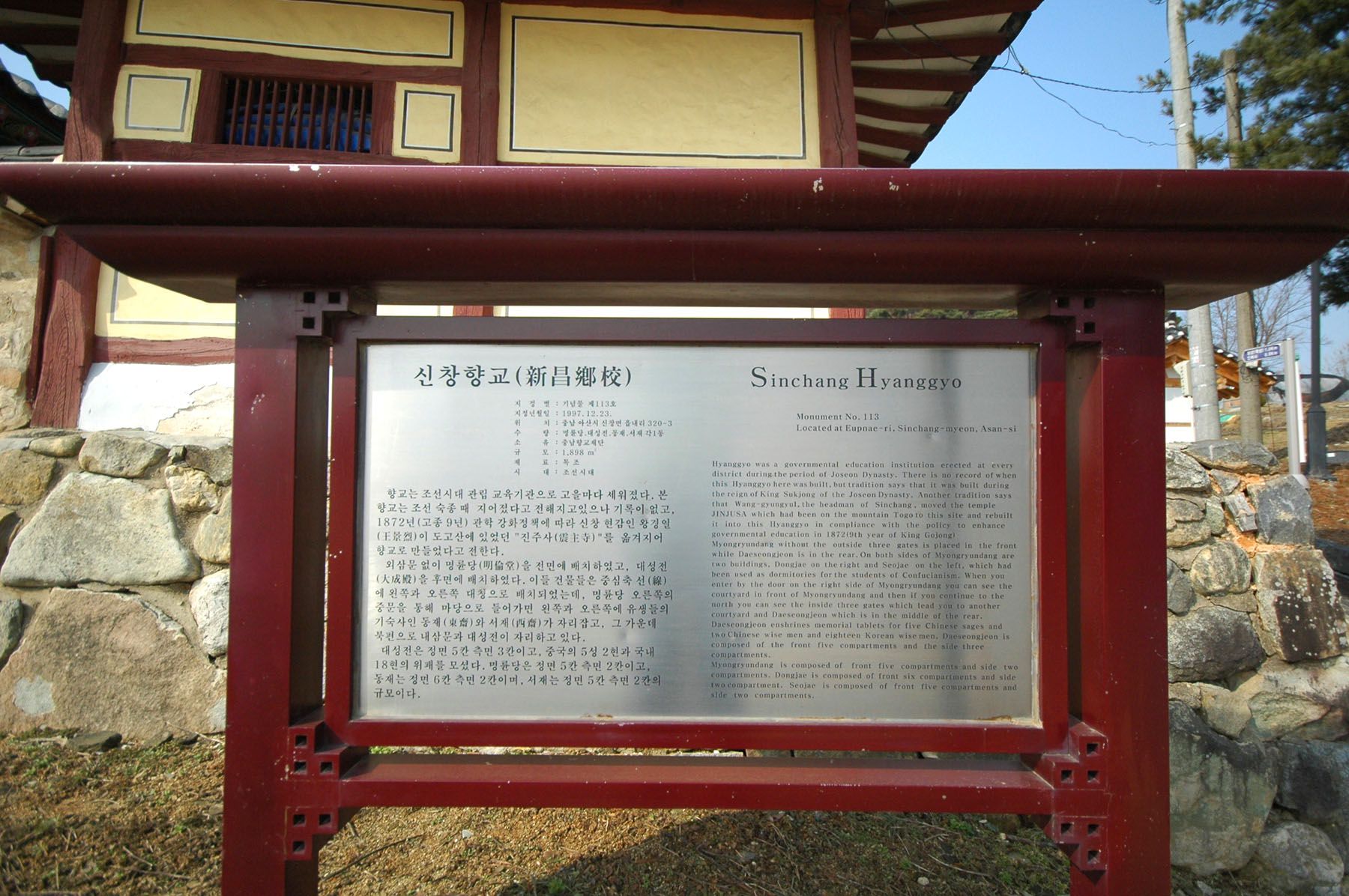 아산 신창향교는 1997년 12월에 충청남도 기념물 제113호로 지정되었습니다.
