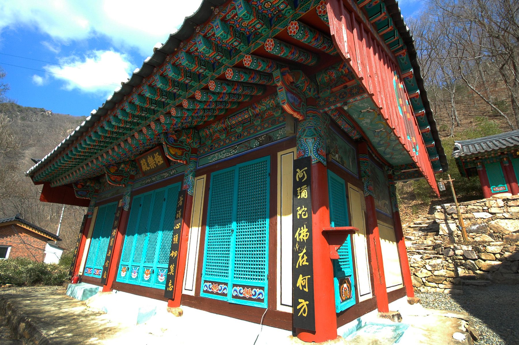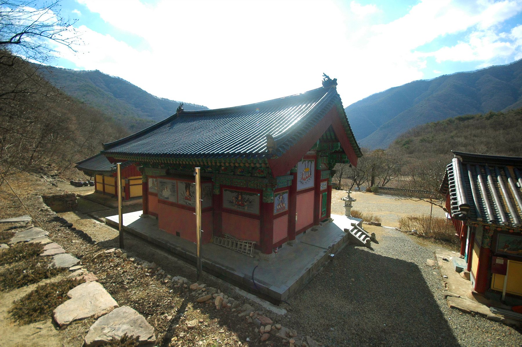 대웅전을 중심으로 왼쪽으로는 극락전과 산신각, 오른쪽에는 지장전이 위치해 있습니다.