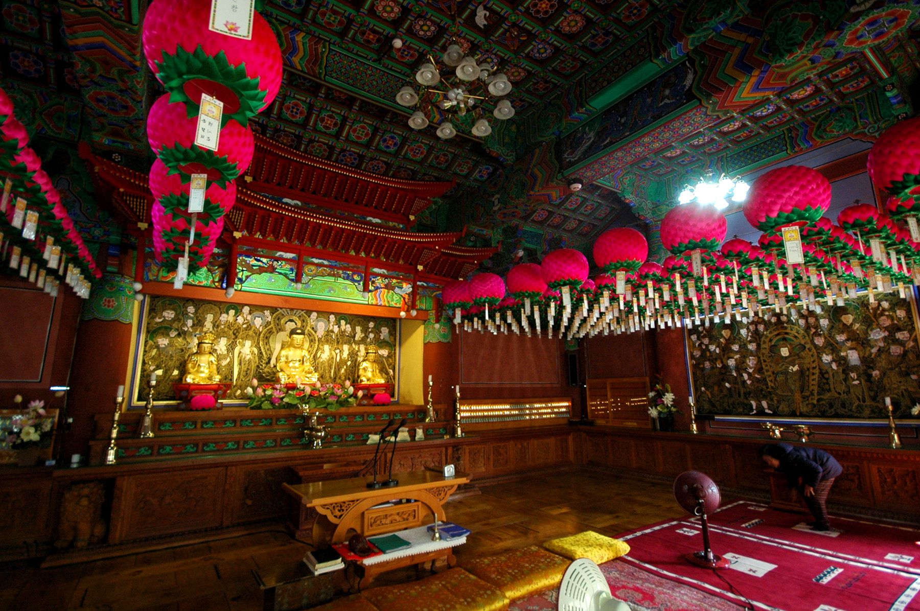 대웅전에는 석가모니불을 본존으로 문수보살과 보현보살을 모시고 있으며