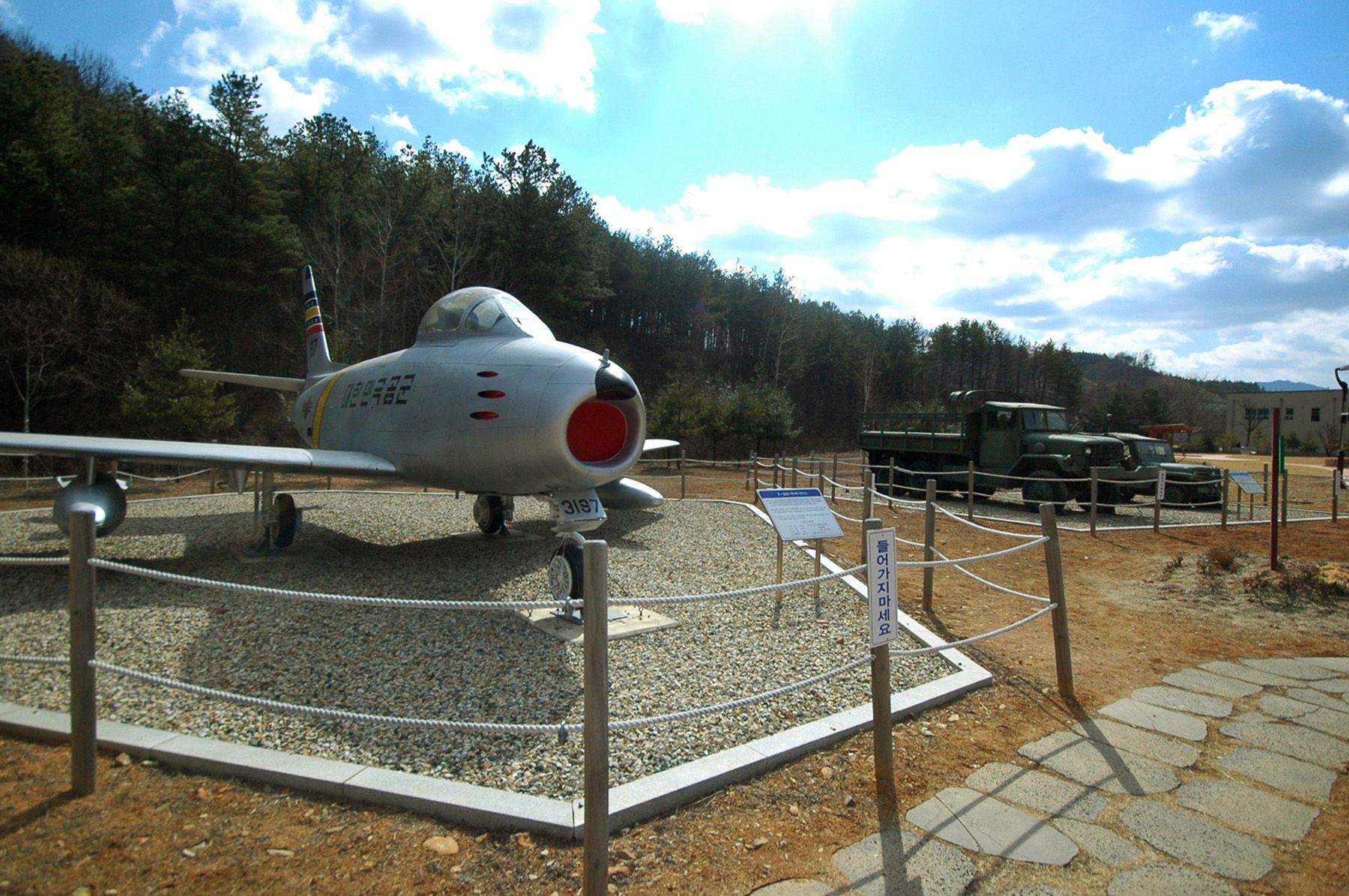 야외전시장에는 노근리 사건 당시 공중 폭격을 했던 비행기와 동일한 기종인 F-86F 전투기와 함께