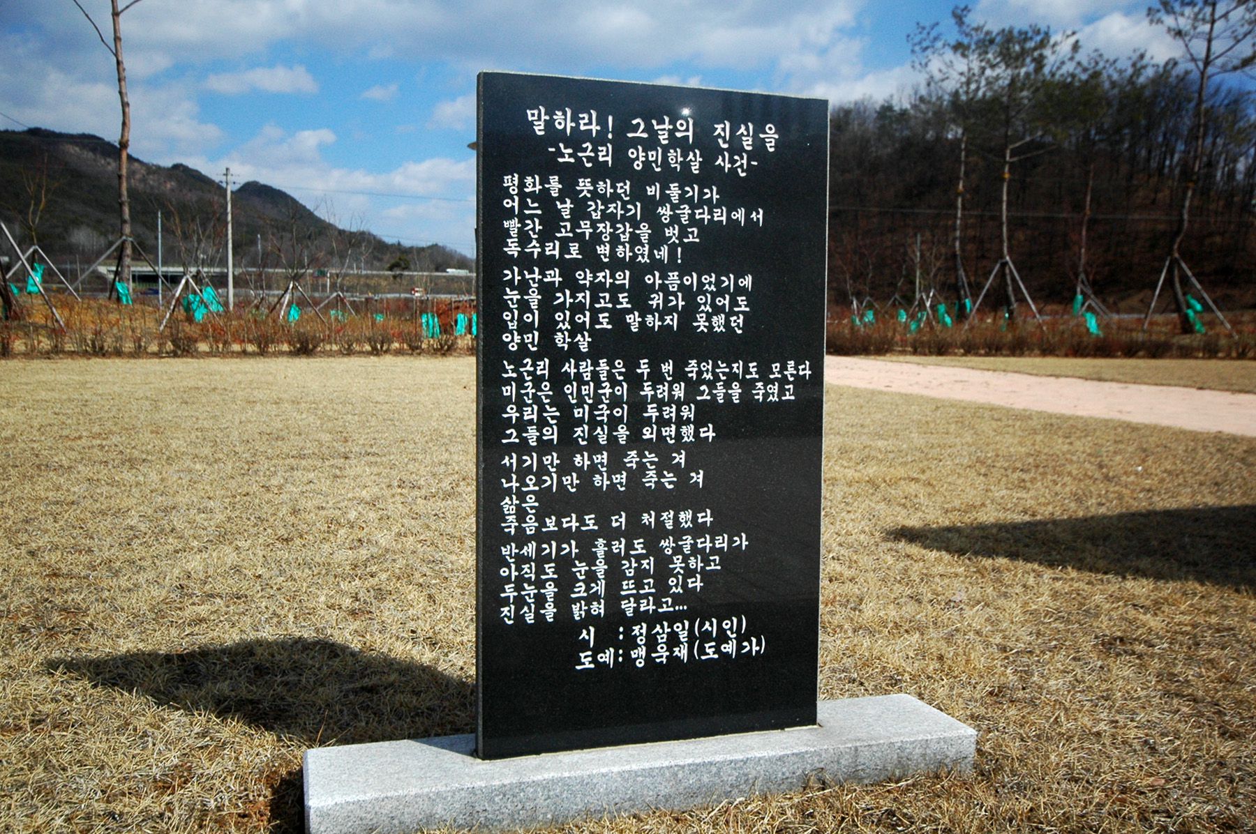 노근리 평화공원이 설립되었으며 위령탑이 건립되어 공원의 중심에 위치하고 있습니다.