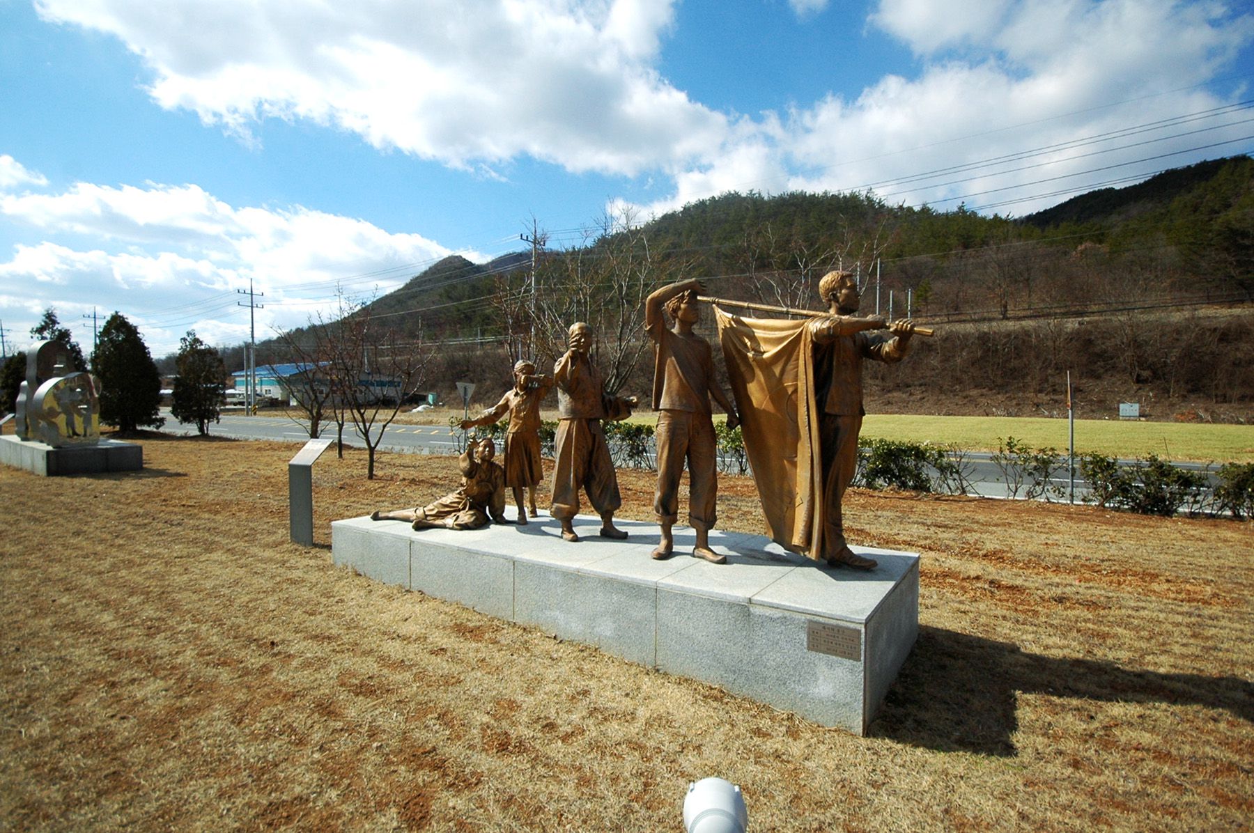 평화기념관을 마주하고 위치한 조각공원에서는 노근리 사건에 대한