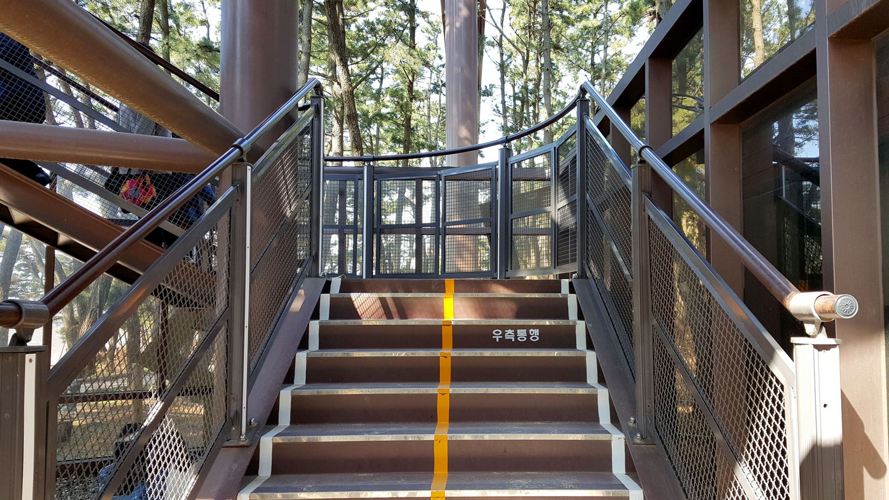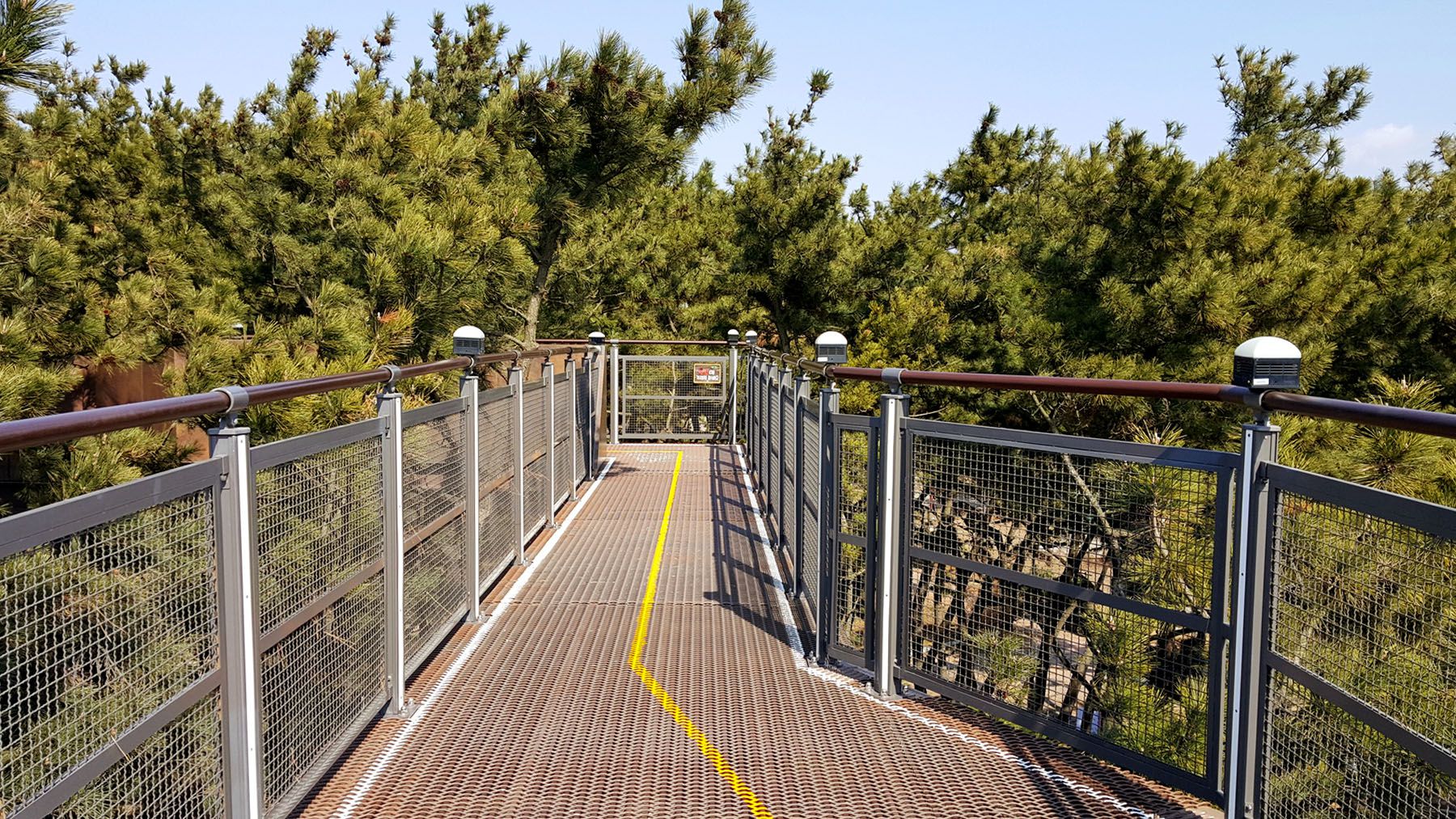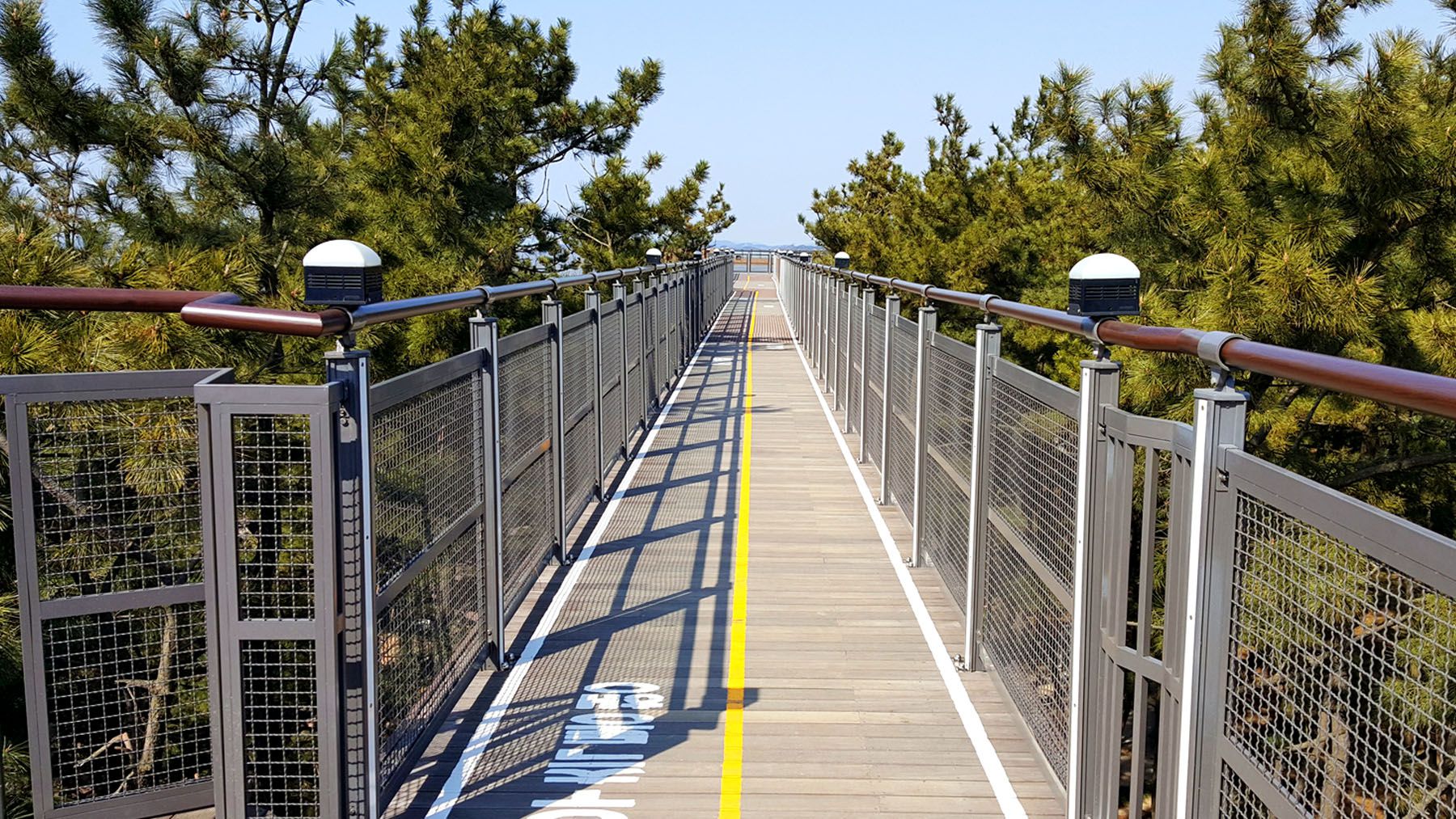 발아래로 송림욕장이 훤히 내려다 보이는 철제 보드워크로 설치되어