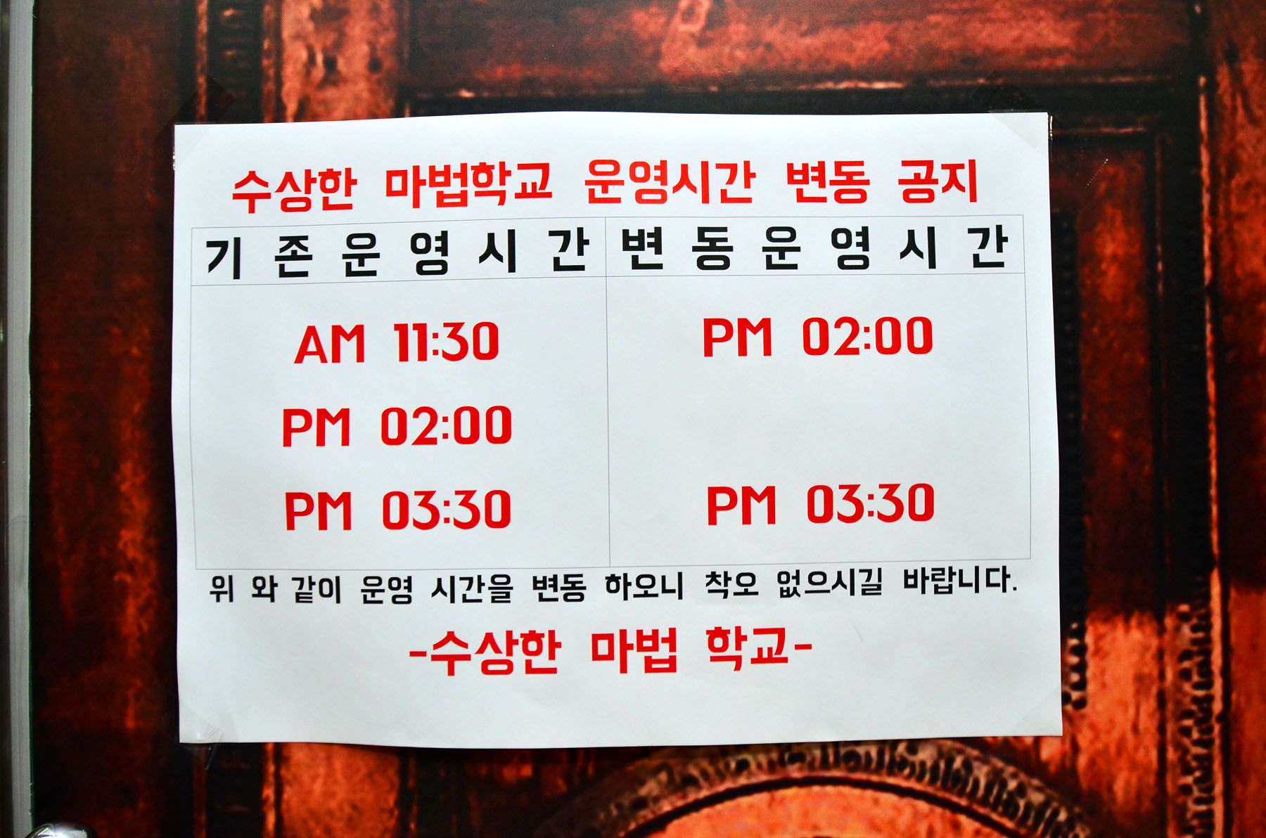 마법학교 입구에 운영시간 및 체험 시간이 안내되어 있으니 참고해 주세요.
