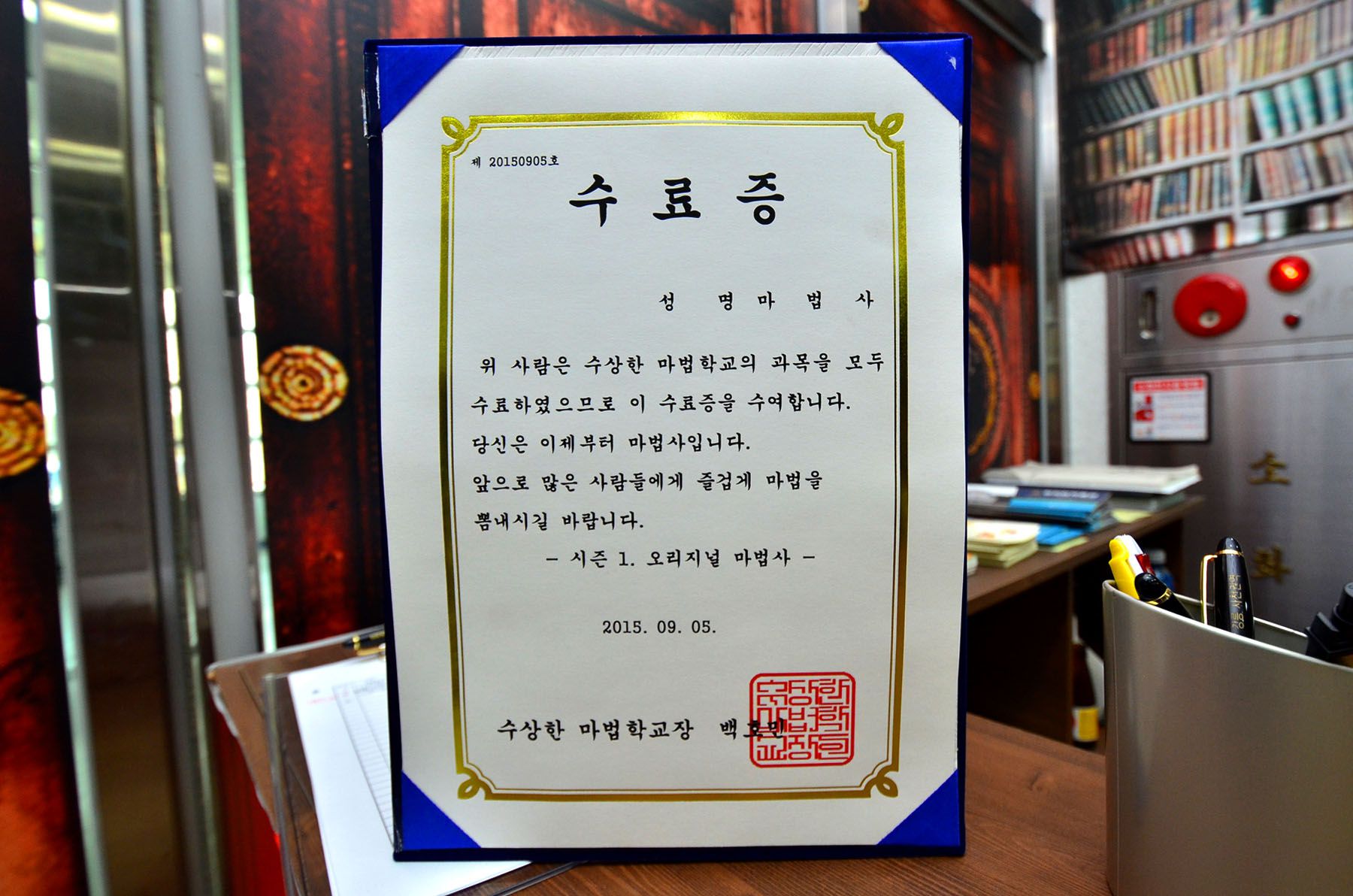 수상한 마법학교에서 즐거운 마술체험이 끝나면 수료증을 받을 수 있습니다.