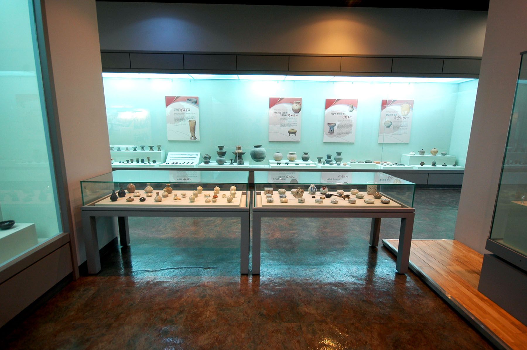 거창박물관 1전시관에는 선사시대 석기와 원삼국에서 고려 초기까지의 토기류 300여 점과